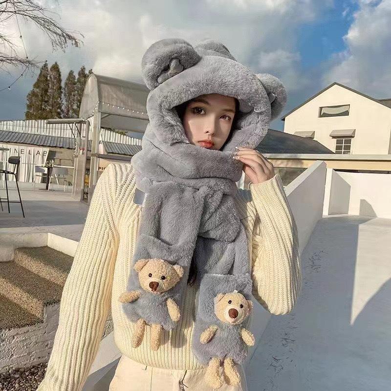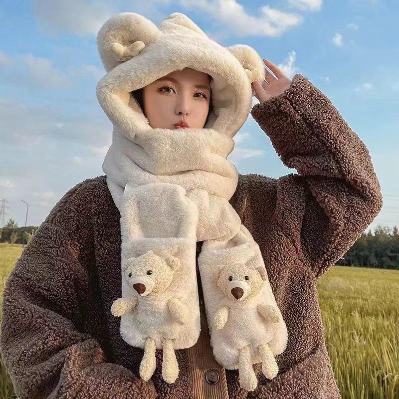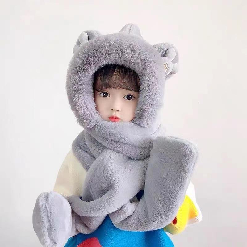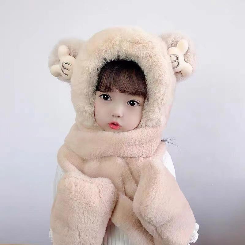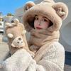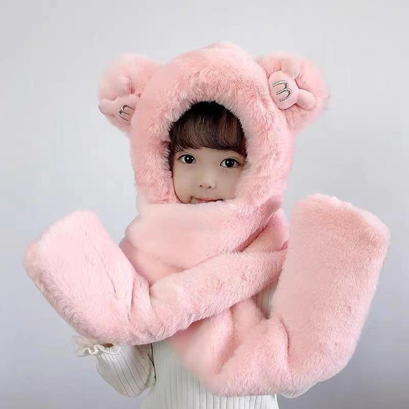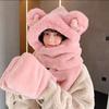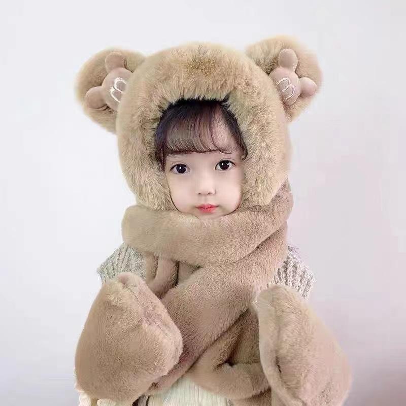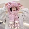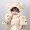 Conjunto de tres piezas de gorro, bufanda y guantes para niños, cálido y bonito gorro de invierno con capucha y diseño de oso, personalizable.