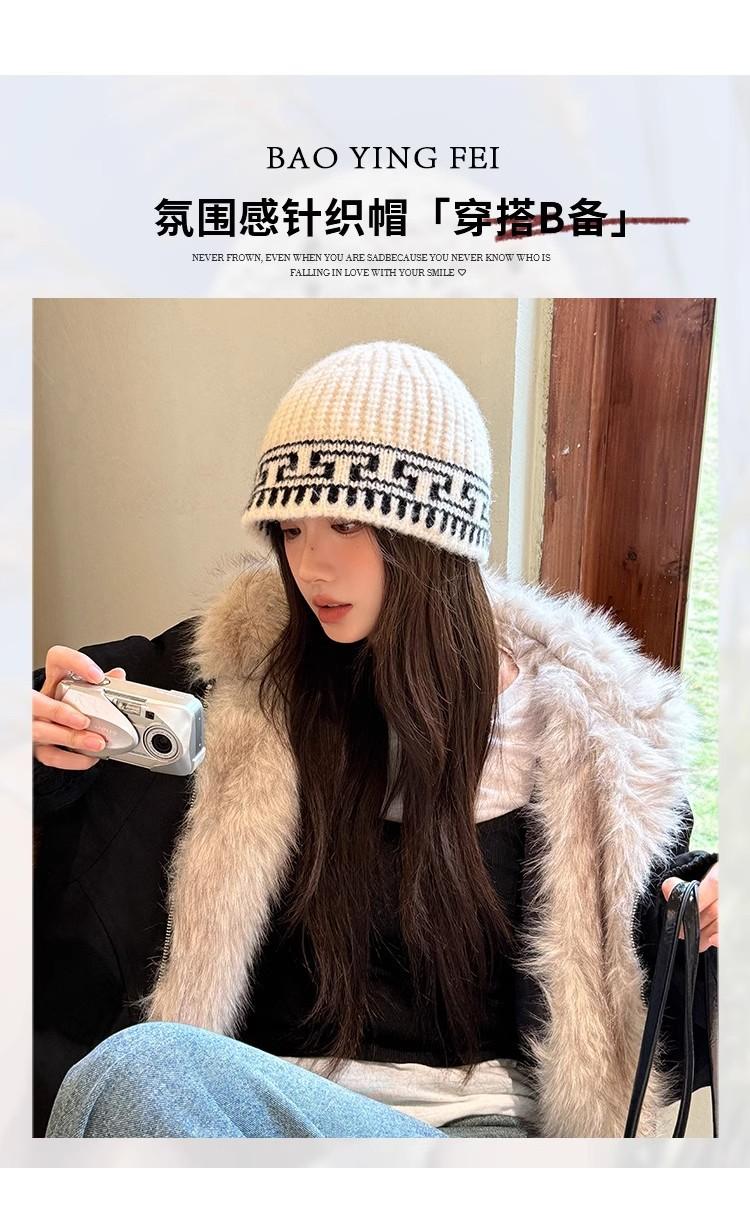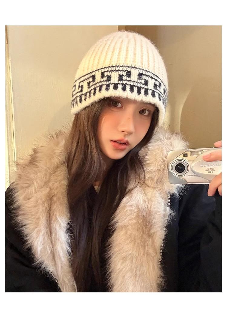 Gorro de lana jacquard vintage para niños, otoño e invierno, pequeño, cálido, resistente al frío, gorro Baotou, diseño de nicho, gorro de punto