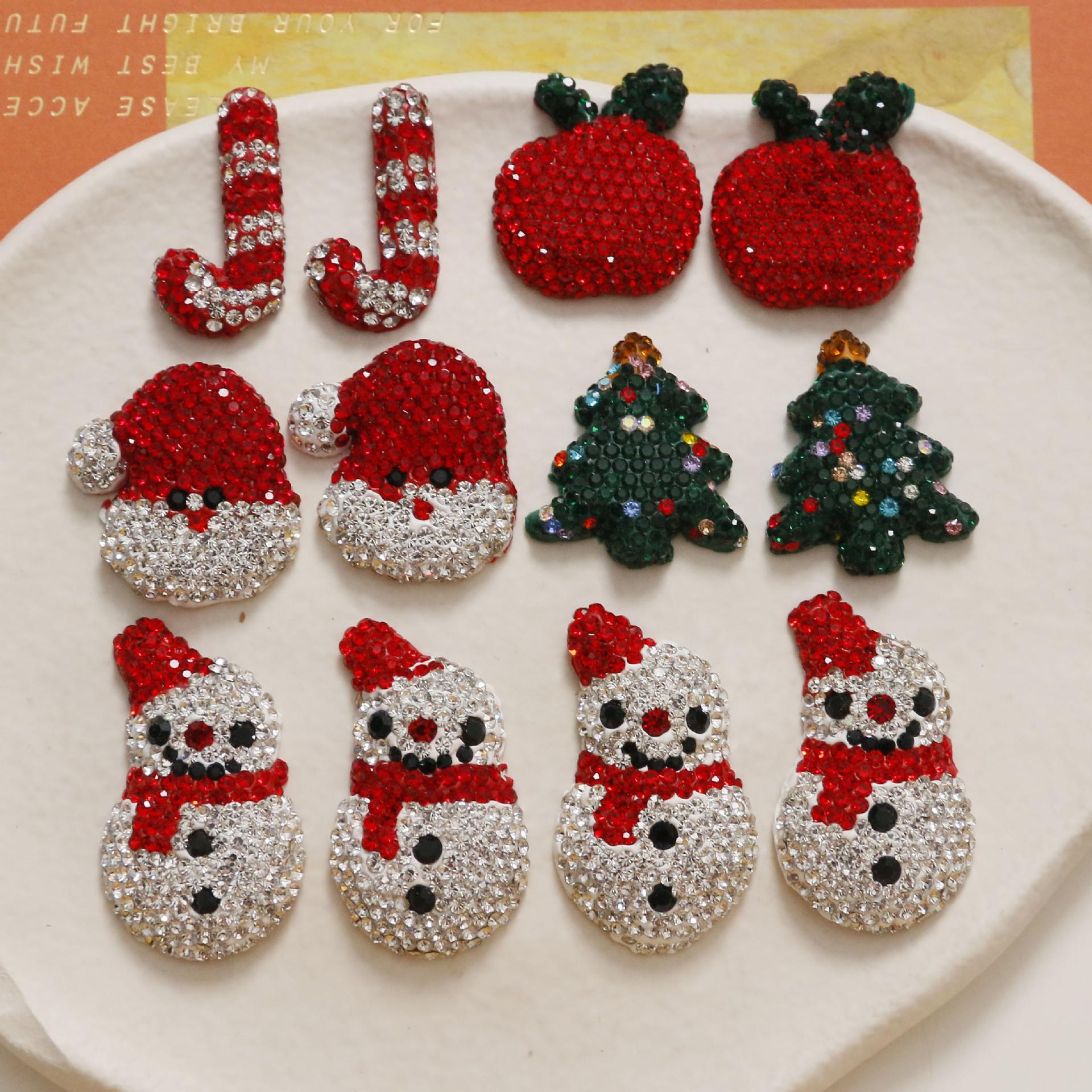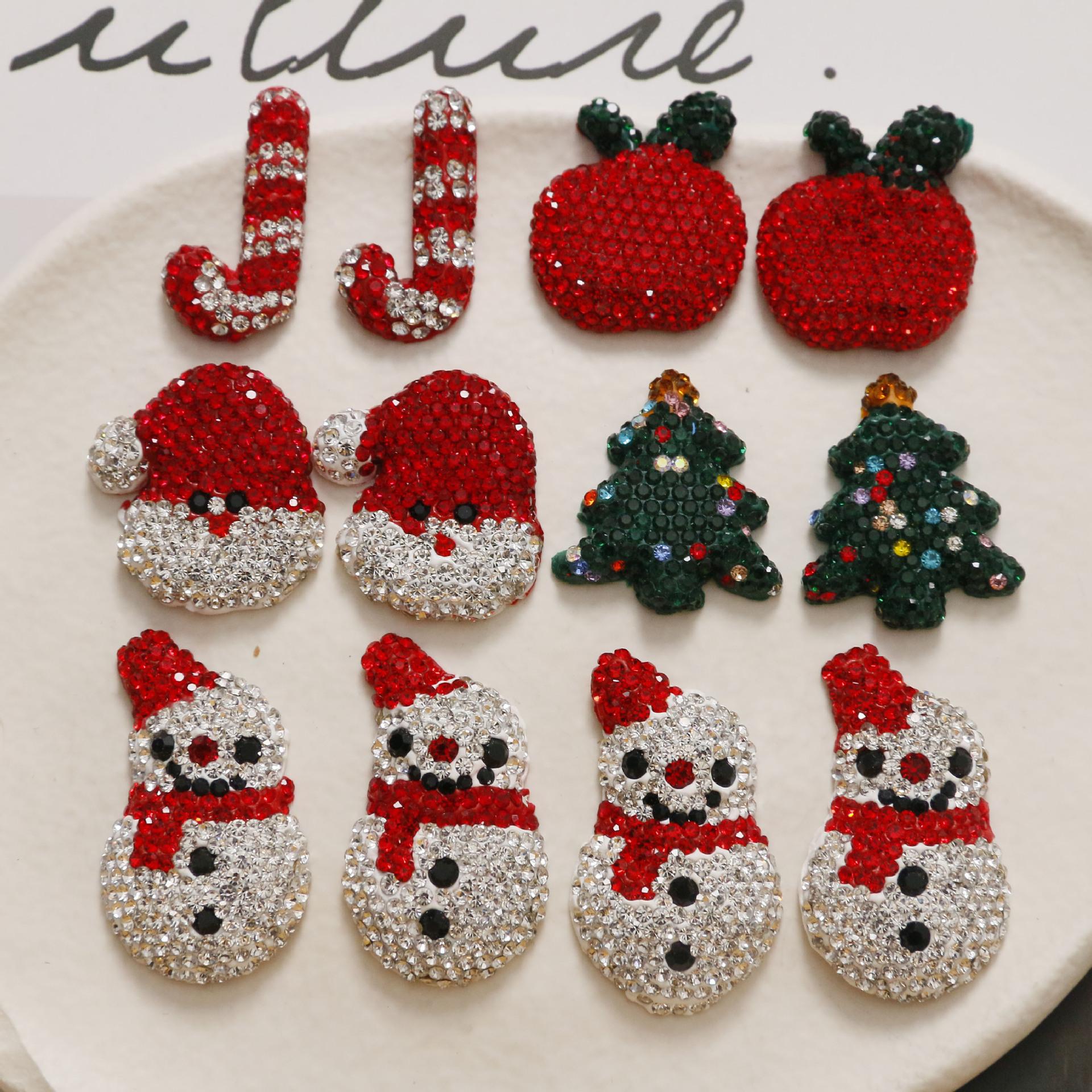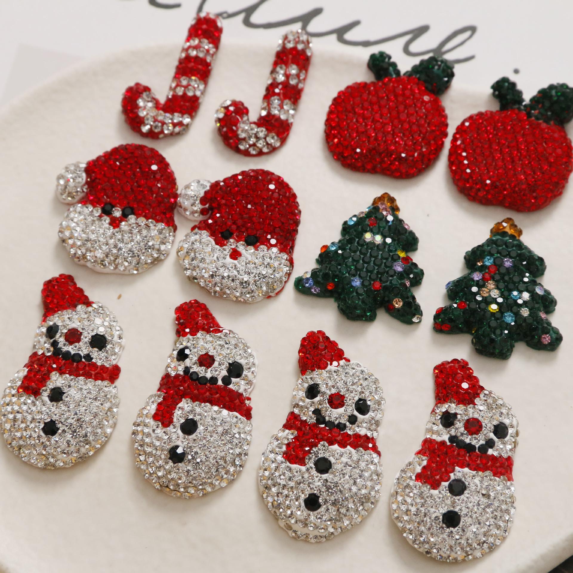 Serie navideña llena de diamantes, Papá Noel, muñeco de nieve, árbol de Navidad, accesorios de joyería de bricolaje, pendientes, tocado, material al por mayor