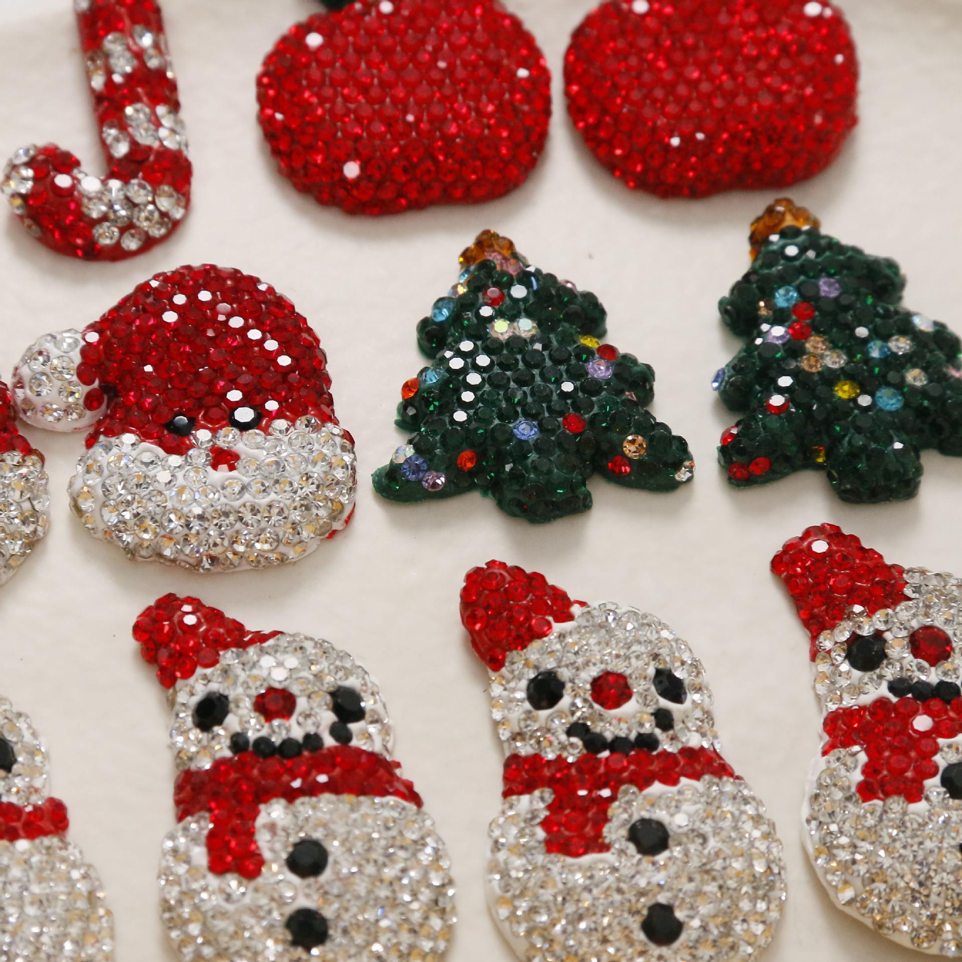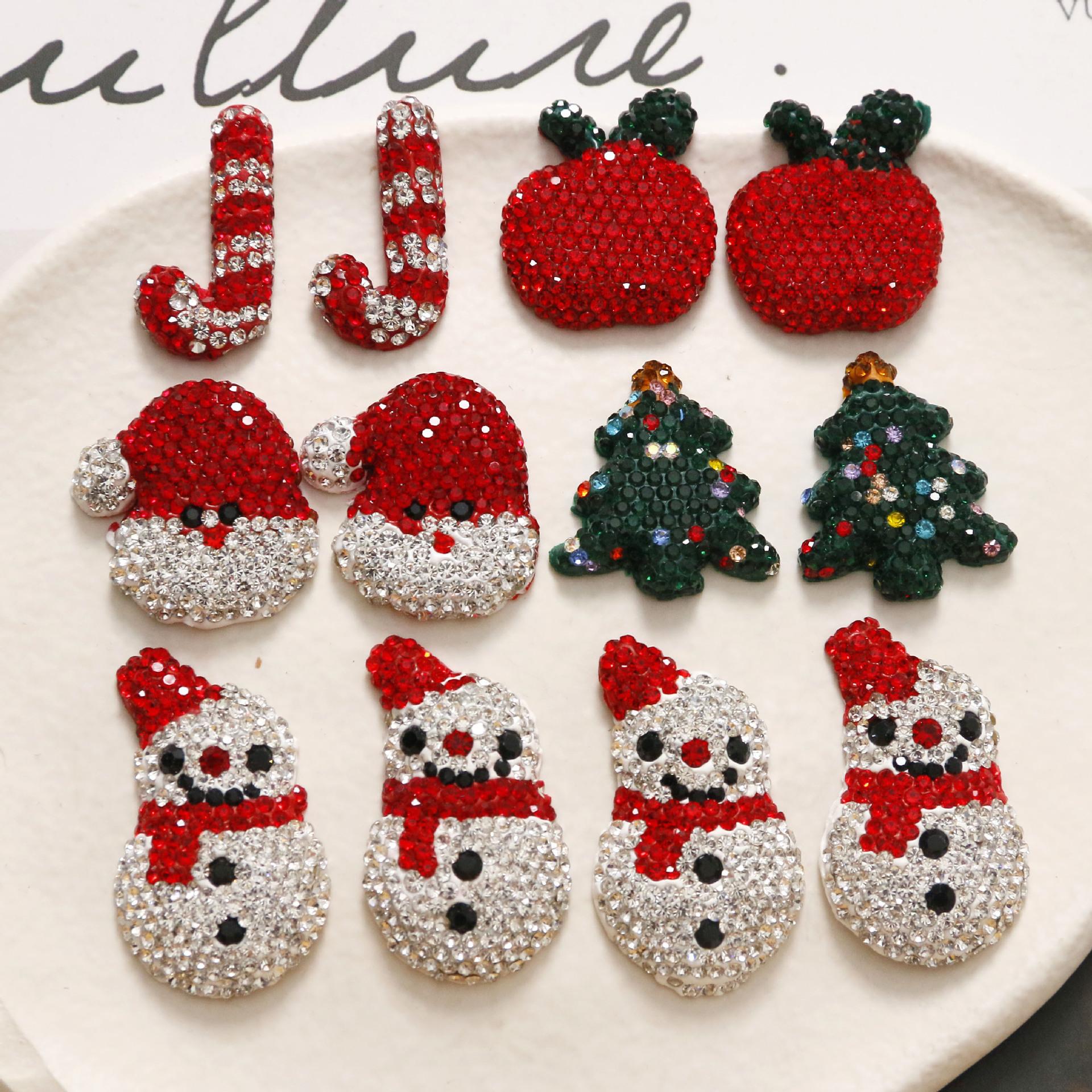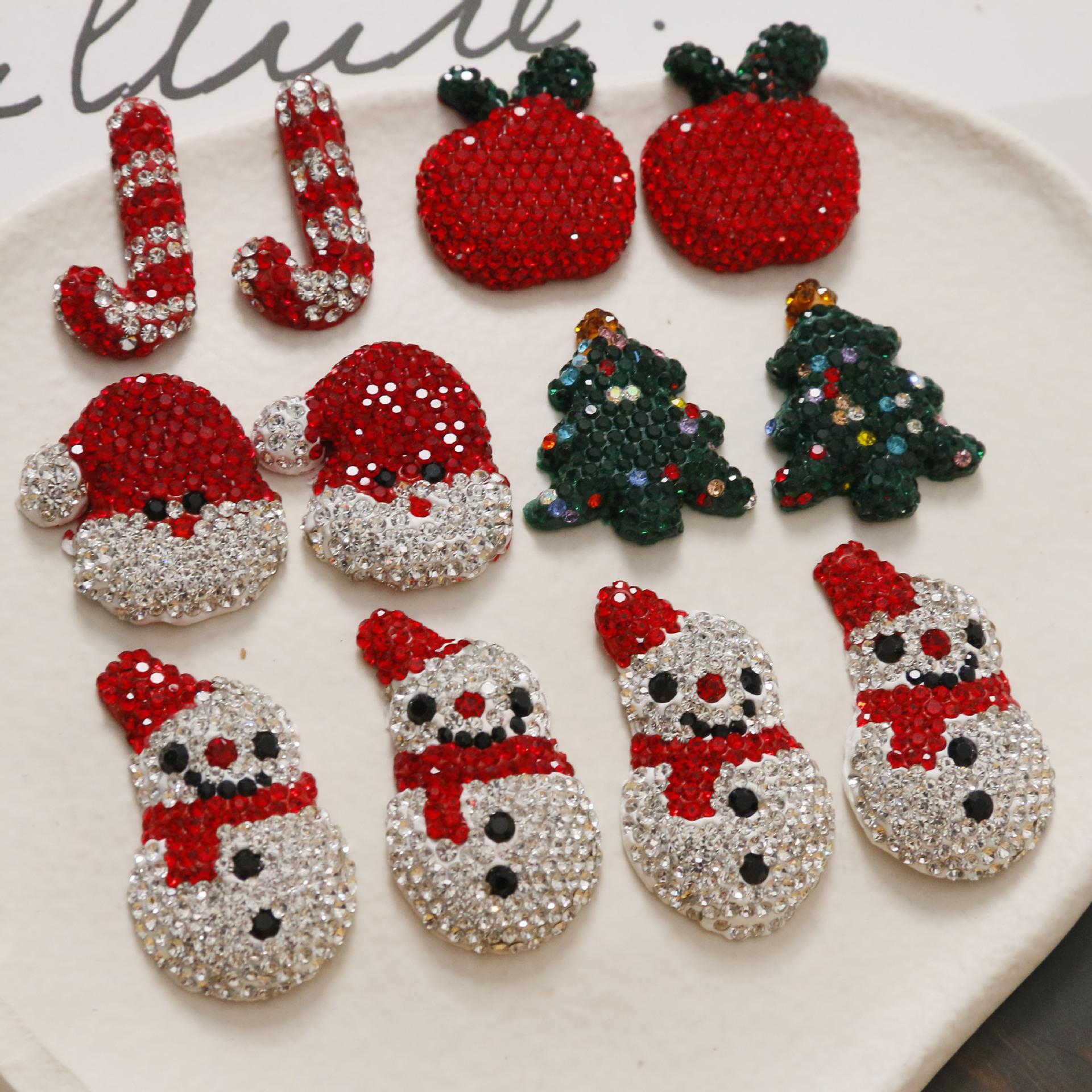 Serie navideña llena de diamantes, Papá Noel, muñeco de nieve, árbol de Navidad, accesorios de joyería de bricolaje, pendientes, tocado, material al por mayor