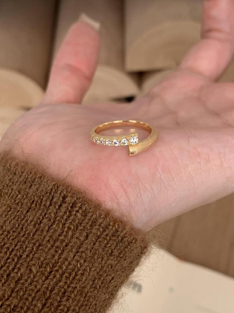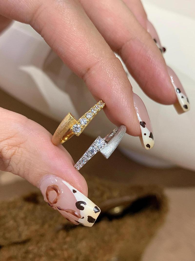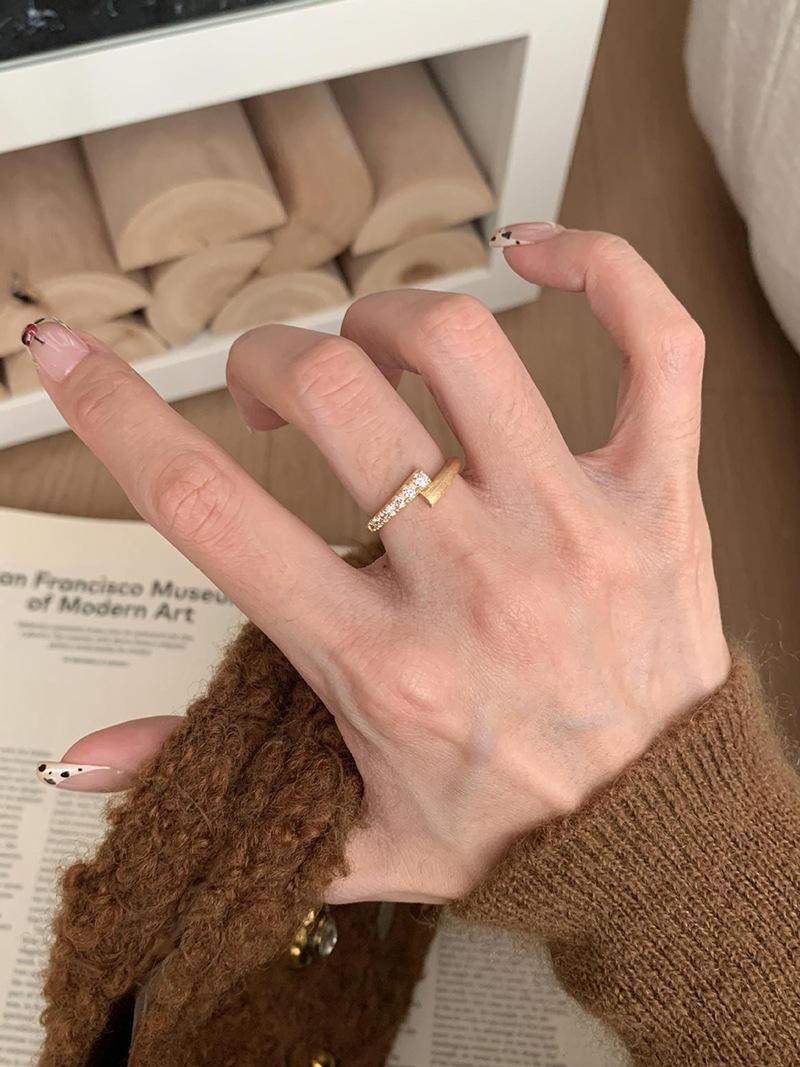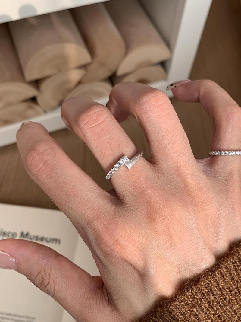 Anillo de circonita escalonada francesa para mujer, ligero, de lujo, elegante, único, de metal con trefilado, apertura ajustable, venta al por mayor
