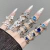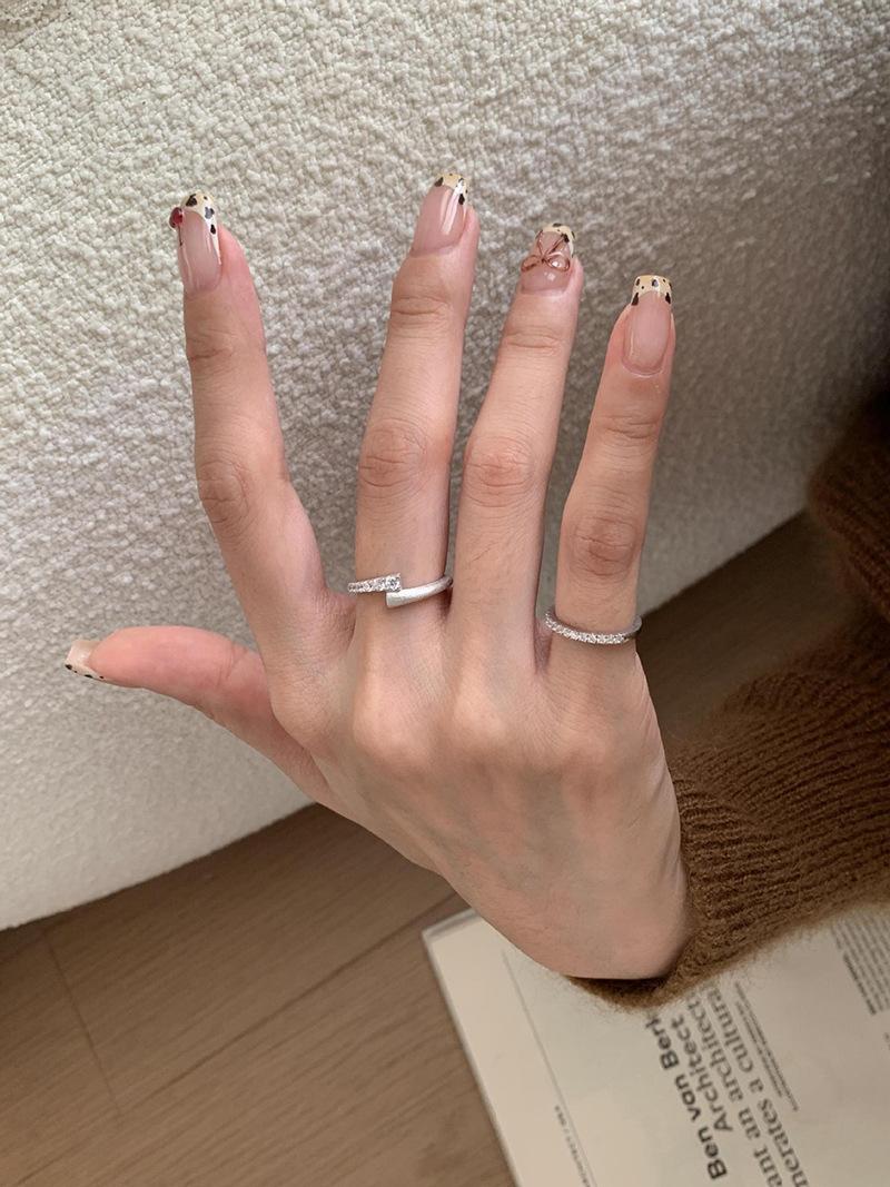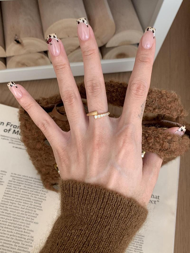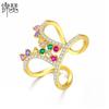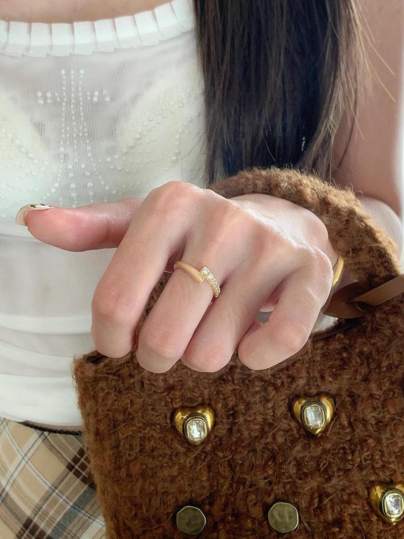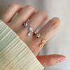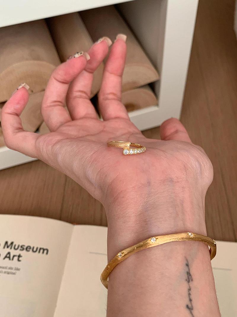 Anillo de circonita escalonada francesa para mujer, ligero, de lujo, elegante, único, de metal con trefilado, apertura ajustable, venta al por mayor