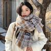 Bufanda Blanca a Cuadros Estilo Coreano Versátil Atmósfera Cálida Gruesa Blanca con Borlas Bufanda para Pareja Estudiante Otoño e Invierno