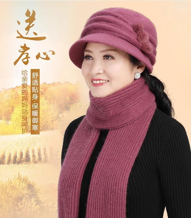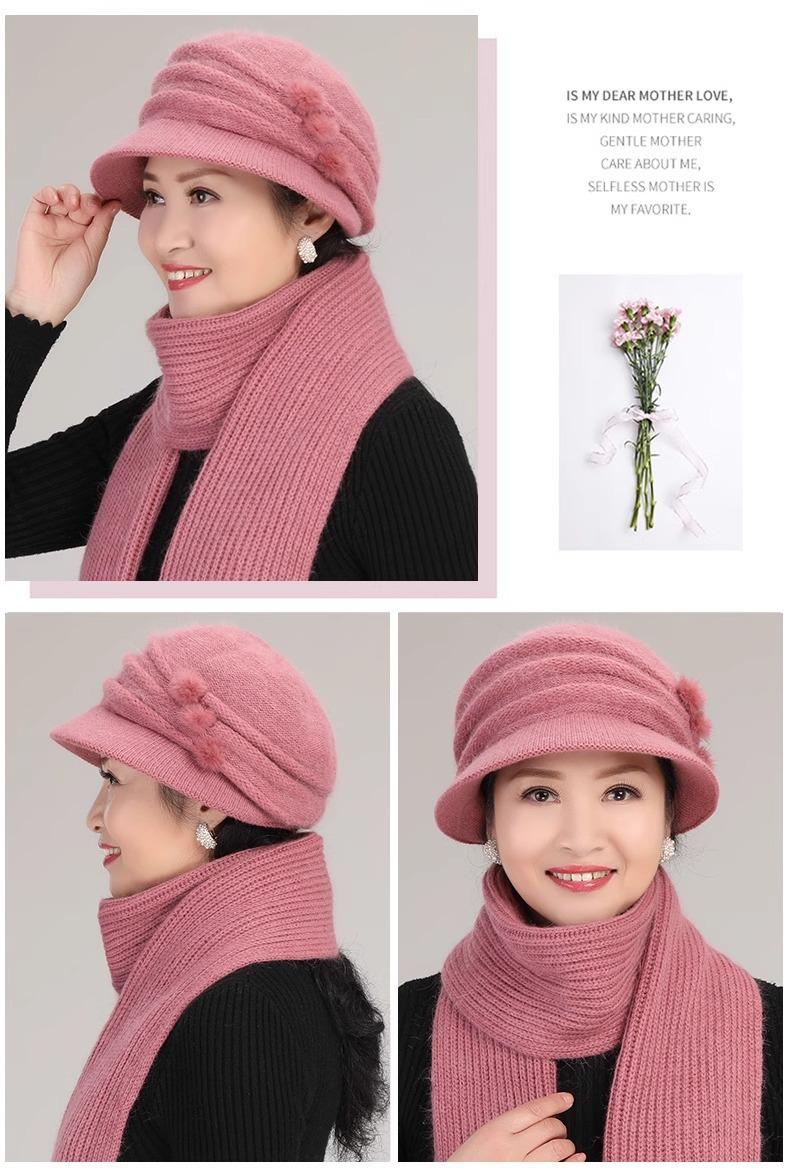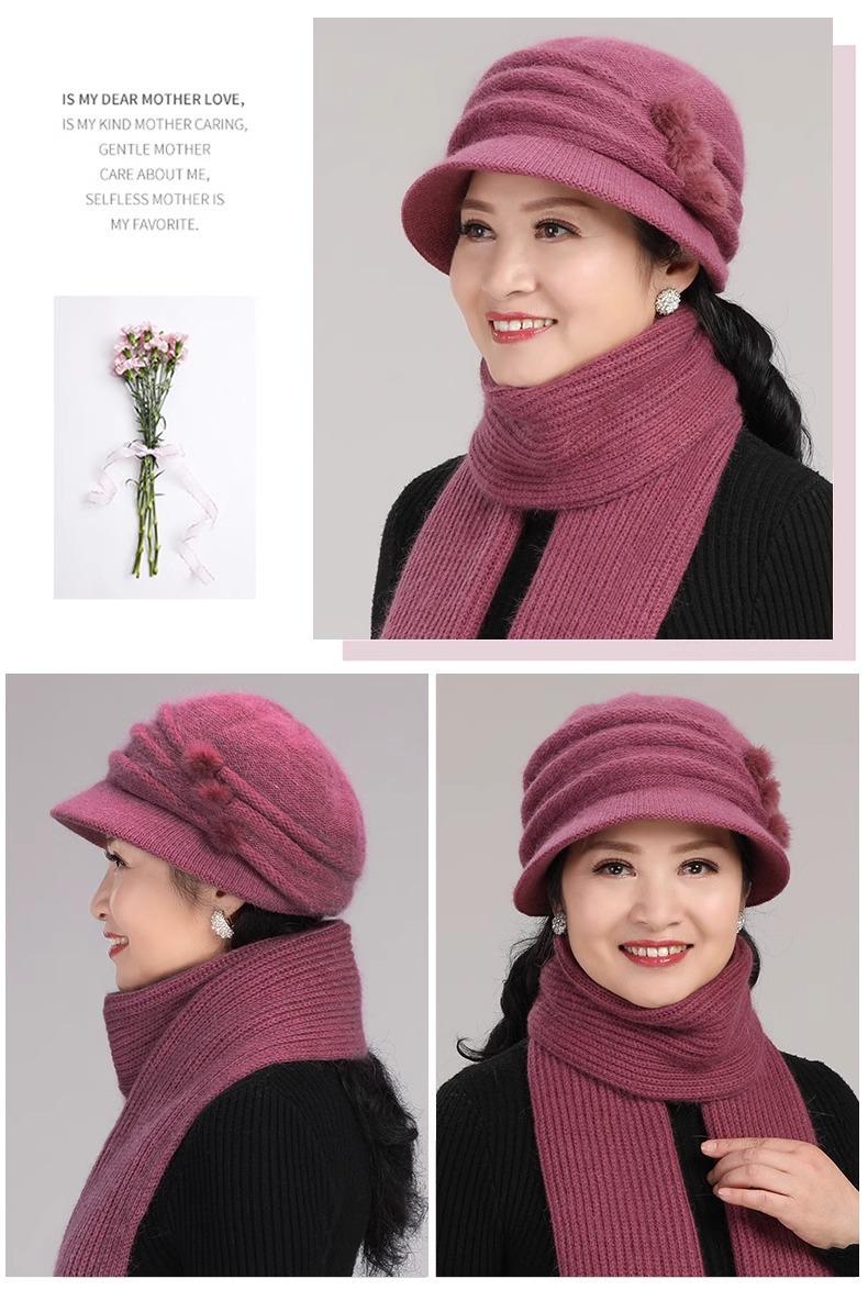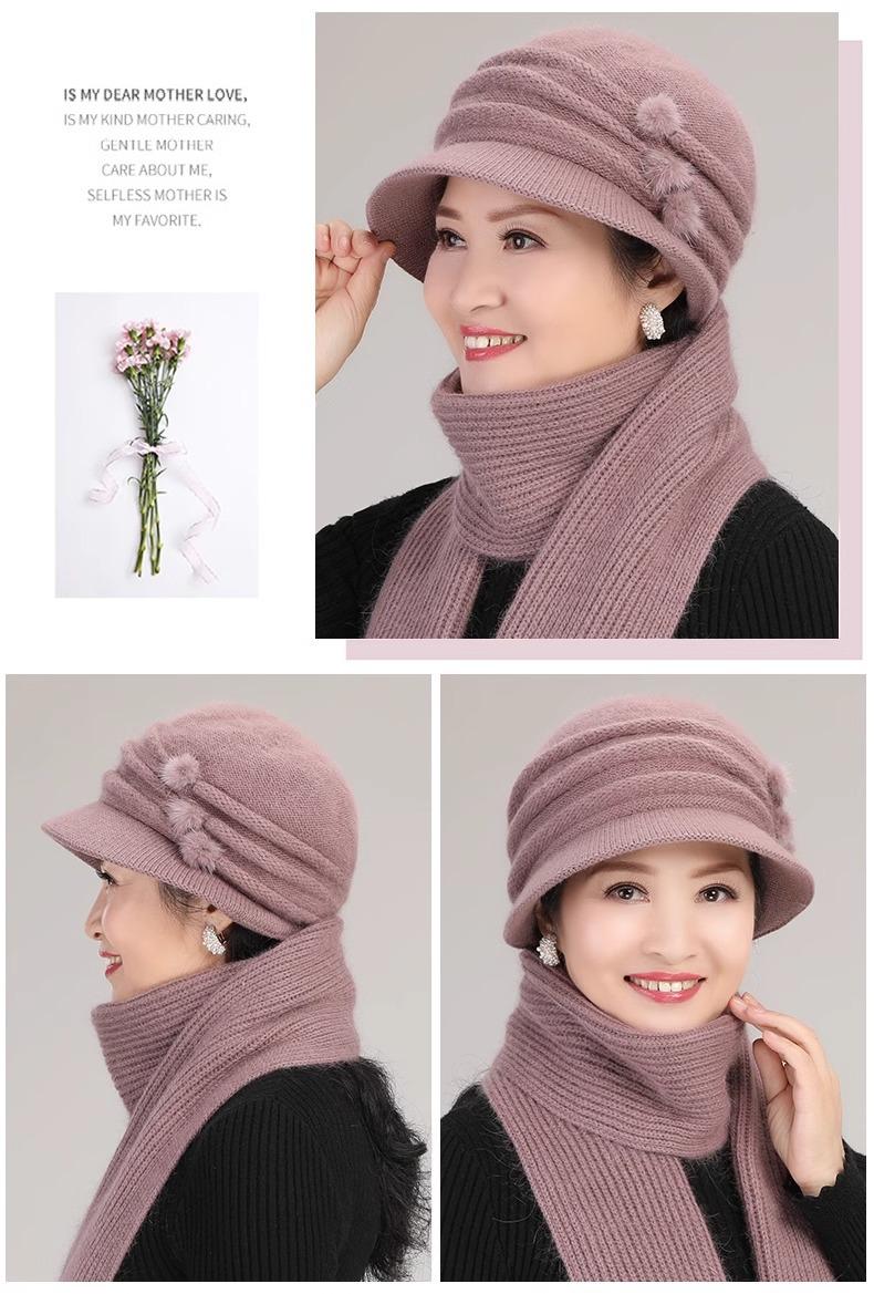 Gorro de invierno para mujer de mediana edad y anciana, tejido con protección para los oídos, gorro para madre, gorro para abuela, gorro de lana cálido con forro polar.