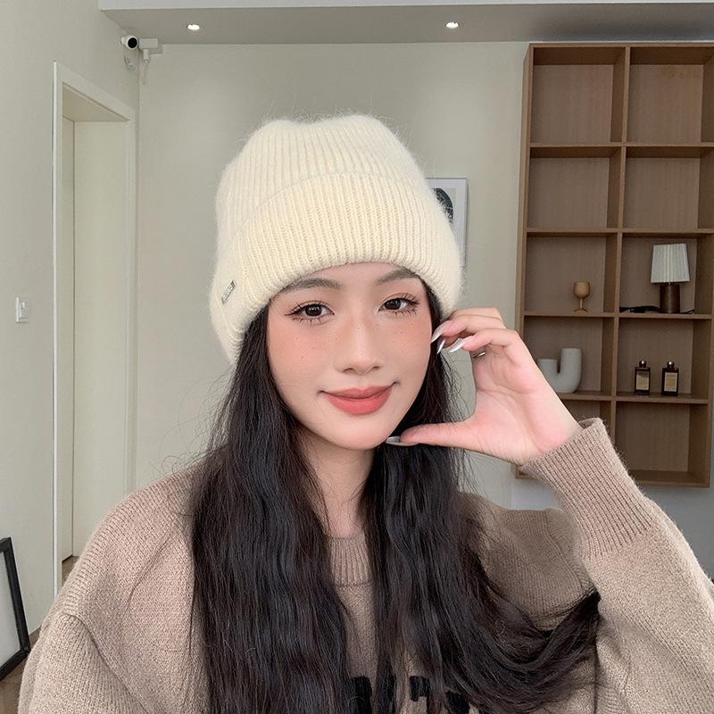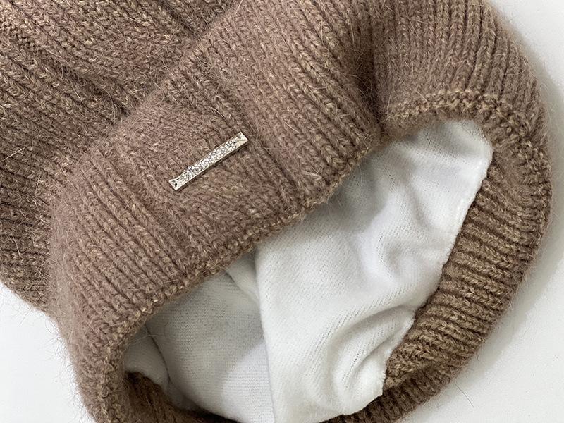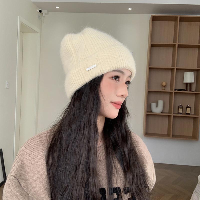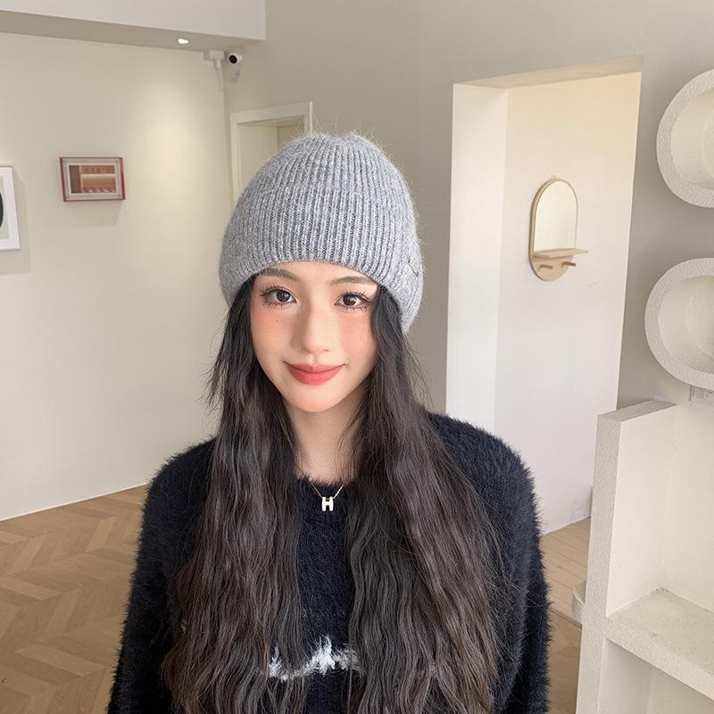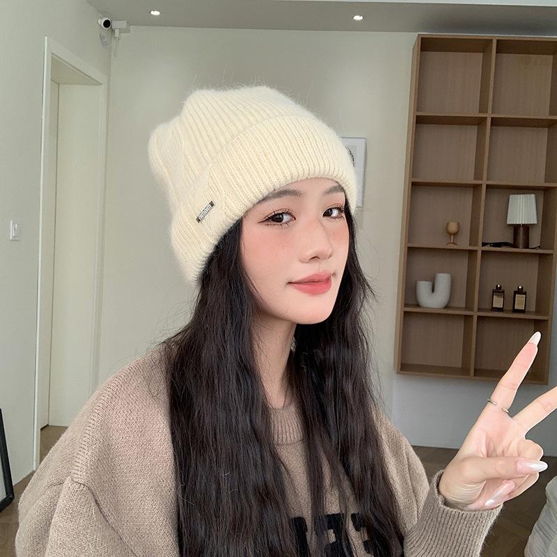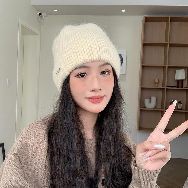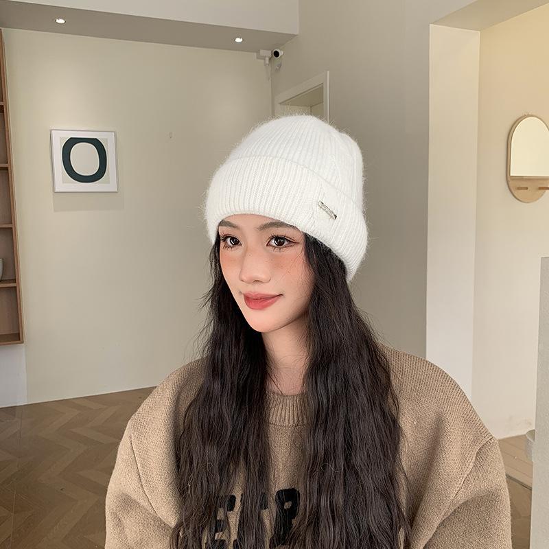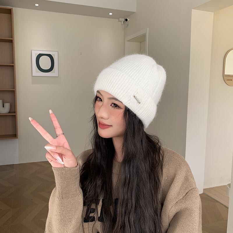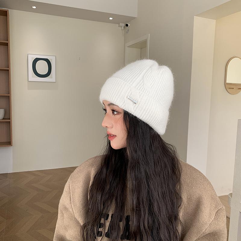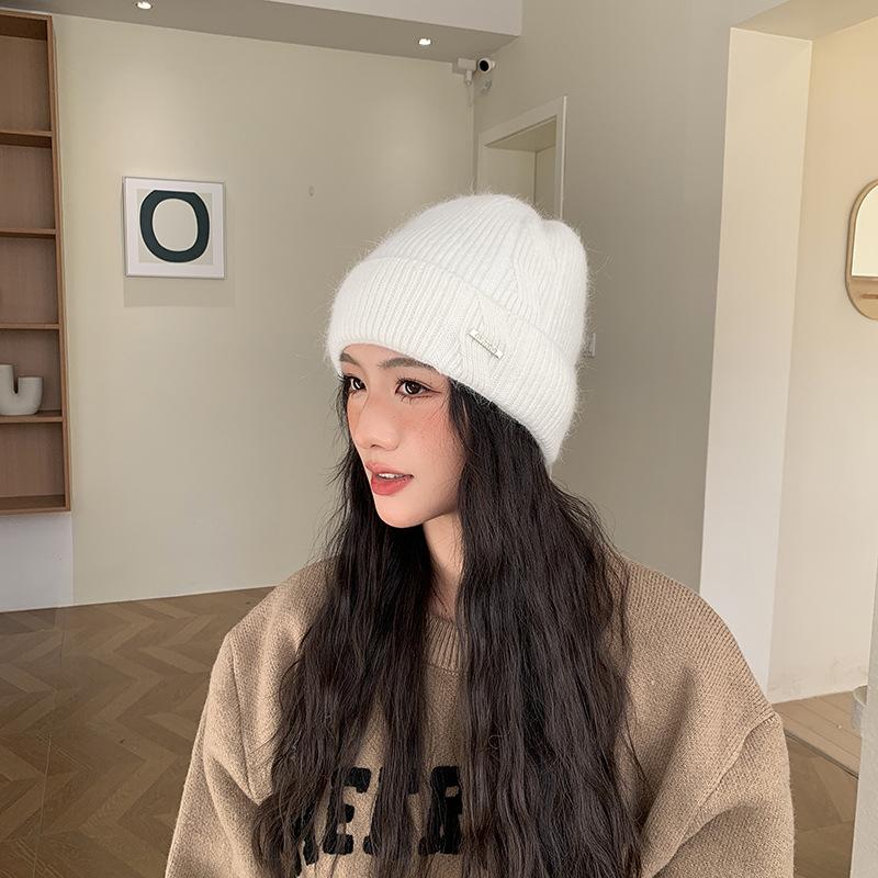 Gorro de invierno nuevo para mujer, bonito gorro de lana blanca, cabeza grande, grueso, cálido, pelo de conejo, protección para las orejas, gorro de punto, venta al por mayor