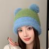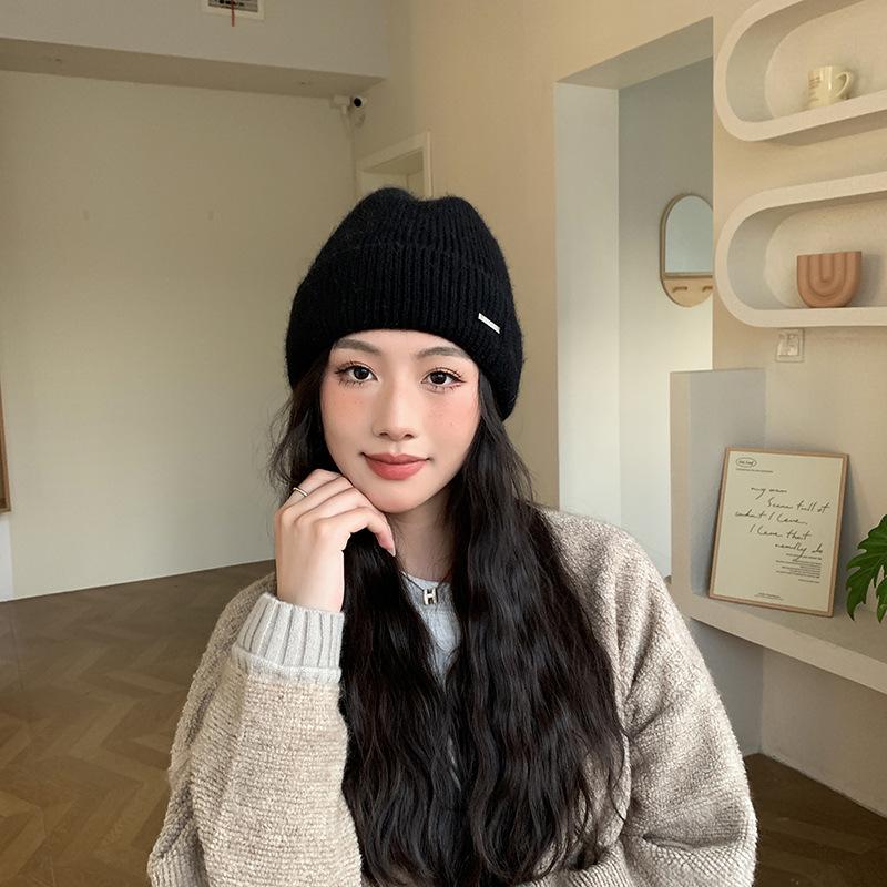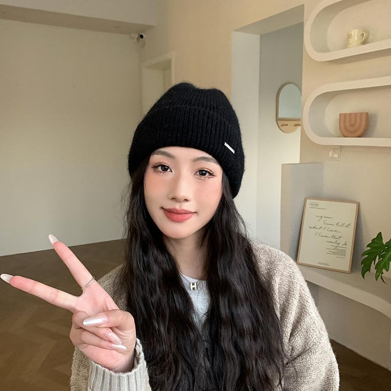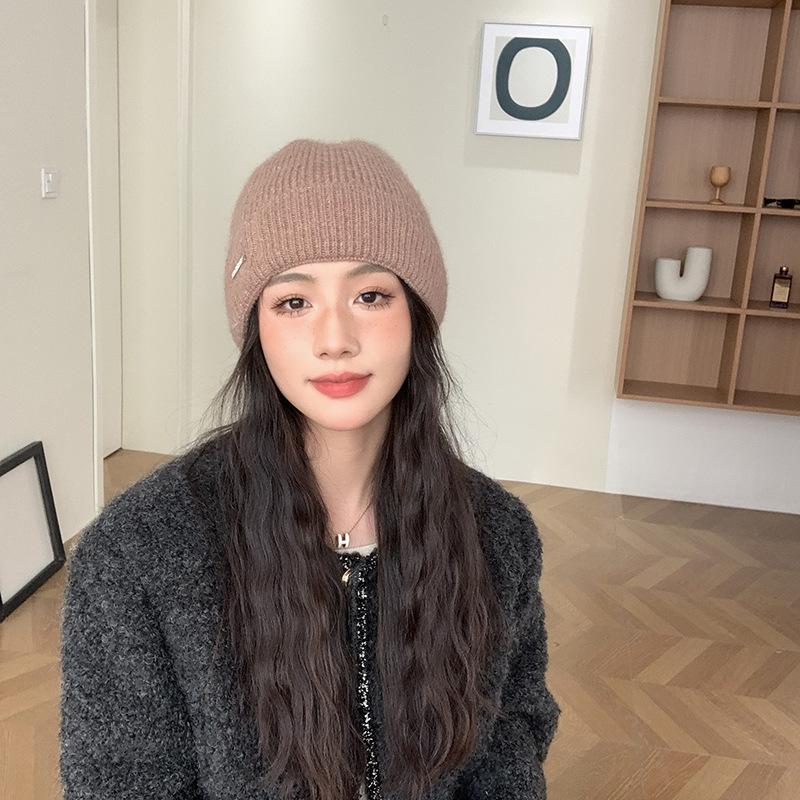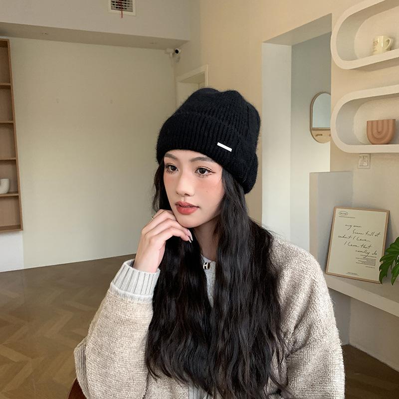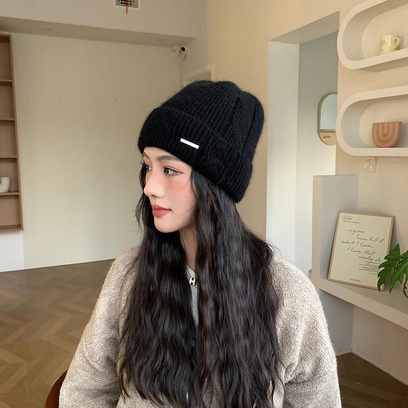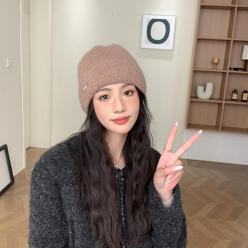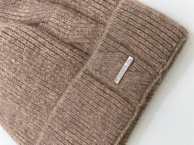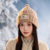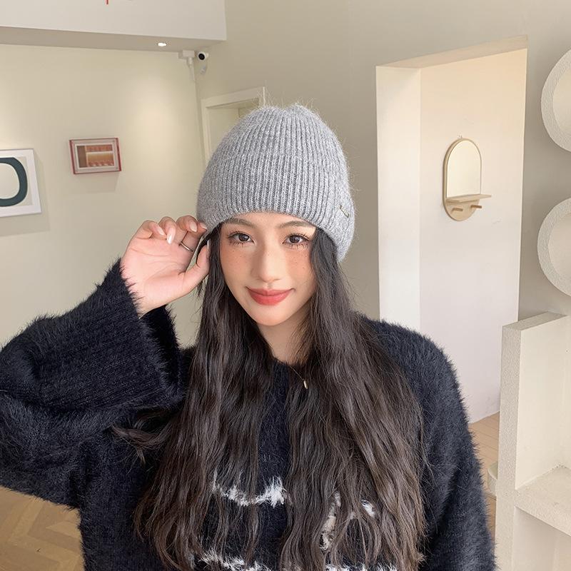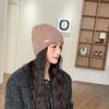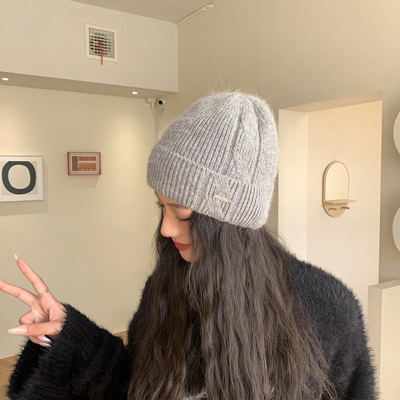 Gorro de invierno nuevo para mujer, bonito gorro de lana blanca, cabeza grande, grueso, cálido, pelo de conejo, protección para las orejas, gorro de punto, venta al por mayor
