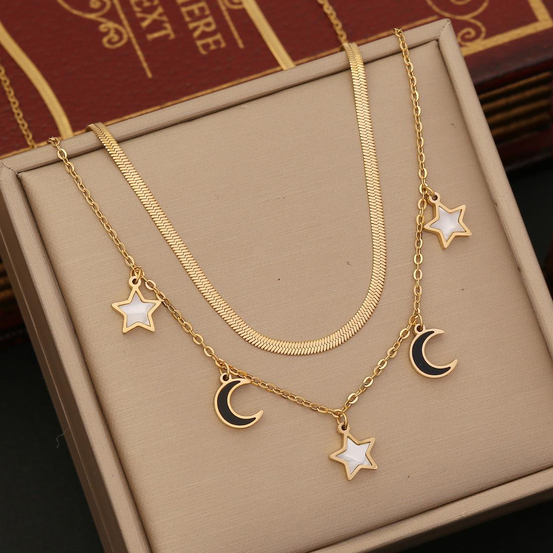Nuevo collar de joyería transfronteriza de doble mariposa, cadena para clavícula de estrella y luna, collar de acero inoxidable N1076