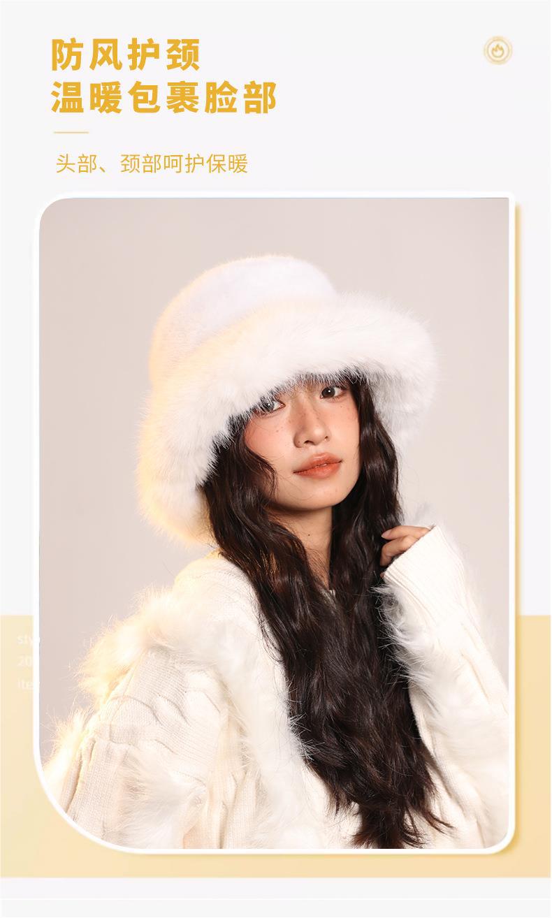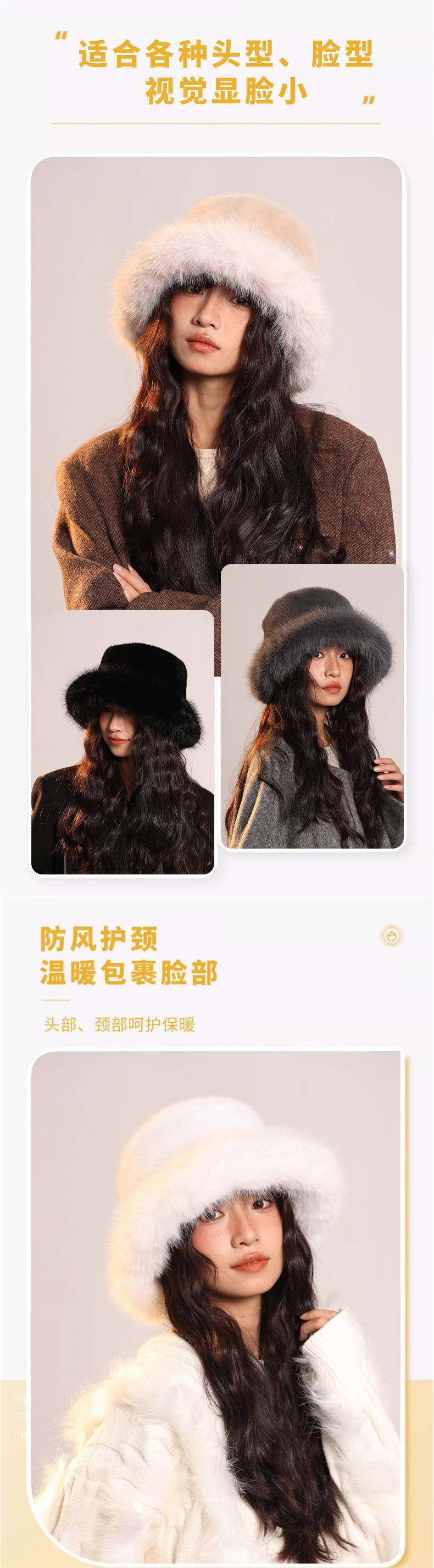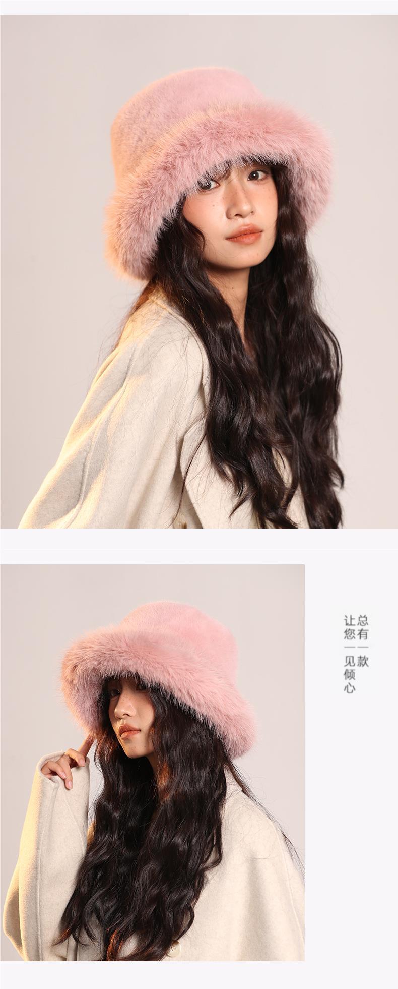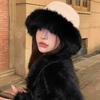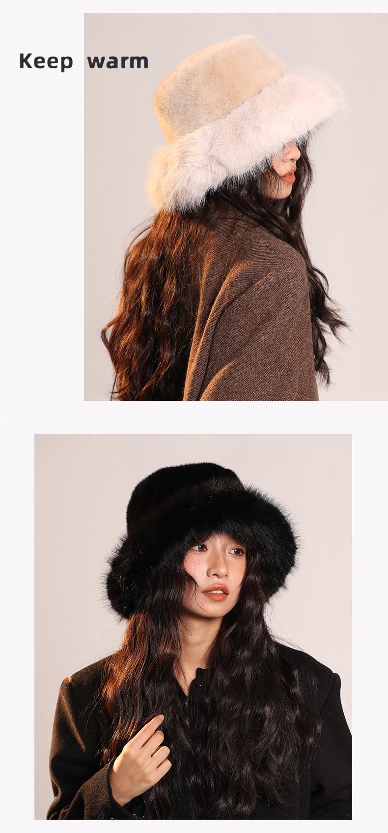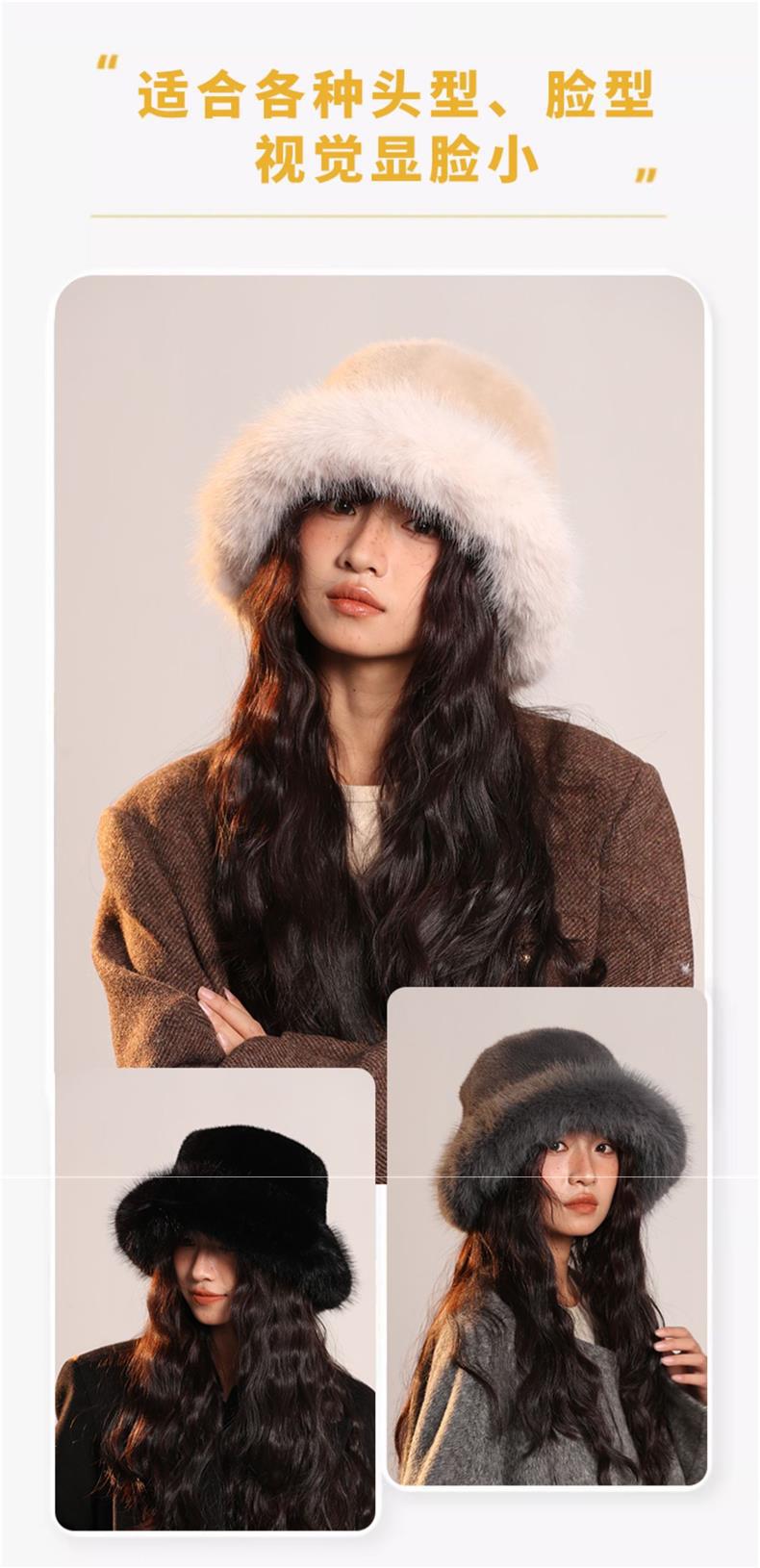 Sombrero de Visón de Imitación de Alta Gama para Mujer para Otoño e Invierno Sombrero de Pescador de Felpa Caqui de Alta Gama que Muestra el Rostro Pequeño Cálido Protección para las Orejas