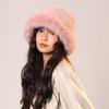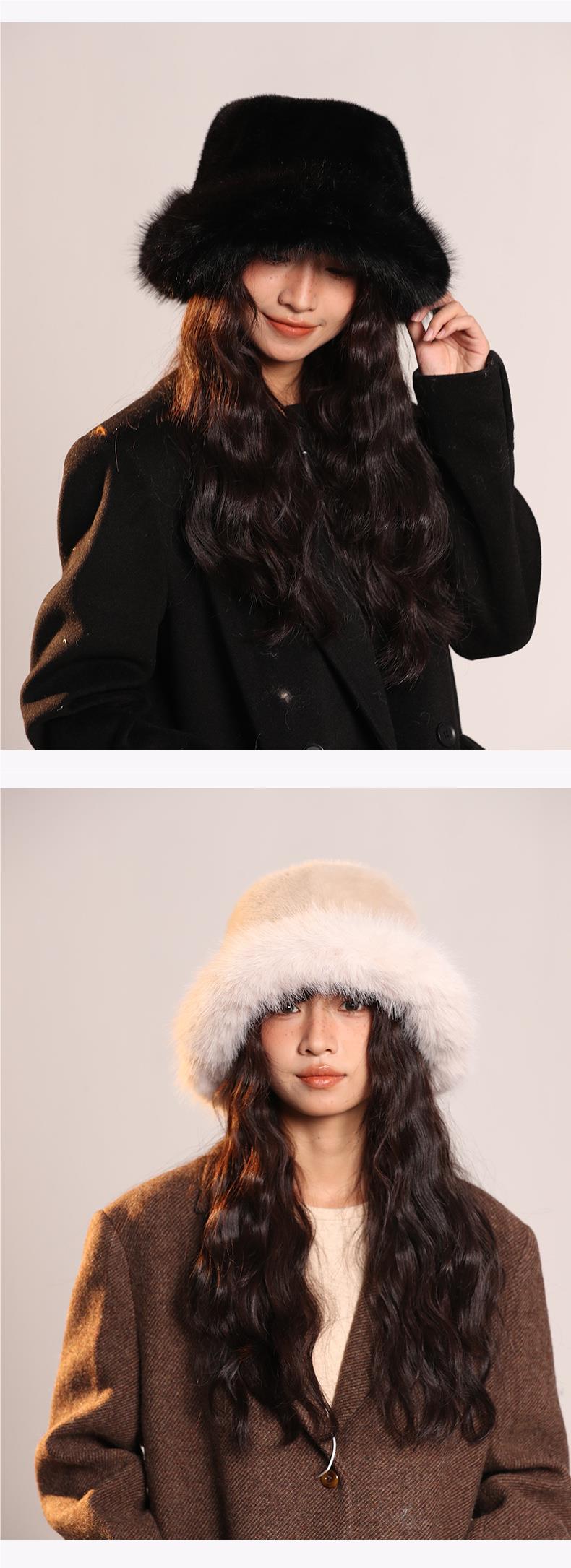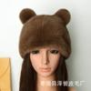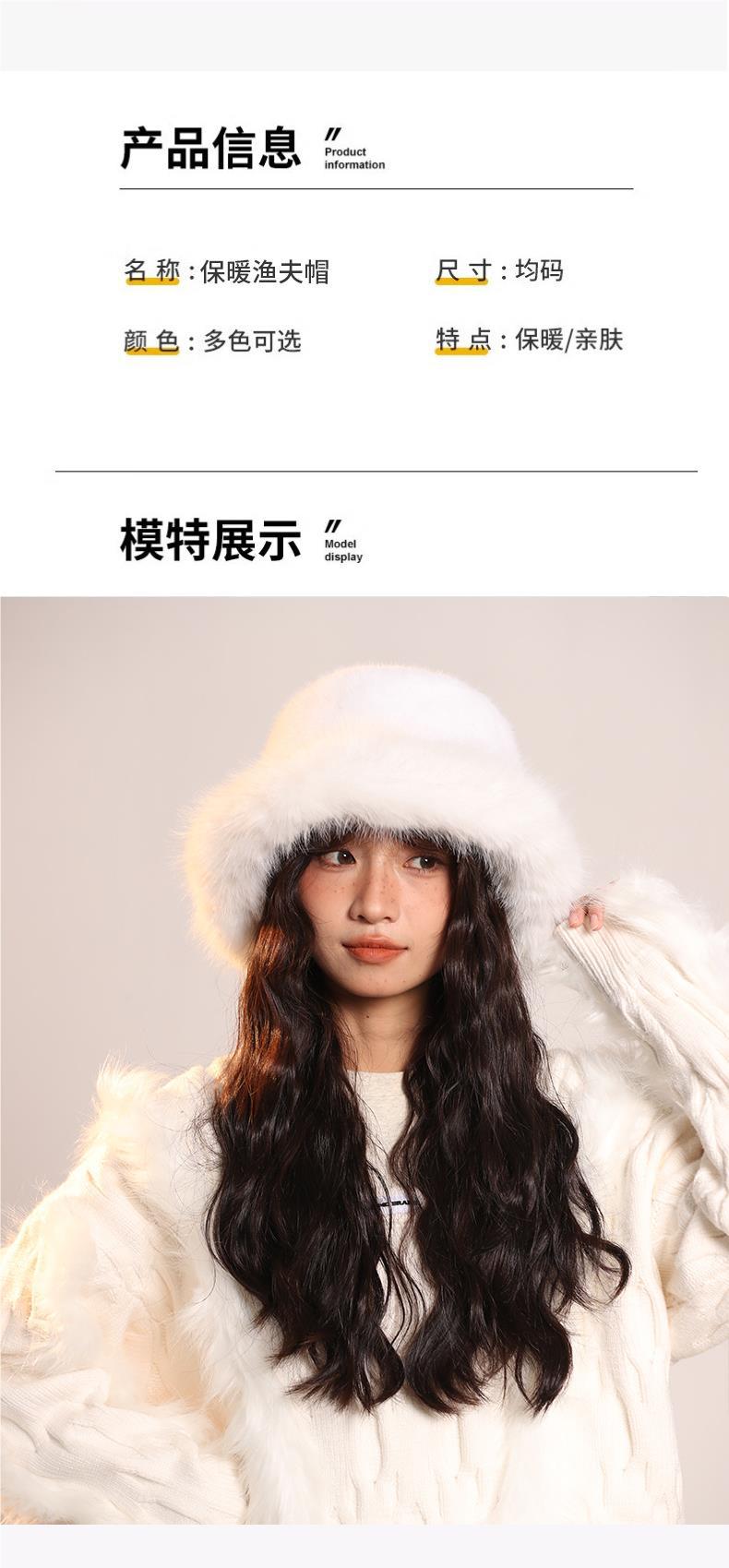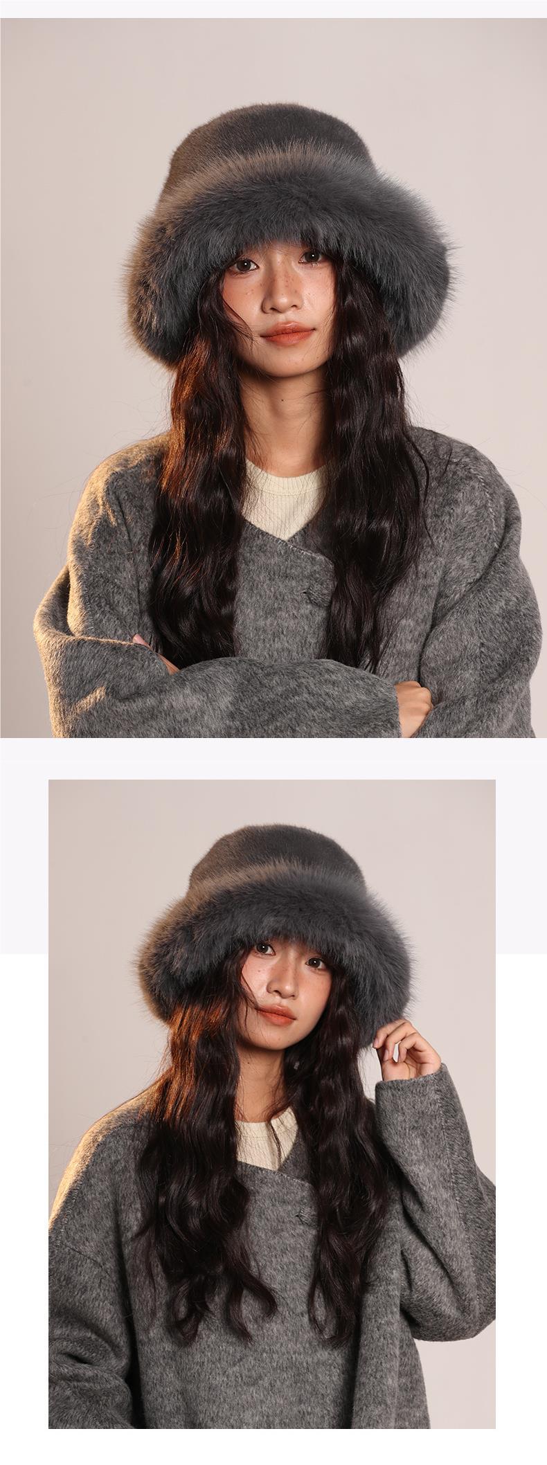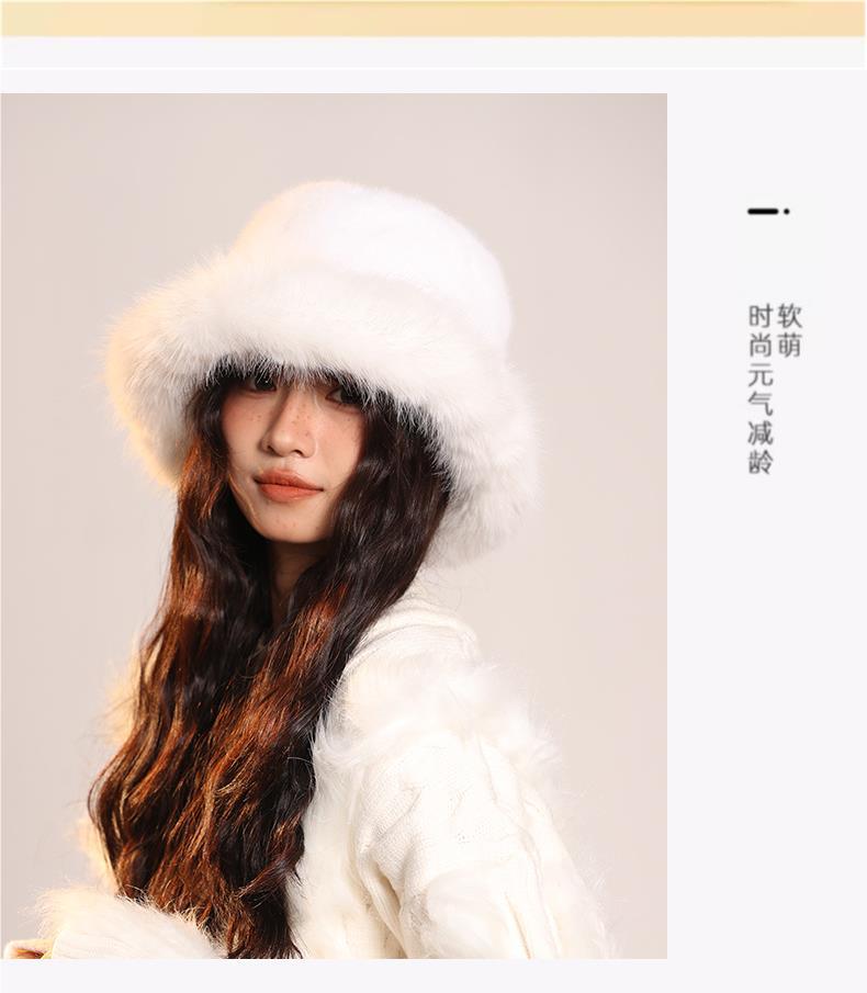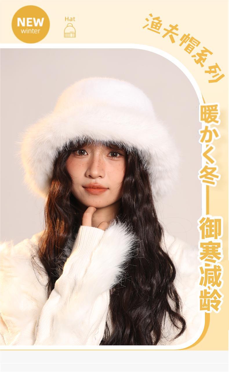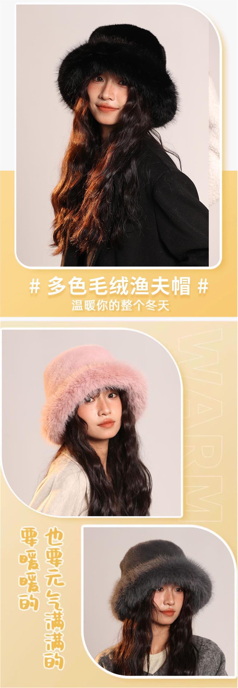 Sombrero de Visón de Imitación de Alta Gama para Mujer para Otoño e Invierno Sombrero de Pescador de Felpa Caqui de Alta Gama que Muestra el Rostro Pequeño Cálido Protección para las Orejas