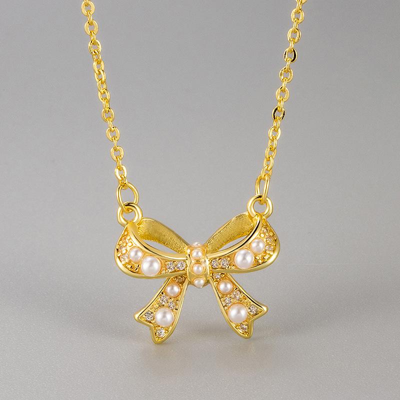 Nuevo collar con lazo de perlas de circón para mujer, ligero, de lujo, diseño de moda de nicho, cadena de clavícula, ideal para todo tipo de celebridades de Internet.