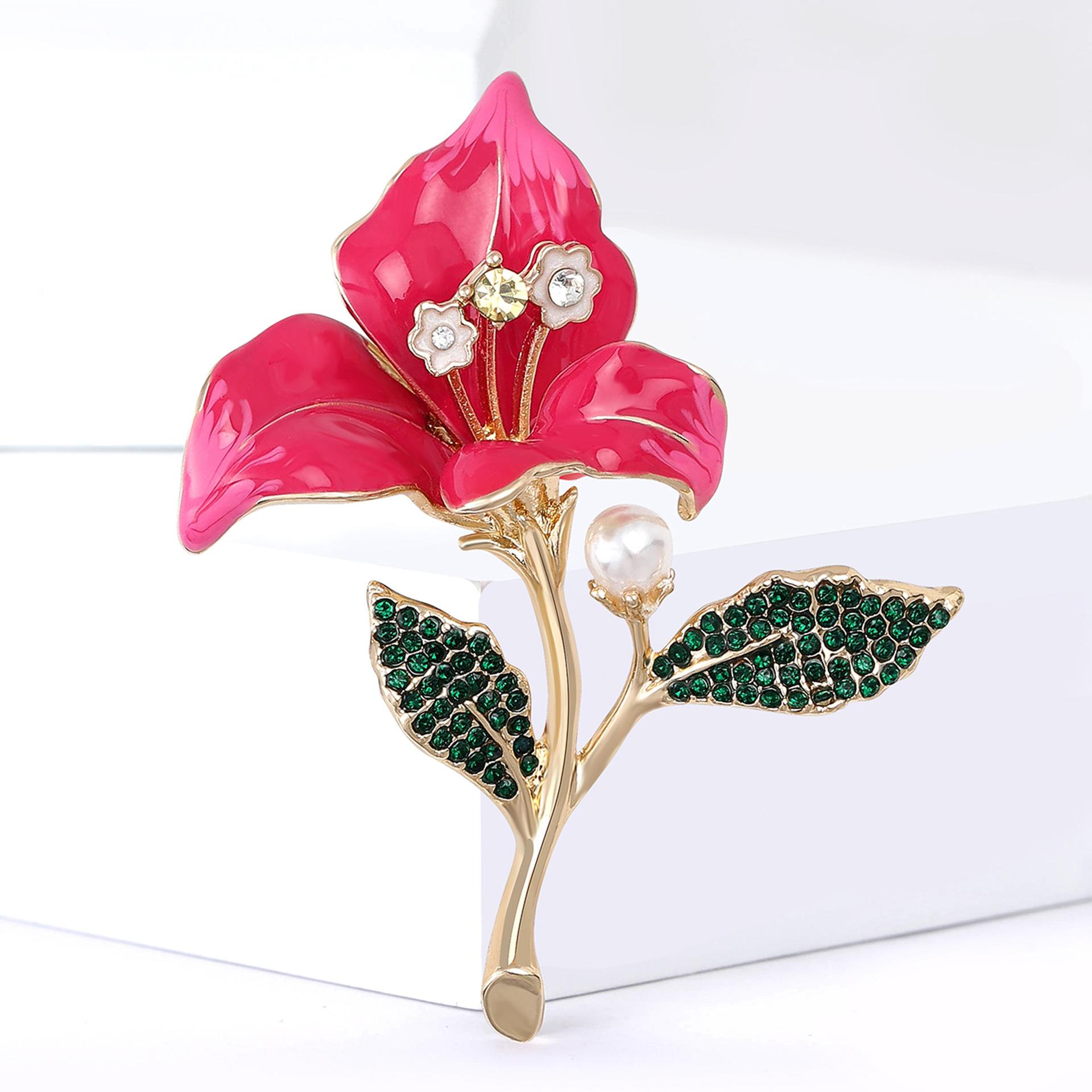 Broche de flor de begonia esmaltada de aleación de moda, elegante y de alta gama, para mujer, para traje, abrigo, ramillete, joyería