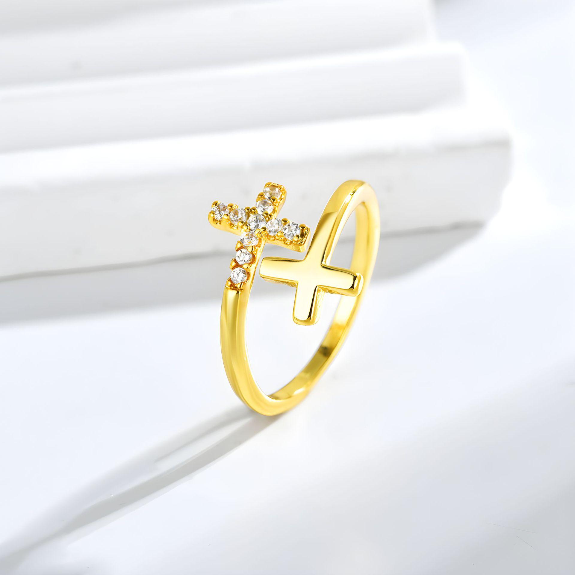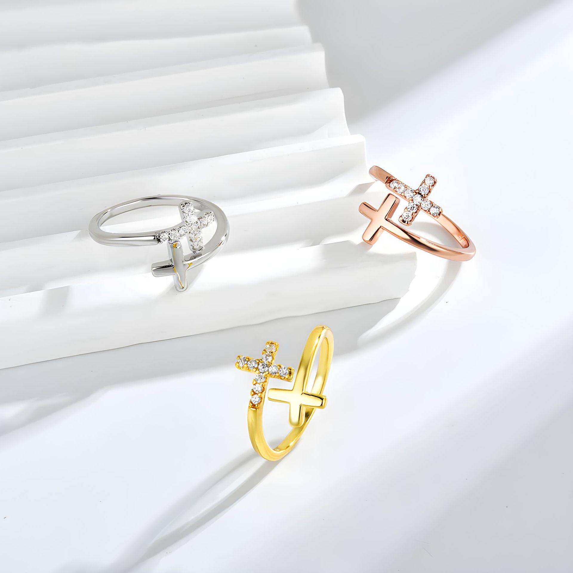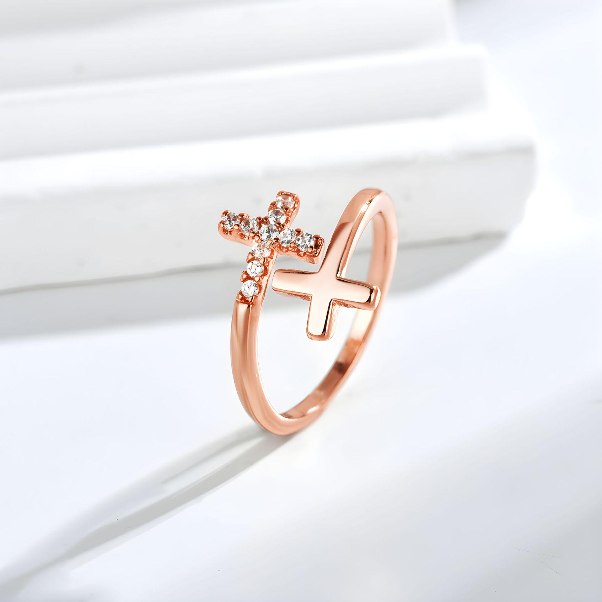 Anillo cruzado europeo y americano simple y moderno, unisex, con microincrustaciones de circonita, apertura ajustable, joyería transfronteriza.