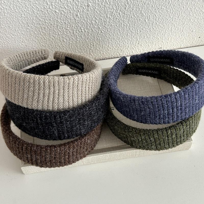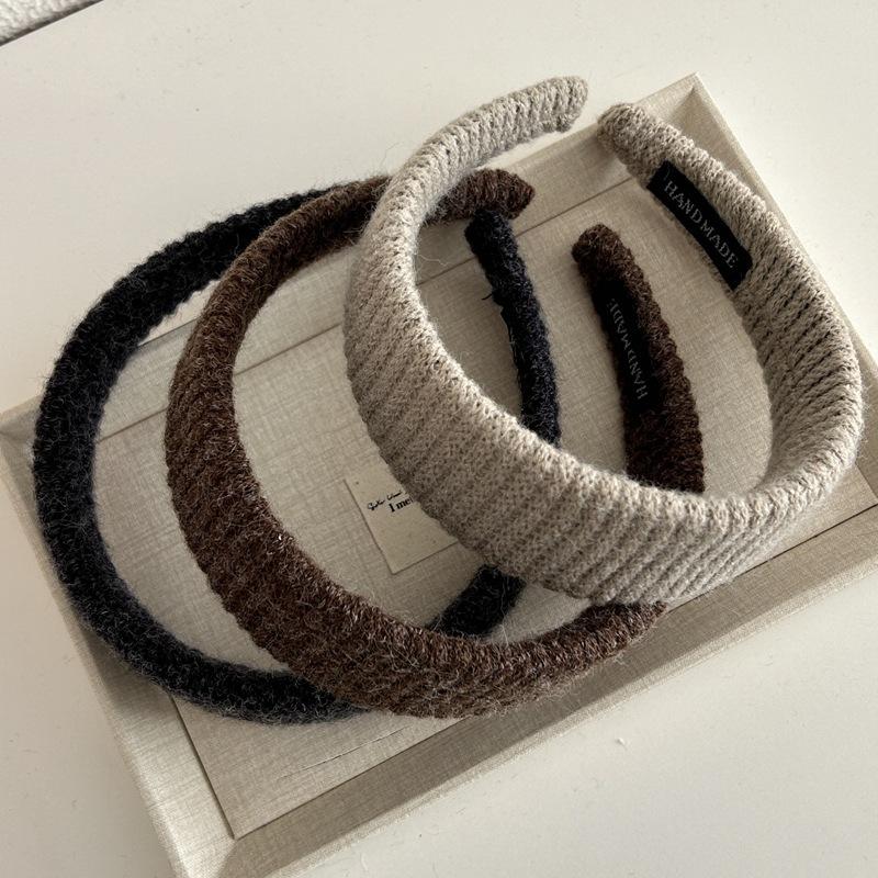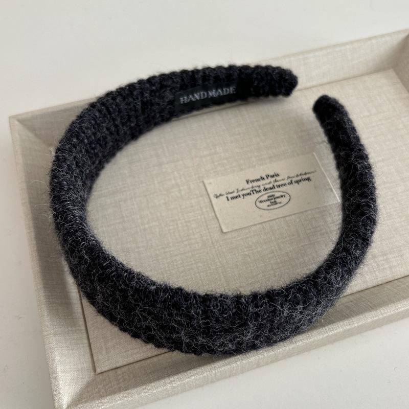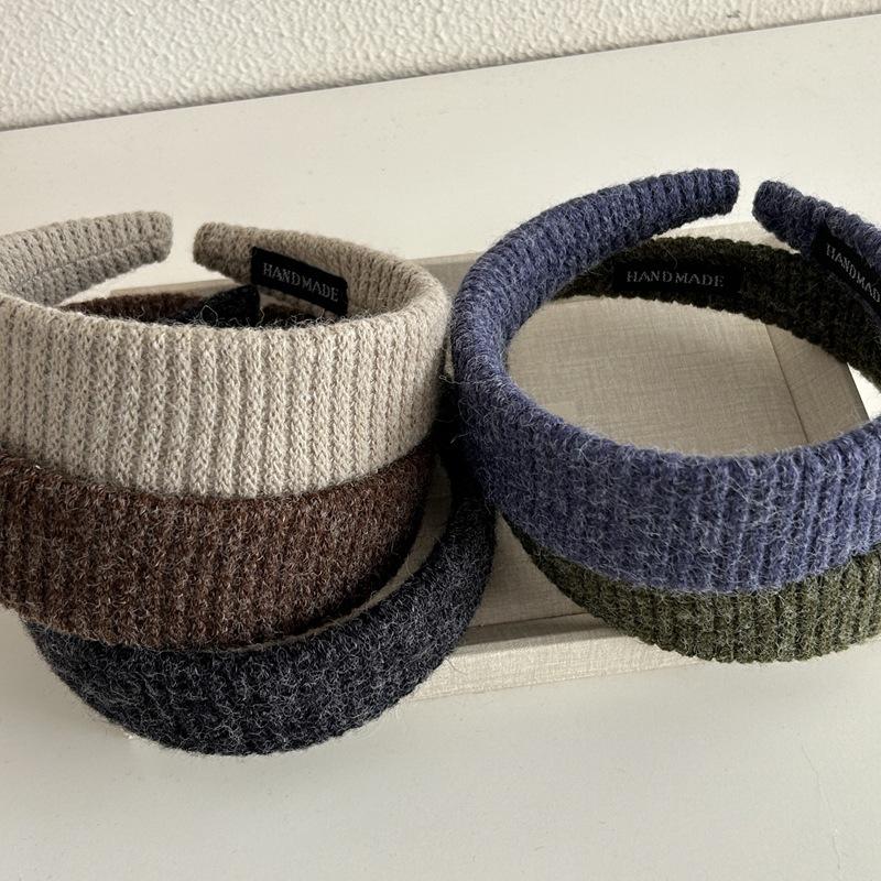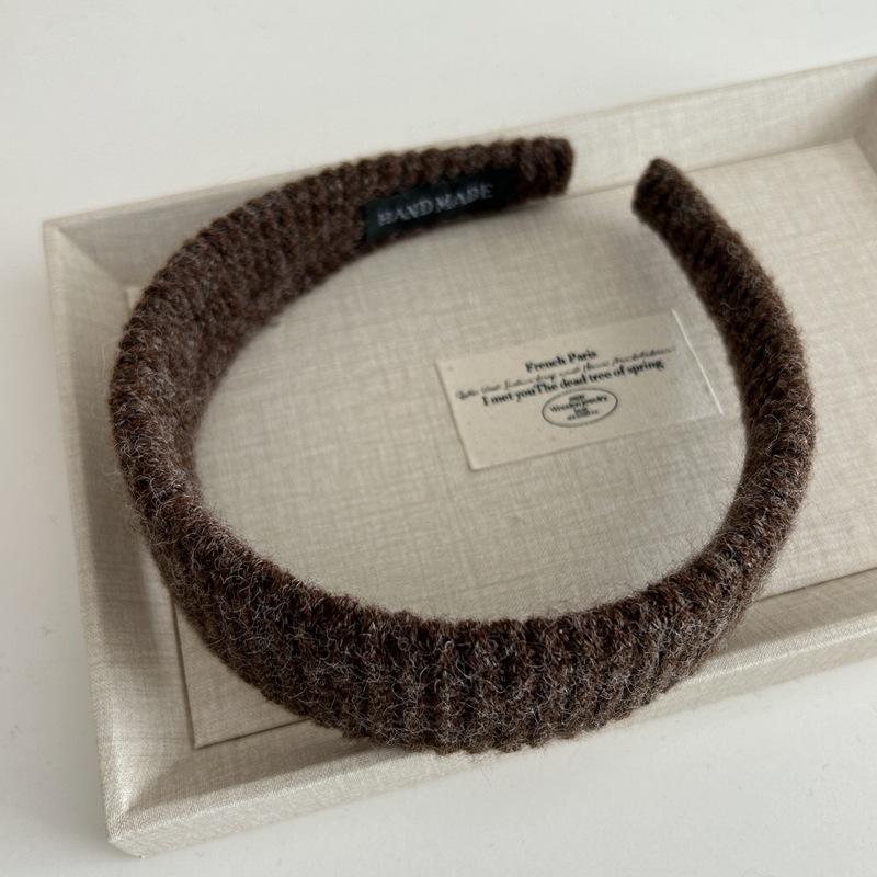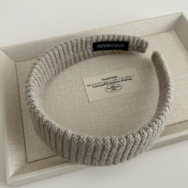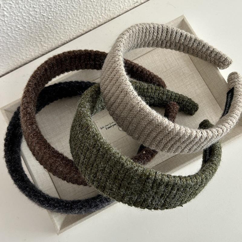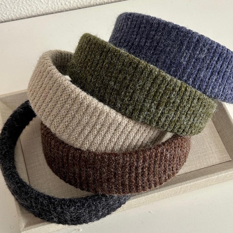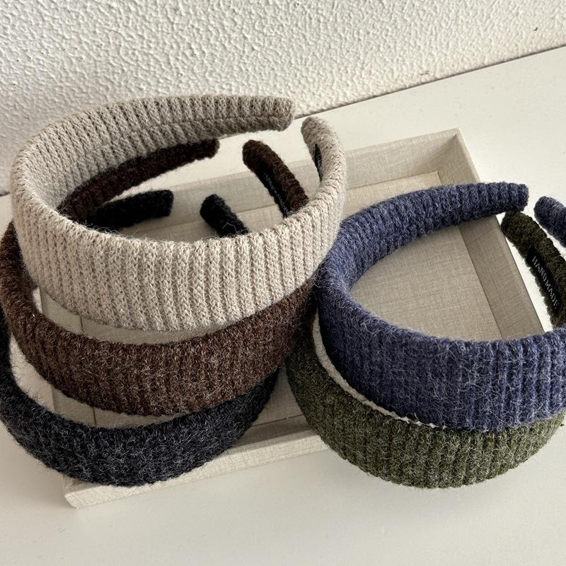 Diadema Ancha de Punto de Color Sólido Retro Coreana Diadema de Felpa Moderna Elegante Pasador de Pelo de Corona Alta Accesorio para el Cabello para Mujeres