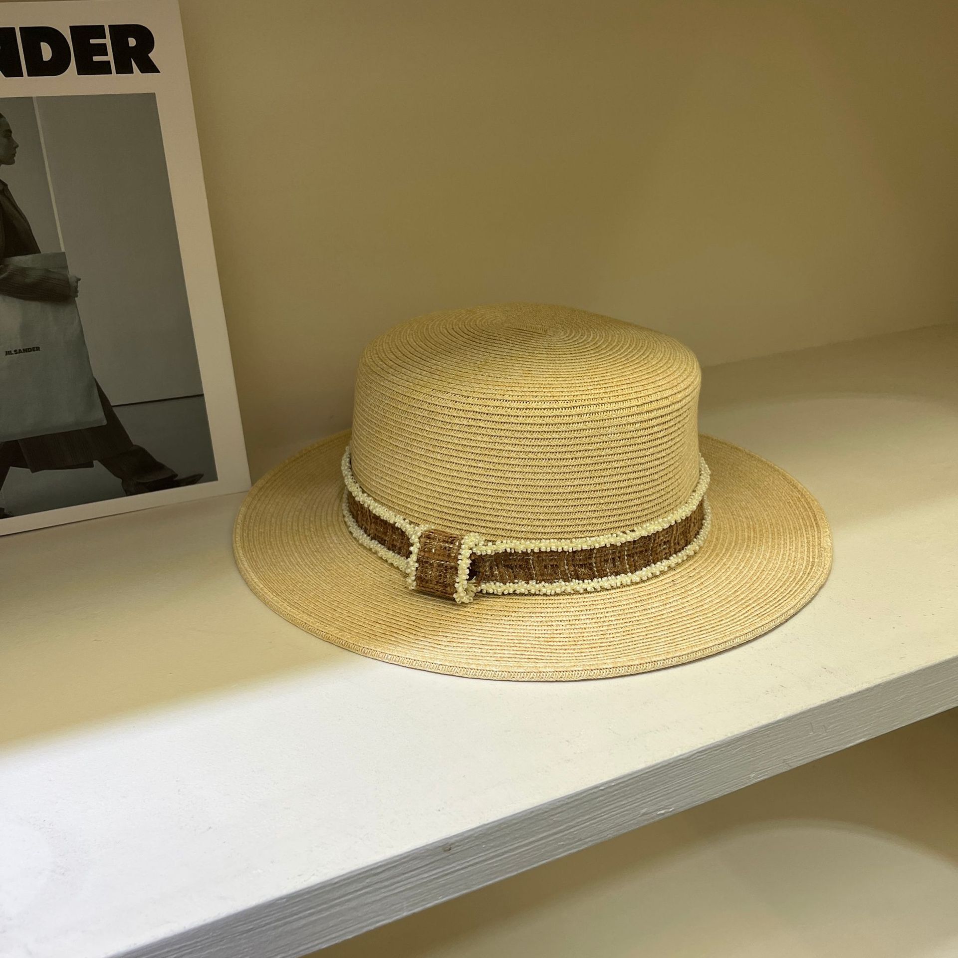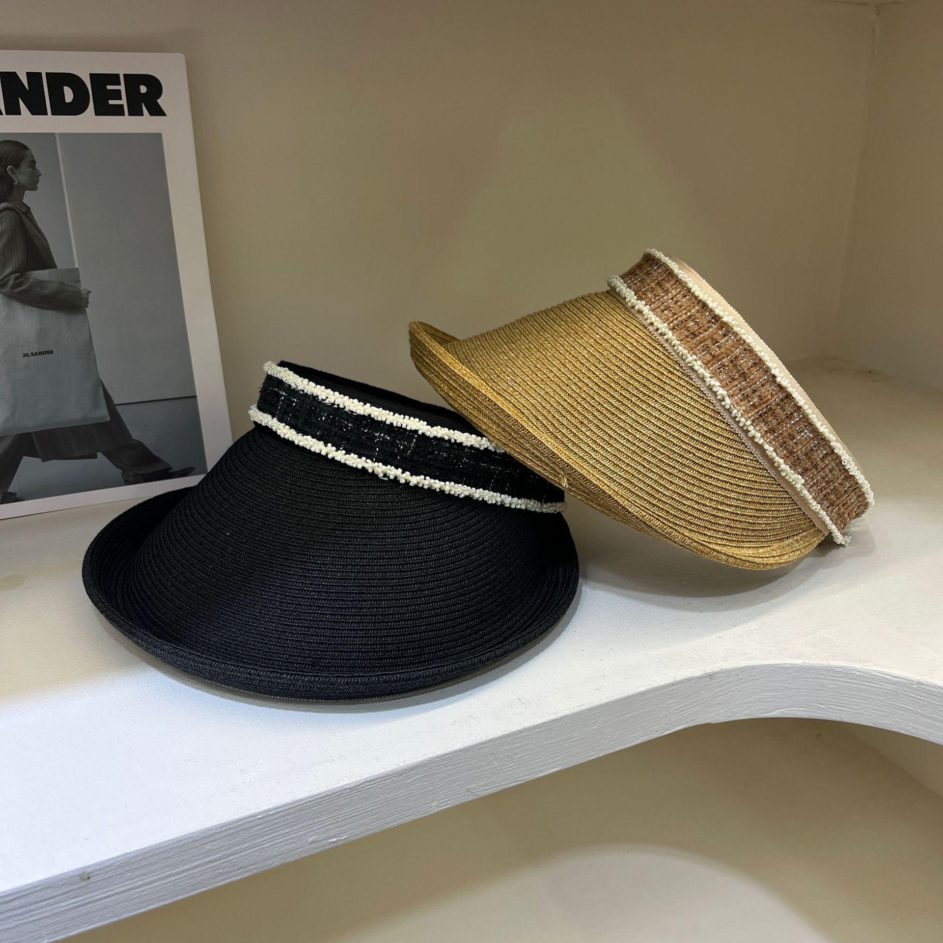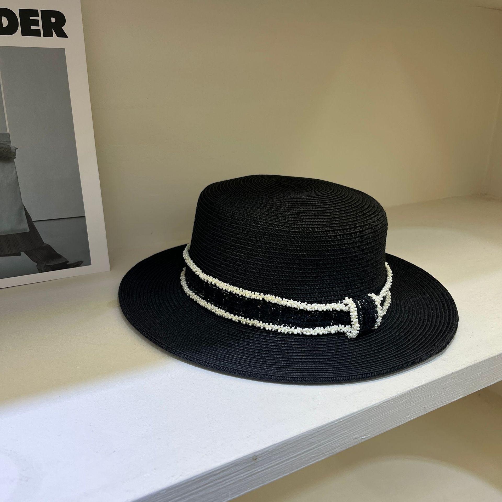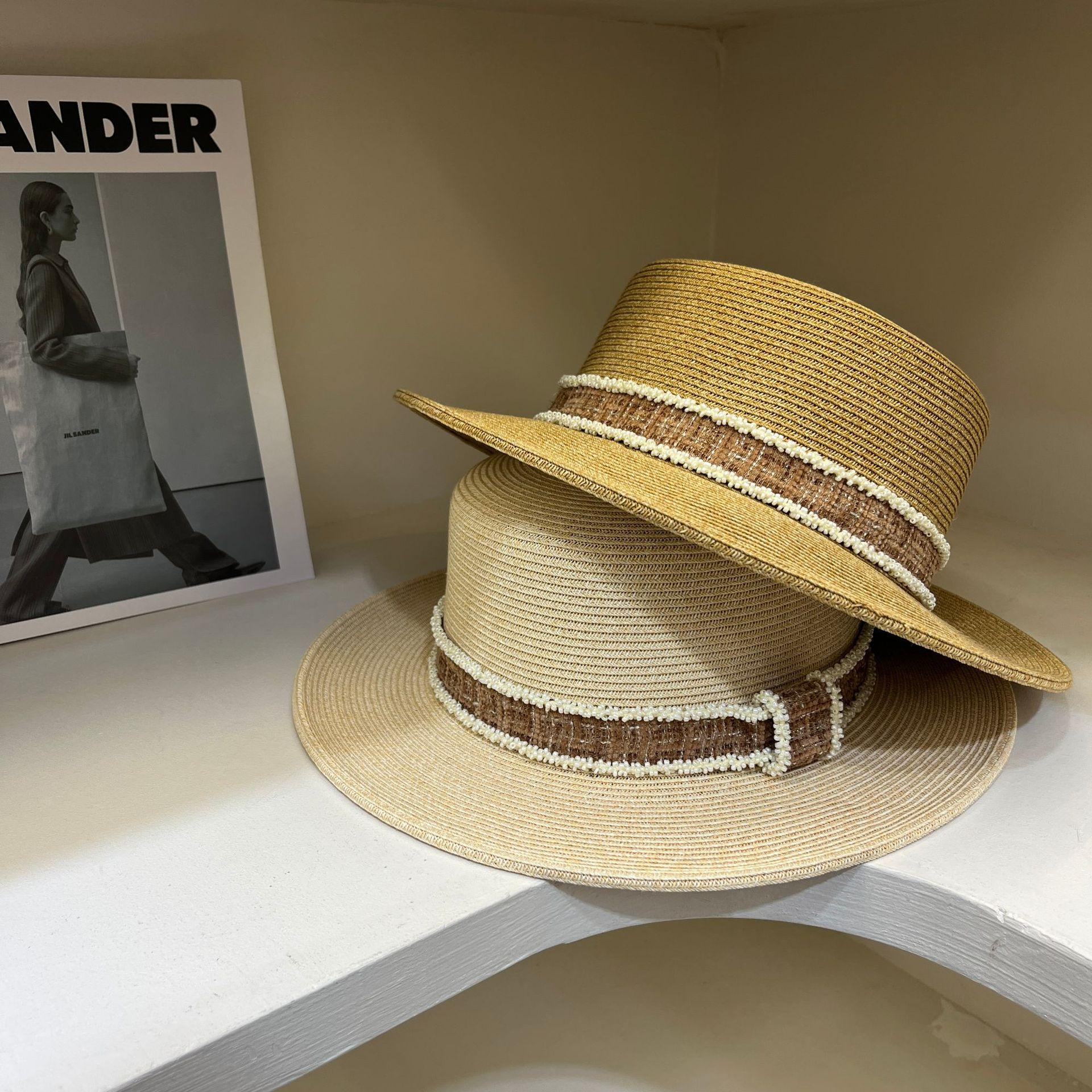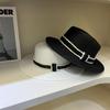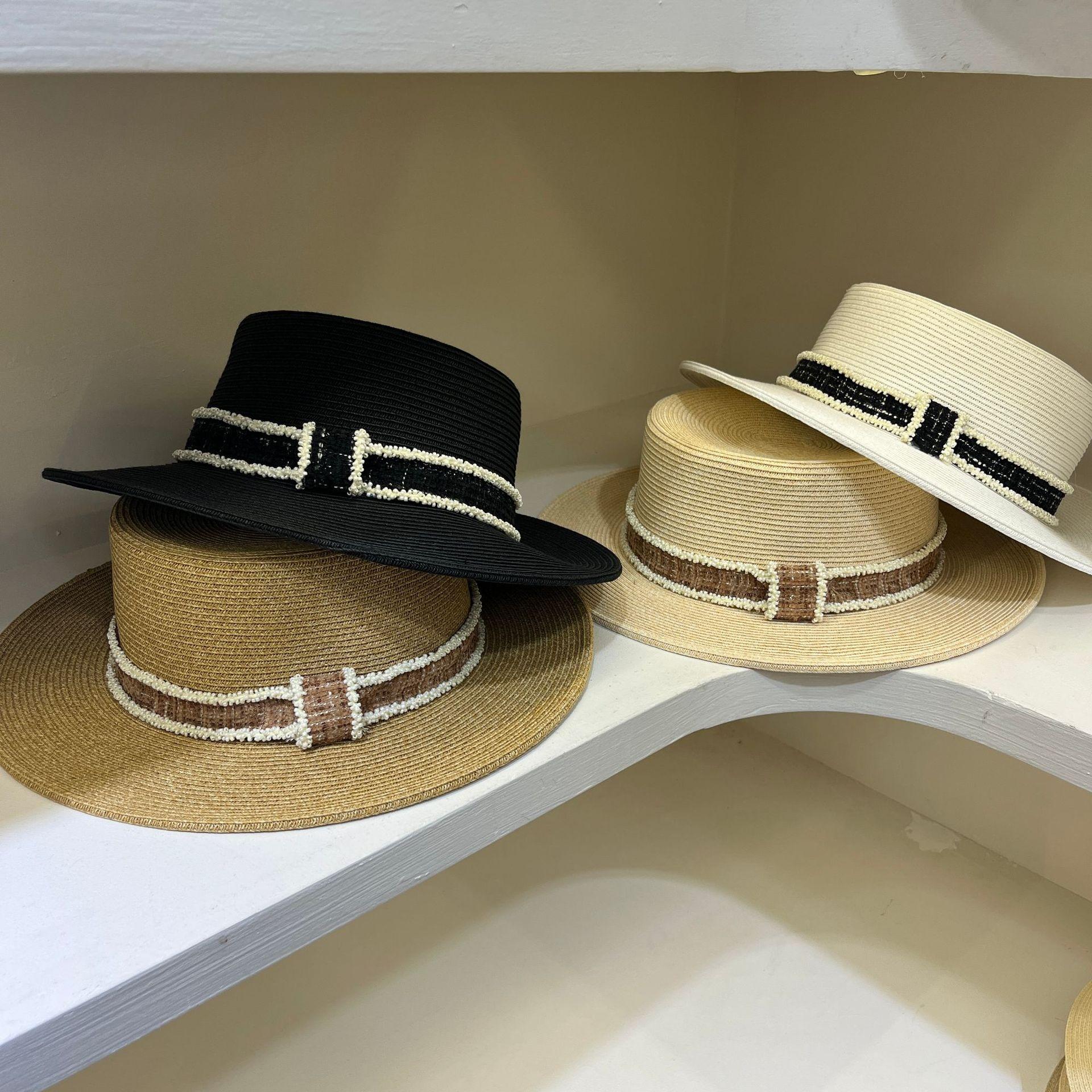 Sombrero de paja de ala ancha y plana para mujer, nuevo estilo, para playa, viajes, protección solar, estilo retro, informal, de verano