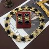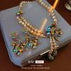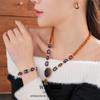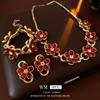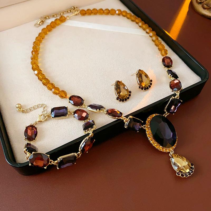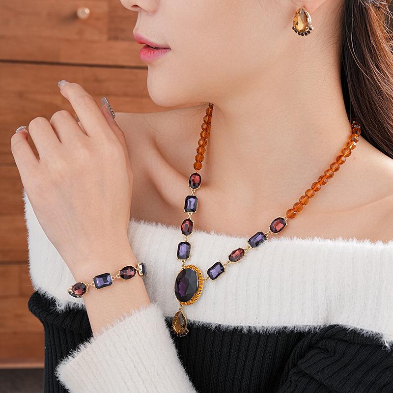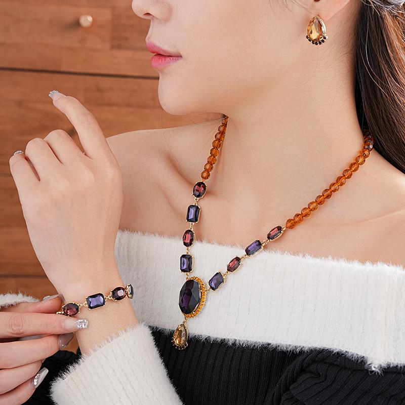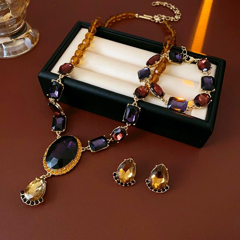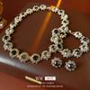 Conjunto de collar medieval vintage con incrustaciones de aguja de plata y pendientes ovalados de diamantes, pulsera de lujo retro accesible de alta gama para mujer.