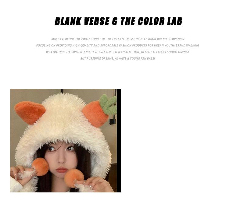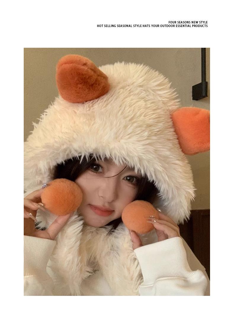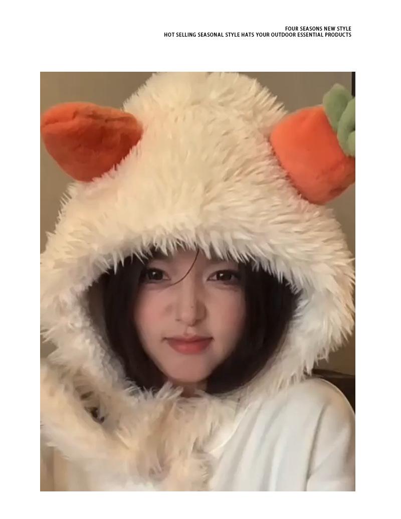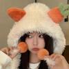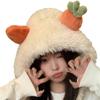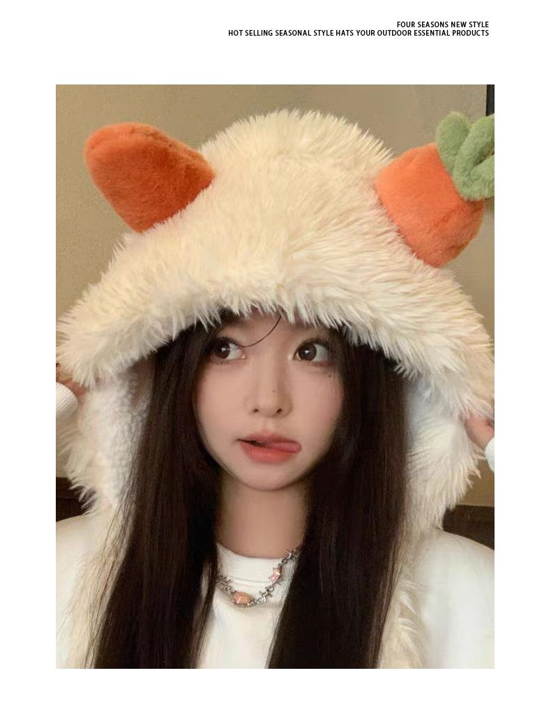 Gorro de zanahoria para mujer, bonito gorro de invierno con pelo de Lei Feng, pequeño, cálido, grueso, resistente al frío, de felpa, con protección para las orejas.