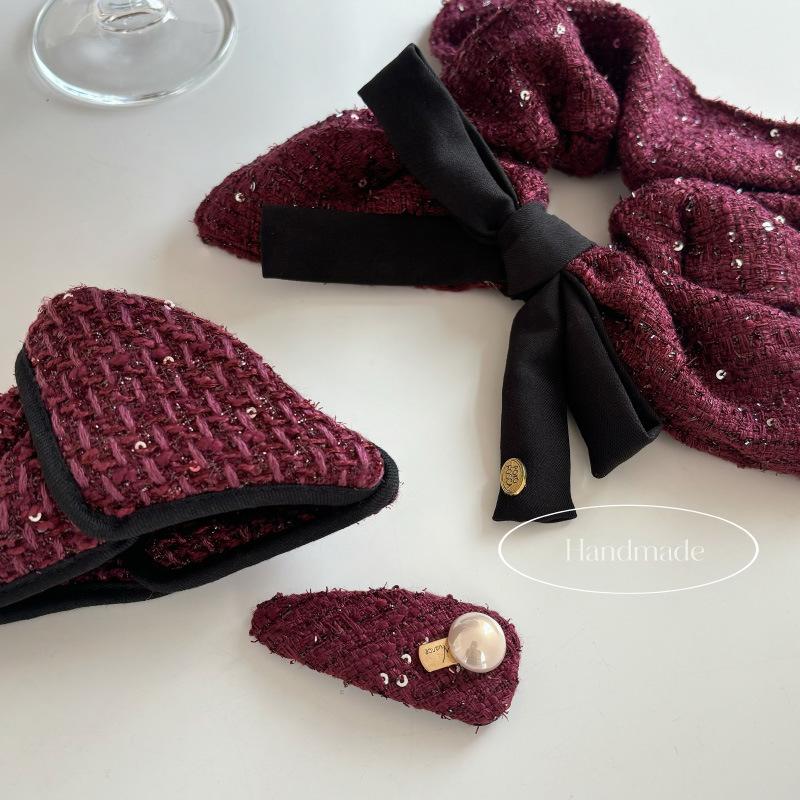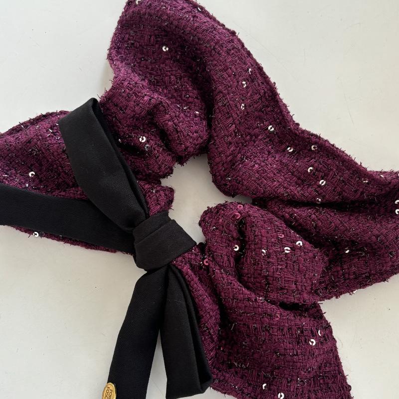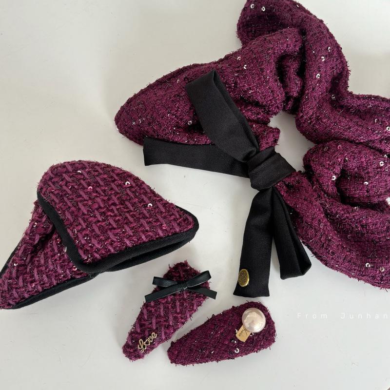 Pinza para el cabello de lana púrpura de alta calidad, cuadrada, de intestino grueso, diadema para el cabello, diadema, lazo, etiqueta dorada, pinza para el cabello, diadema para mujer