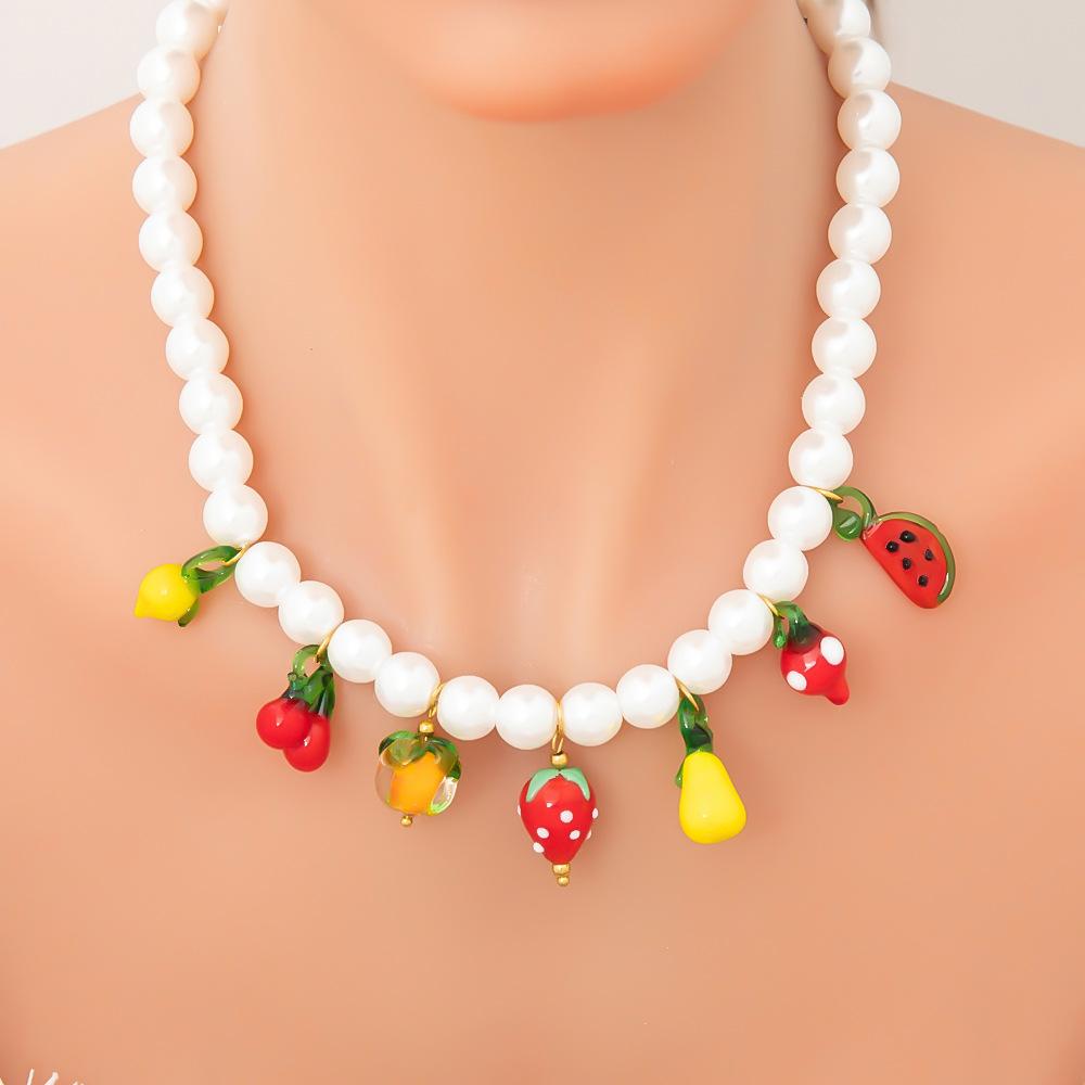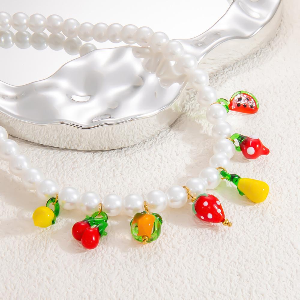 Collar de perlas DIY hecho a mano transfronterizo para mujer, de lujo ligero, de alta gama, con colgante de cristal, cadena para clavícula, joyería de acero inoxidable chapada en oro de 18k