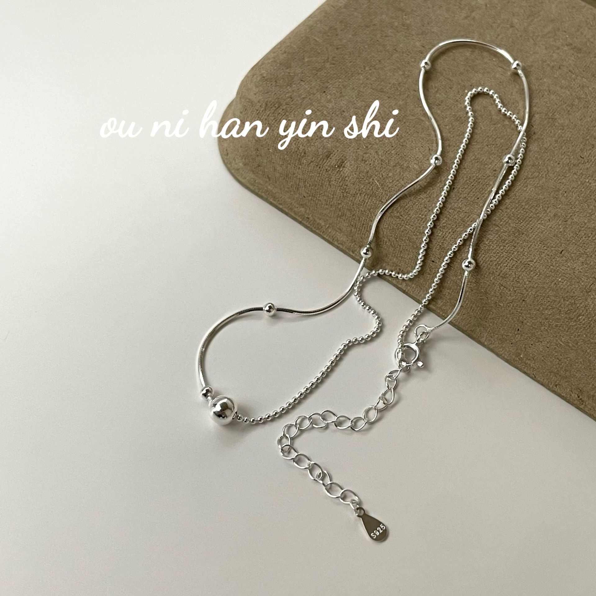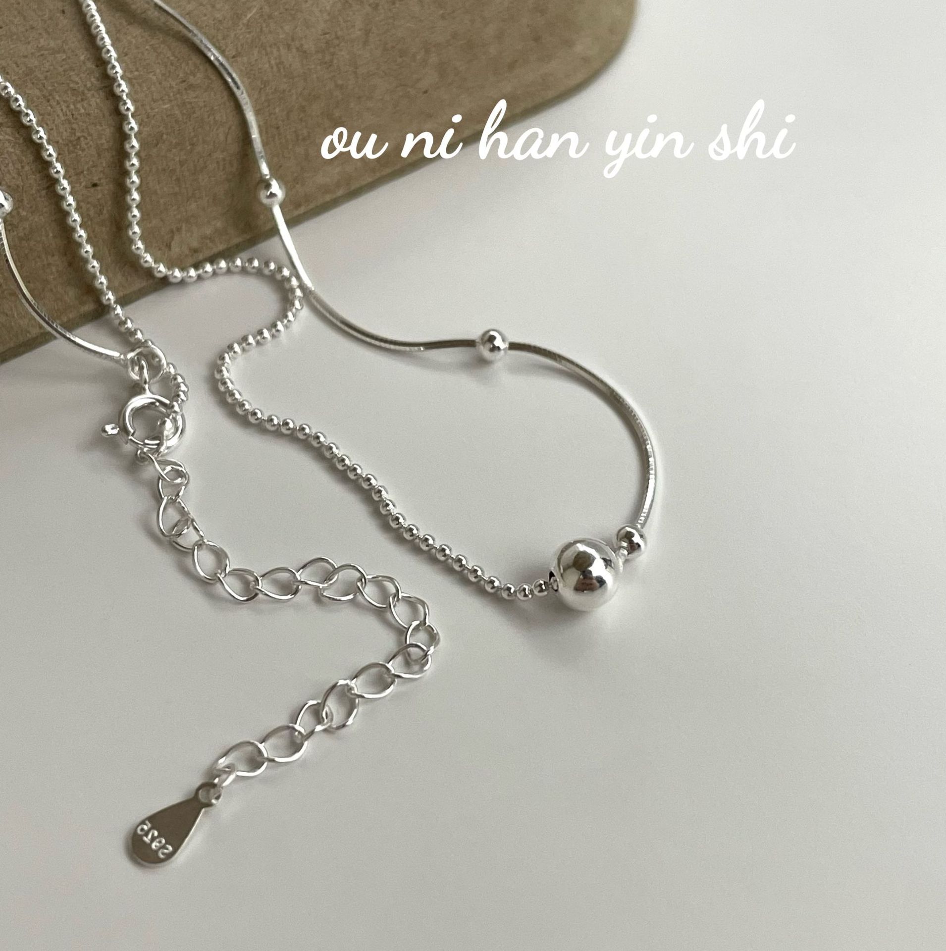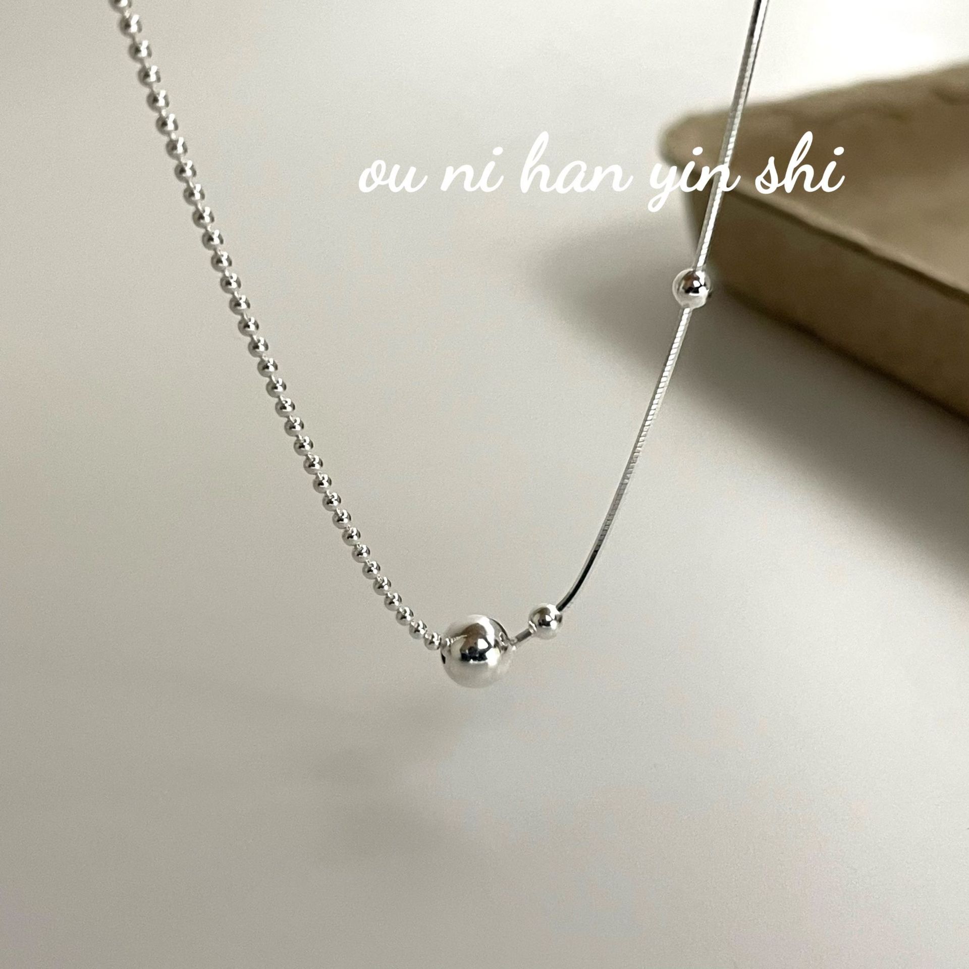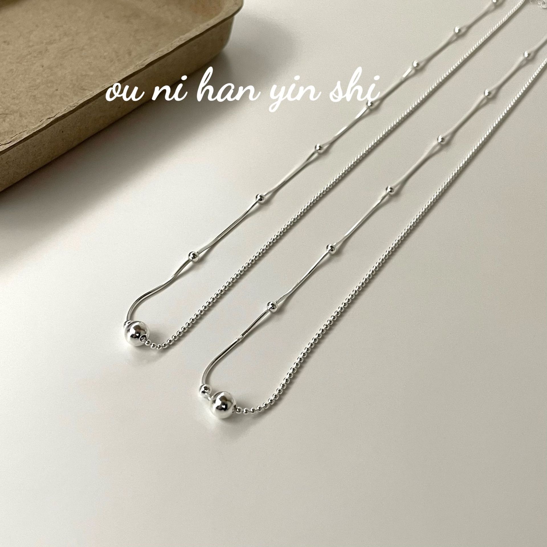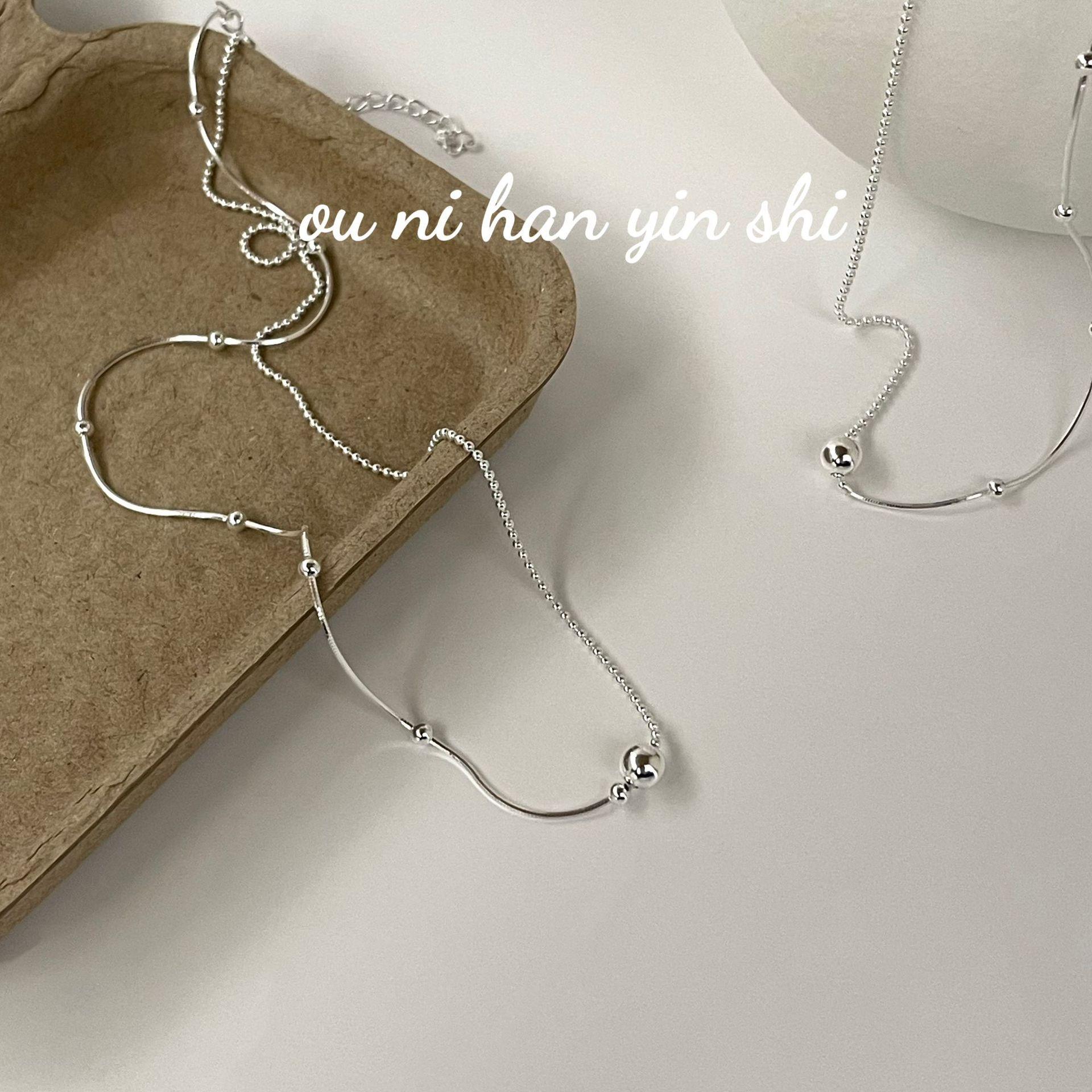 Collar Oni coreano de plata de ley S925, estilo coreano, sencillo, nicho asimétrico, con pequeñas cuentas redondas, cadena de hueso de serpiente, estilo Ins ligero y lujoso para mujer