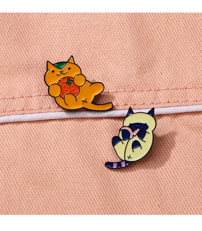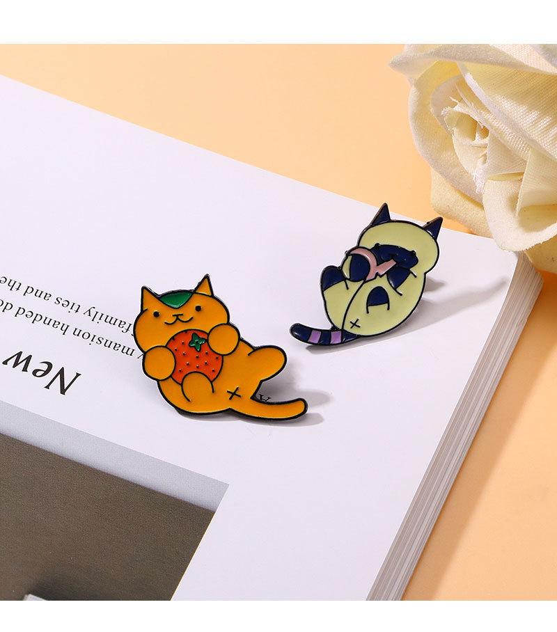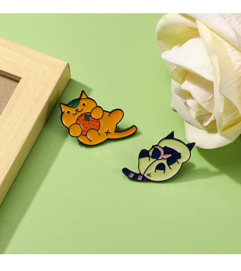 Broche de gato naranja de dibujos animados ropa decoración de mochila escolar ajuste fijo de cintura aleación antiluz insignia de gota de aceite