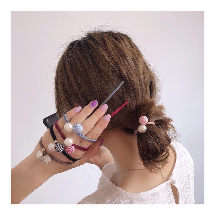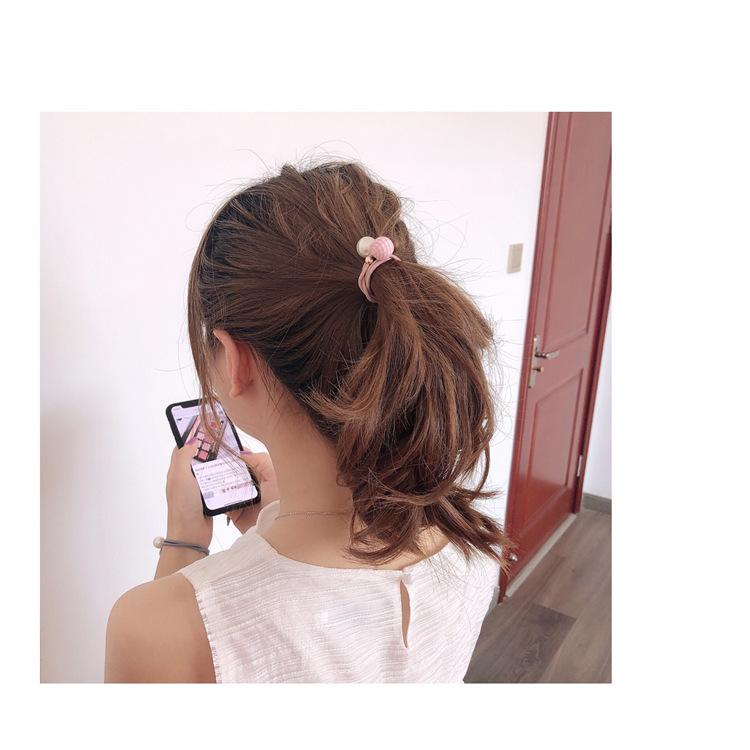 Tocado de estilo coreano fresco Mori para mujer, elegante banda de goma elástica alta para el cabello, nudo de cuerda, anillo para el cabello con cola de caballo de perla
