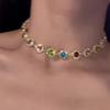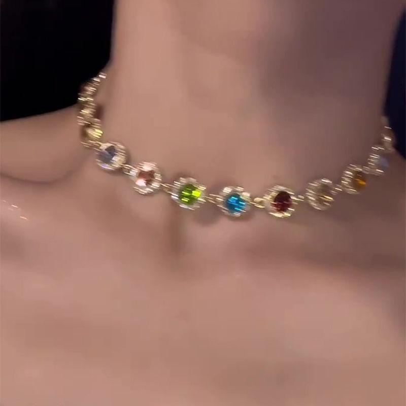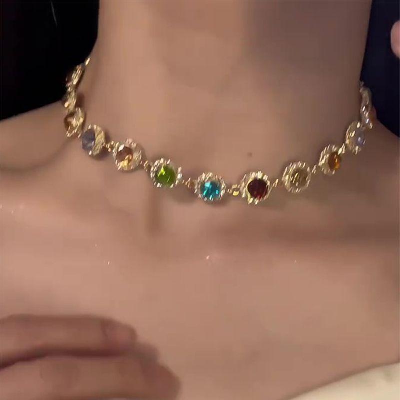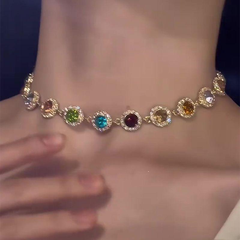 Collar de circonitas de color dopamina 2024, nuevo nicho de primavera y verano, exquisito y dulce accesorio de vestido con cadena de clavícula.