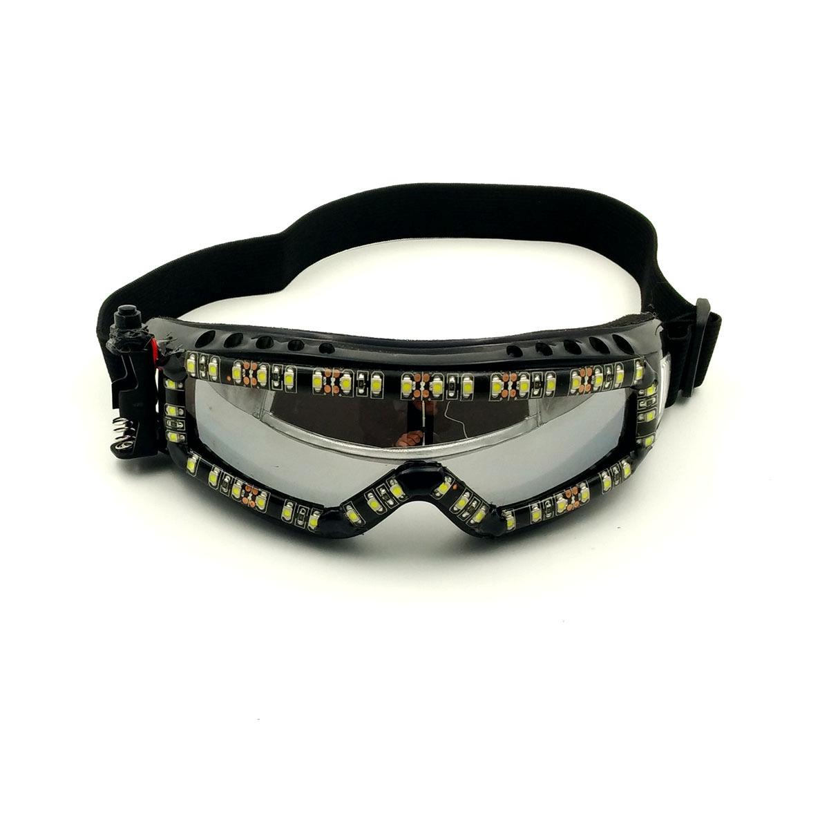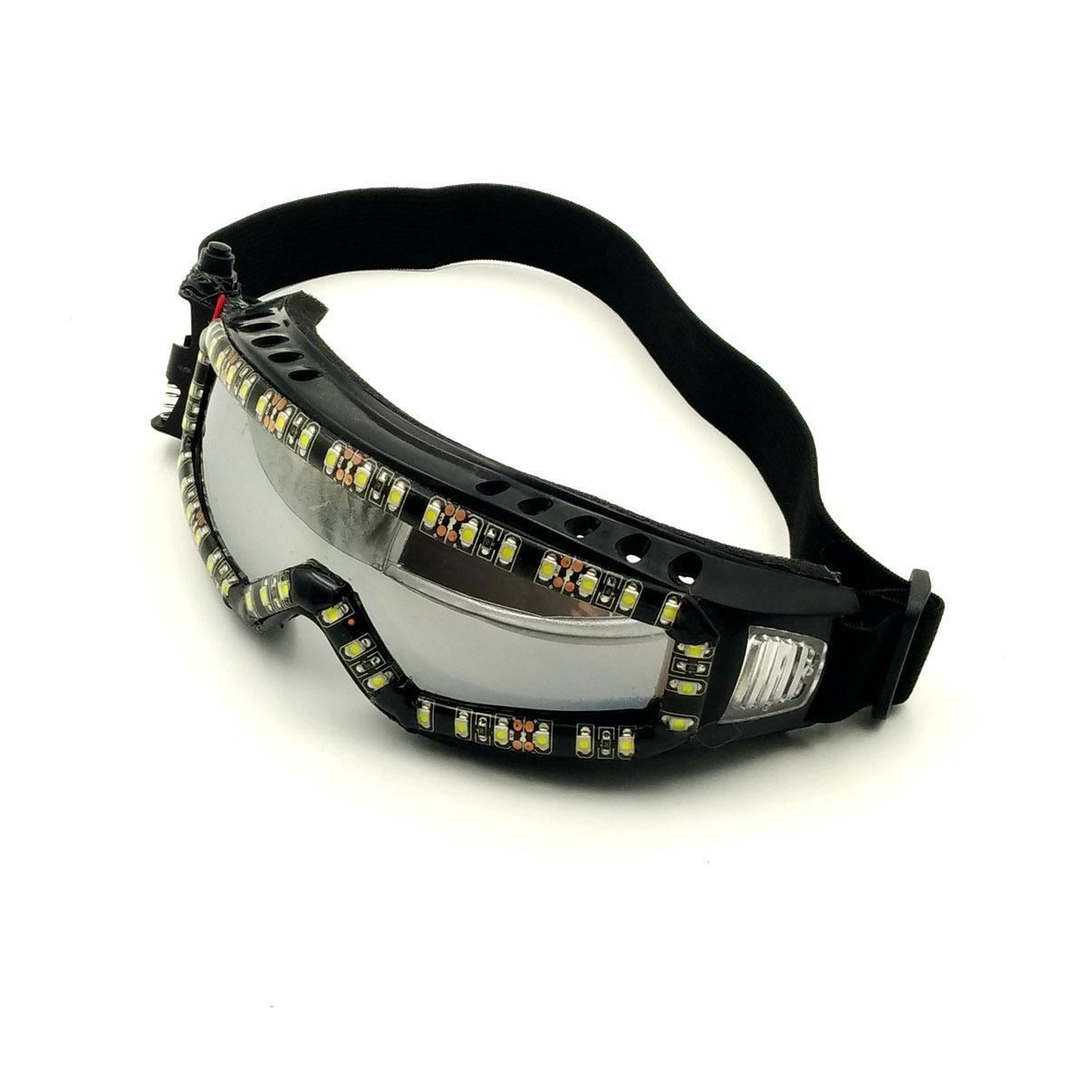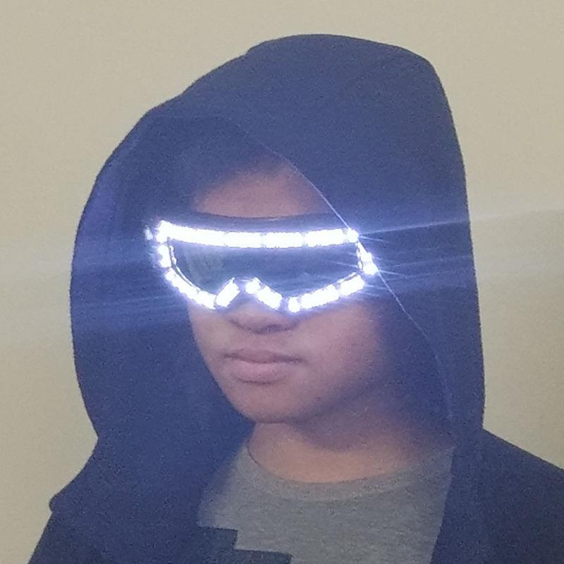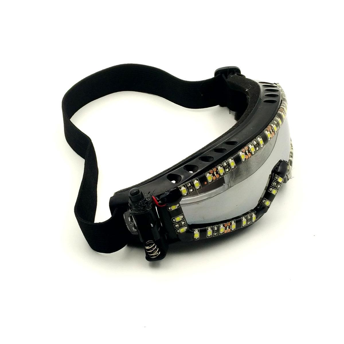 Materiales: montura de PC, luz LED, compartimento para batería, interruptor, banda elástica