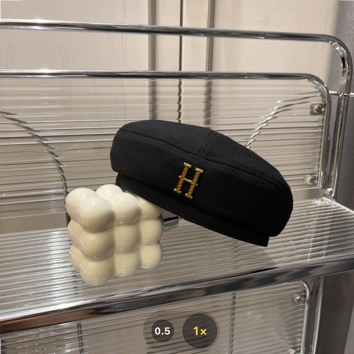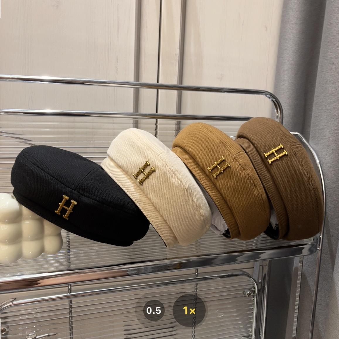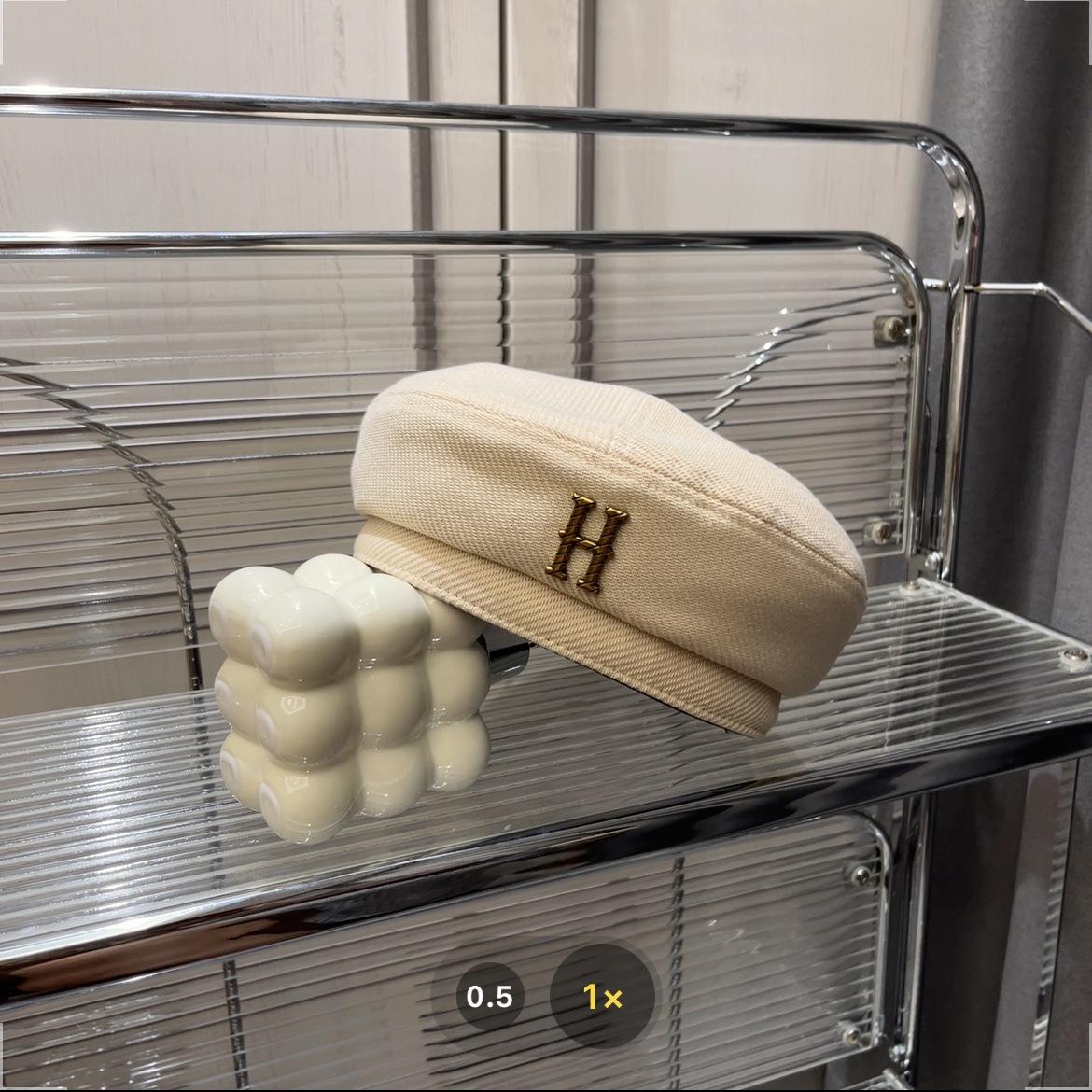 Boina Blanca Pequeña Versátil Estilo Coreano Muestra Rostro Celebridad de Internet Literaria Letra H Moda Versátil Sombrero de Pintor con Letra