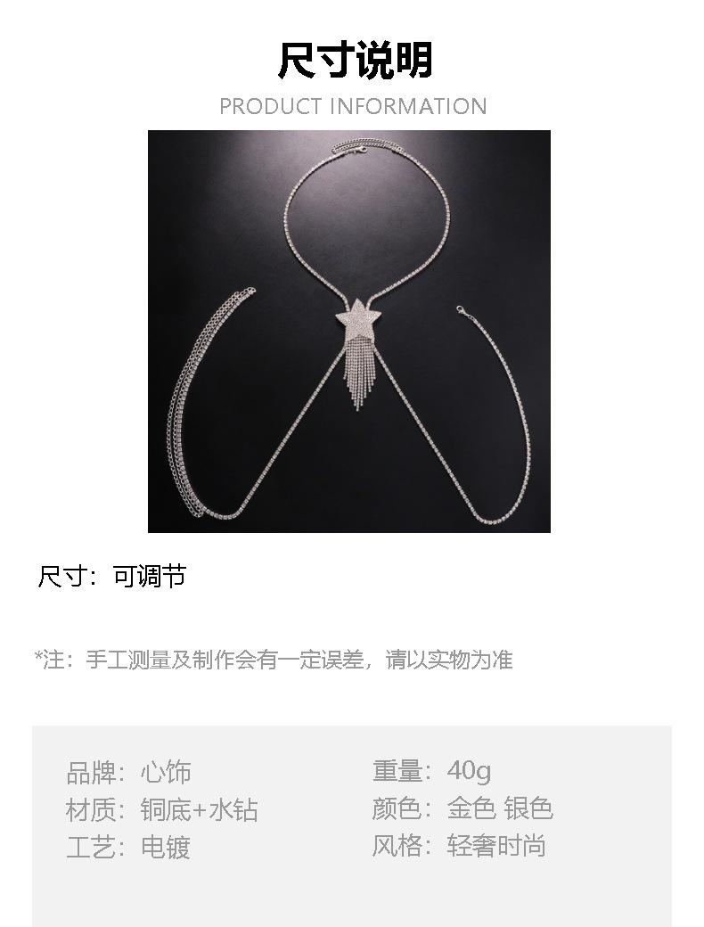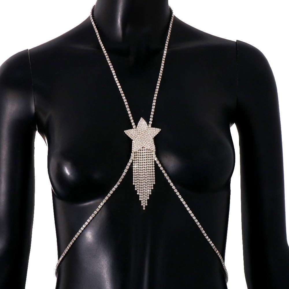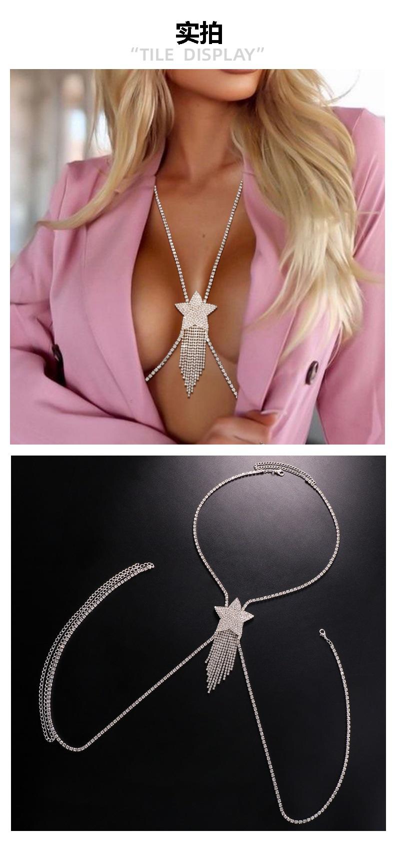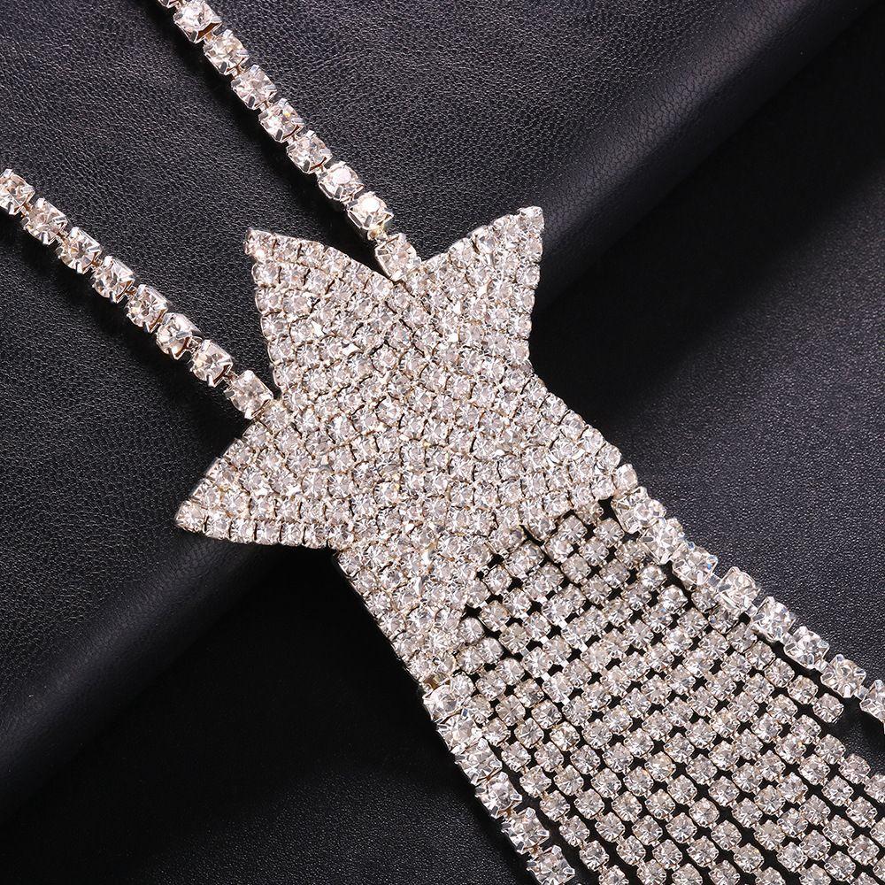 Cadena de pecho con borlas de estrella de cinco puntas, transfronteriza, brillante y sexy, para discoteca, accesorios de diamantes de imitación