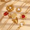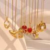 Collar vintage de nicho con temperamento europeo y americano, chapado en acero inoxidable, oro de 18 quilates, ágata roja, flor de amor, pez diablo, collar femenino