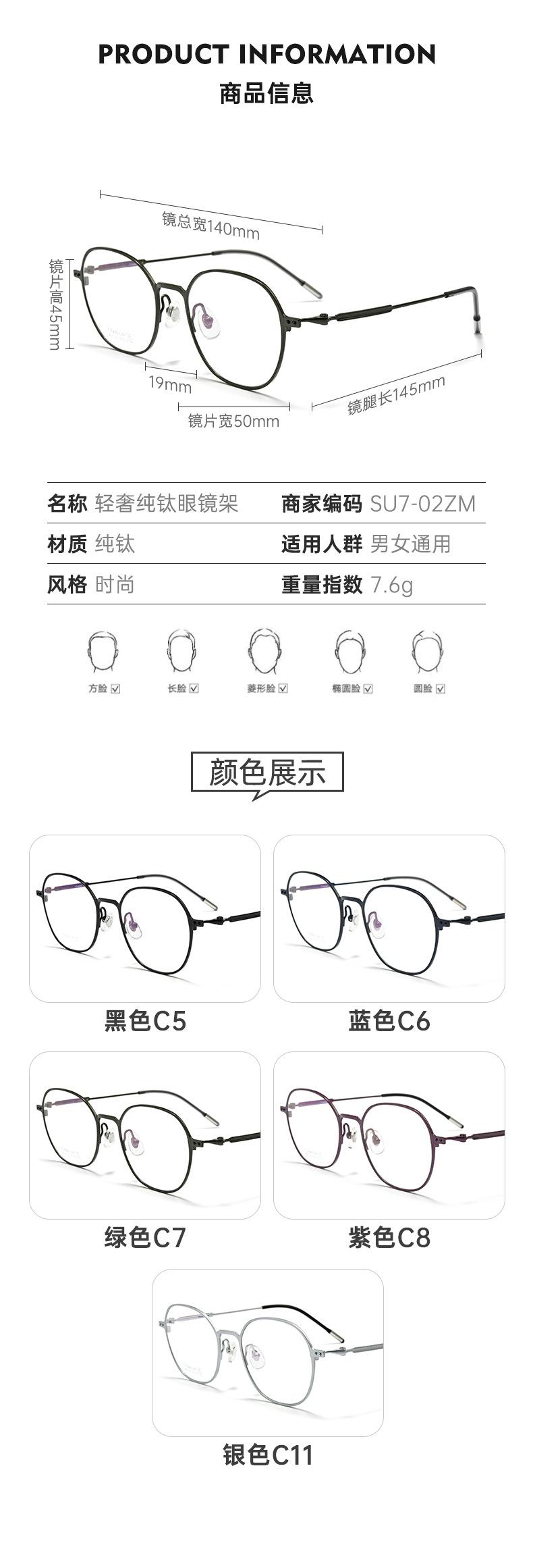 Gafas Baishifen SU7-02ZM Shenzhen de titanio puro para mujer, montura ultraligera y fina de 7 g con montura redonda retro para miopía.