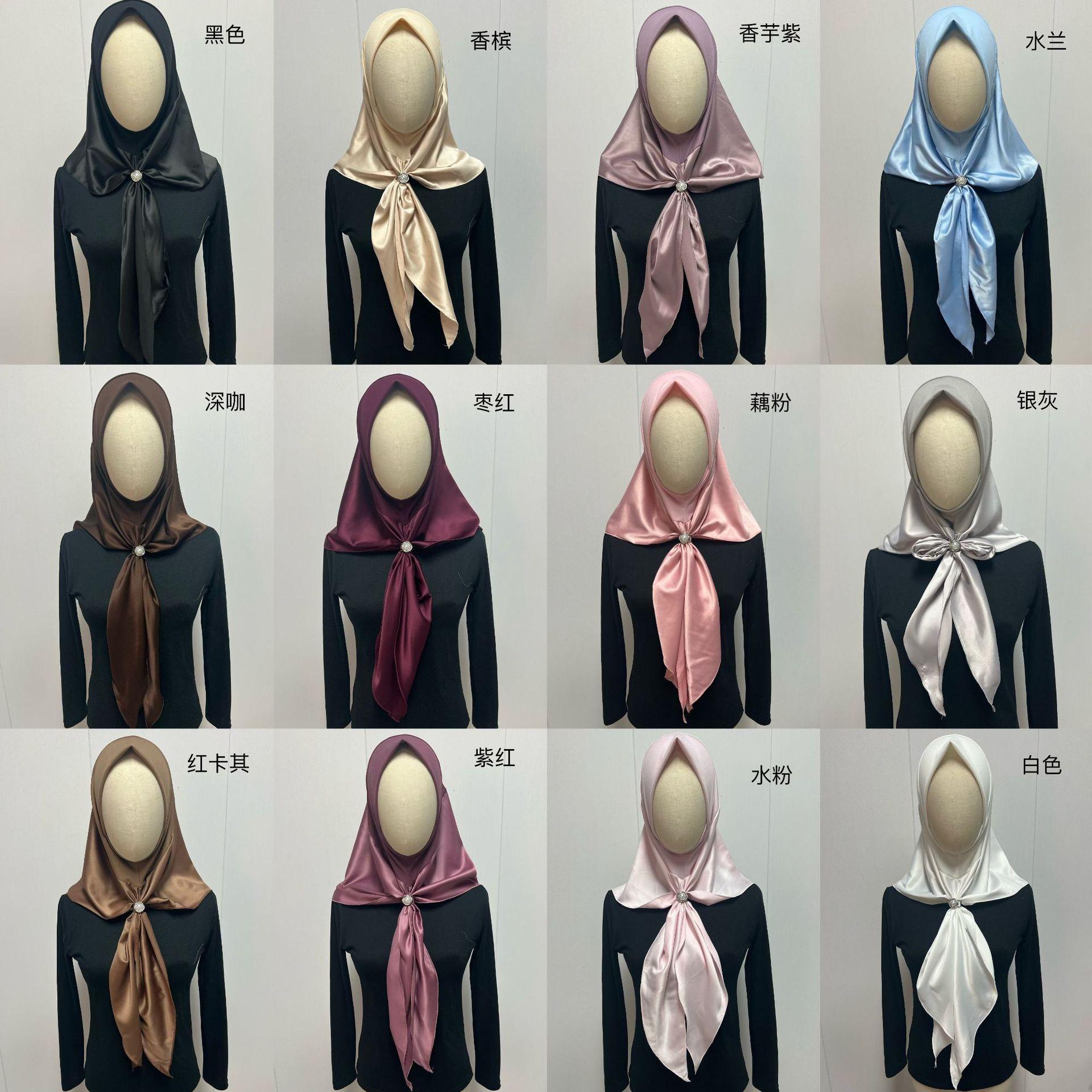 Pañuelo de Cabeza Malayo Nuevo Transfronterizo Sombrero Étnico para Mujer Satén Imitación Tencel Camisa Triangular W031 Gasa de la Nacionalidad Hui