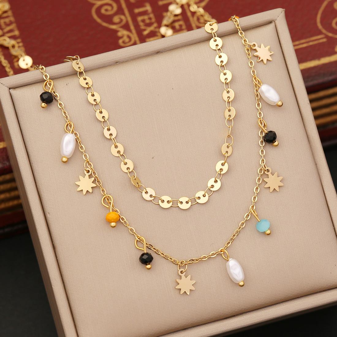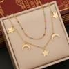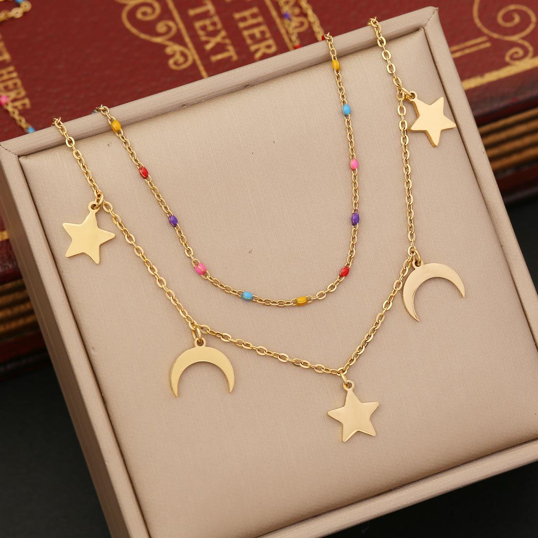 Collar multicapa con forma de árbol de la vida, cruz, amor, cadena de clavícula, estrella, luna, collar de acero inoxidable N1068