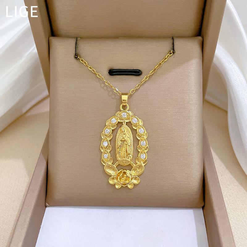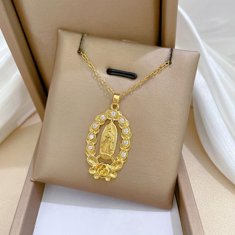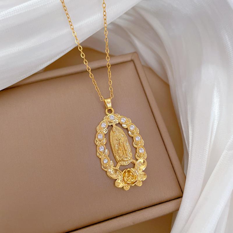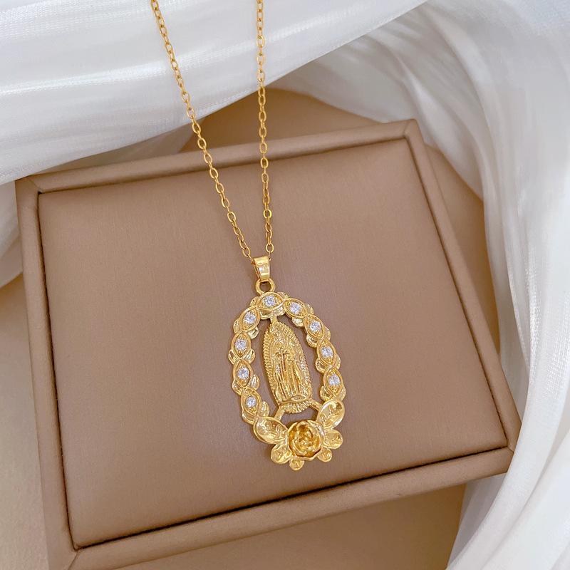 [Acero titanio] Elegante collar de diamantes con figura de rosa, ligero y lujoso, cadena de clavícula para mujer, cadena de acero titanio.