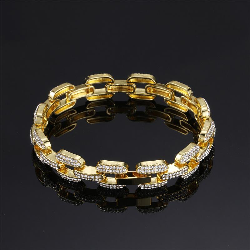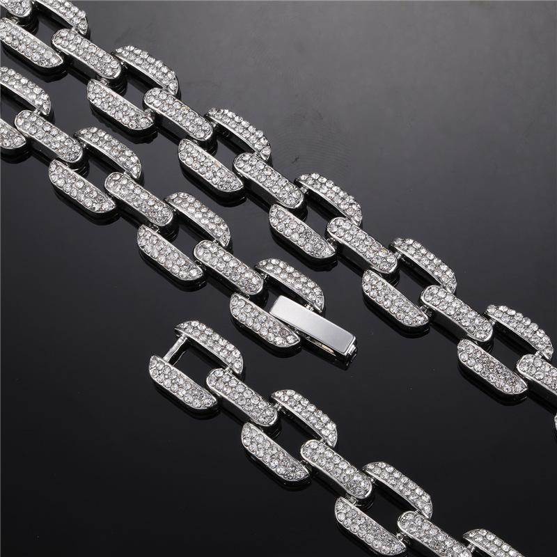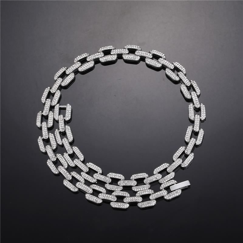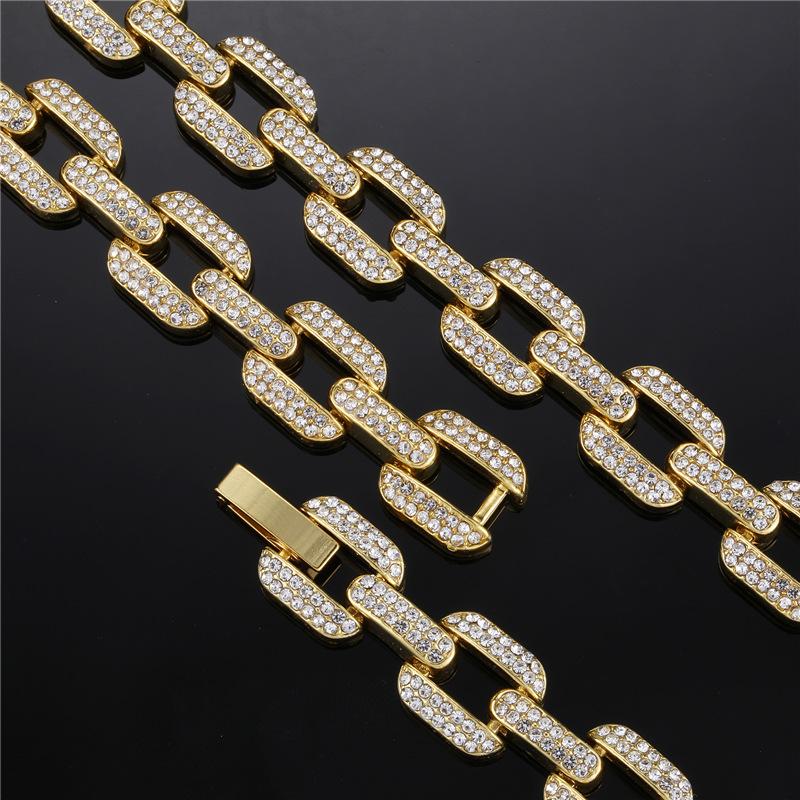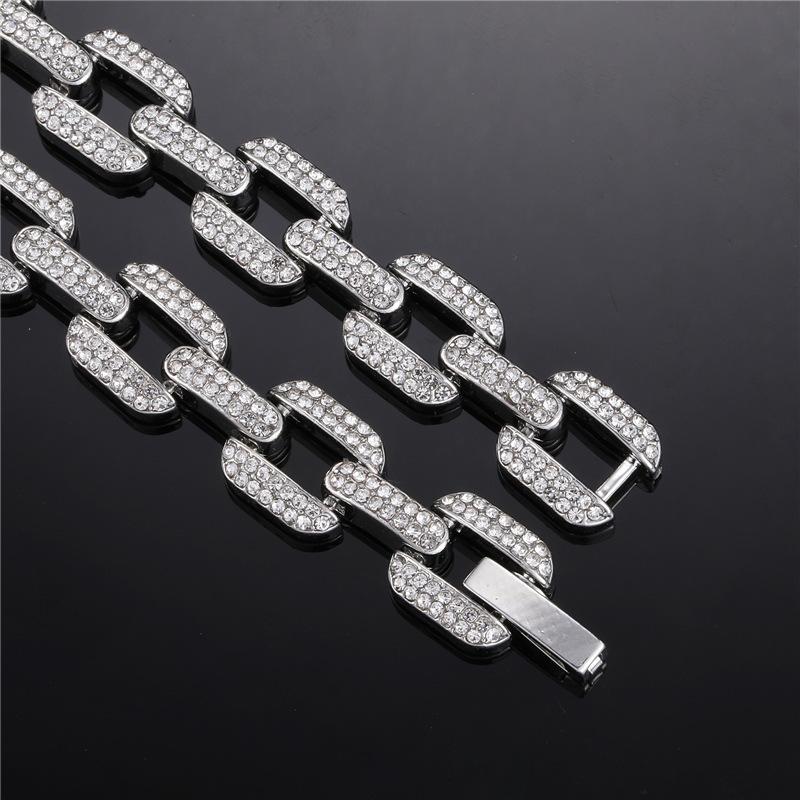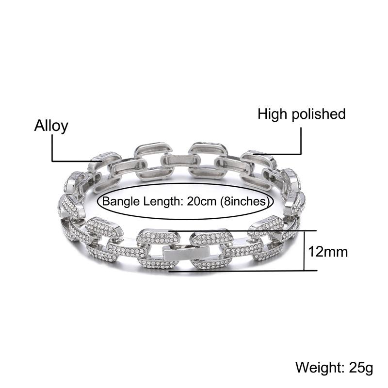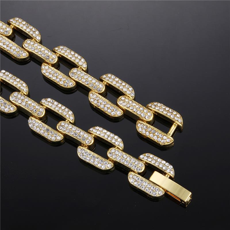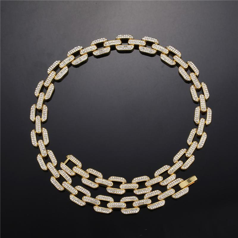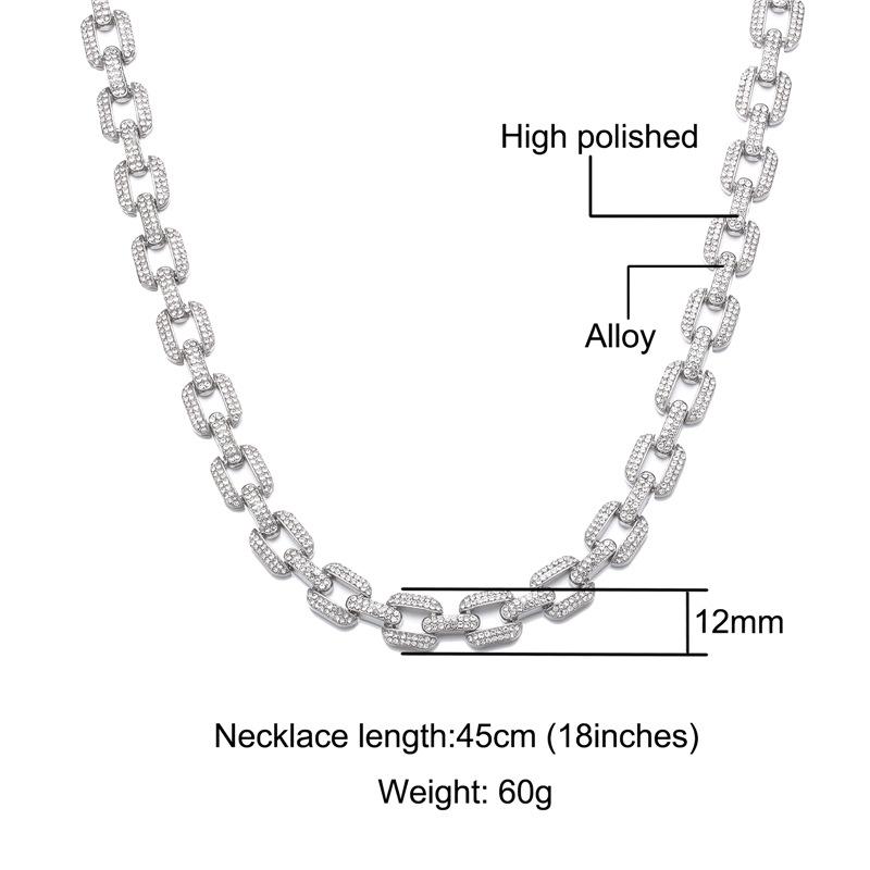 Pulsera collar cadena cubana de aleación europea y americana con diamantes completos de 12 mm geométrica para hombre, marca de moda, accesorios de personalidad hip-hop