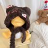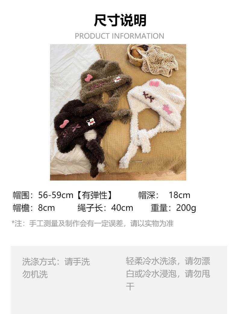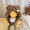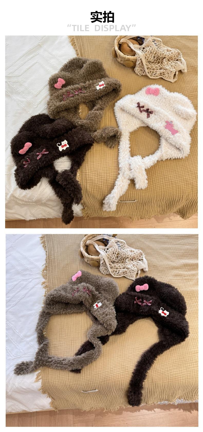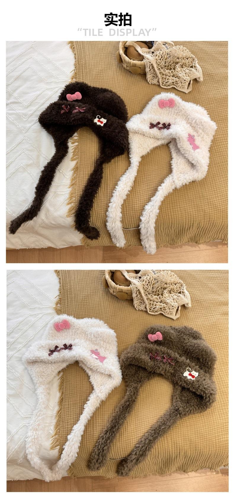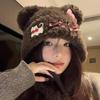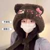 Lindo Sombrero de Oso con Orejas de Gato y Lazo, Sombrero Esponjoso para Mujer para Otoño e Invierno, Cálido, Protección para las Orejas, Sombrero Lei Feng, Sombrero que Muestra la Cara