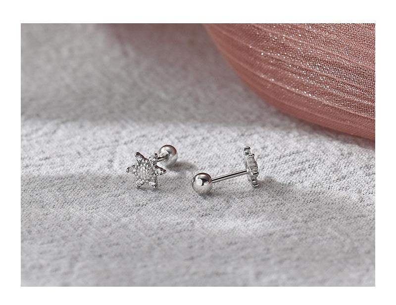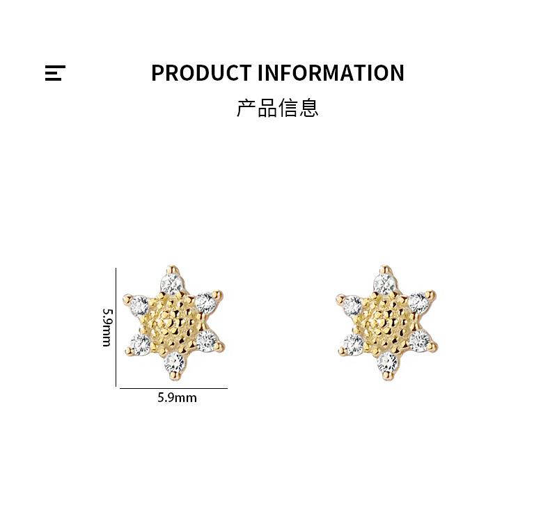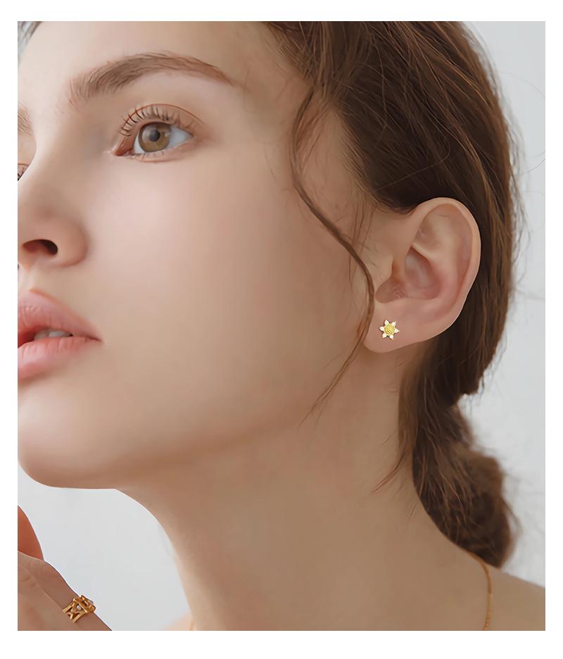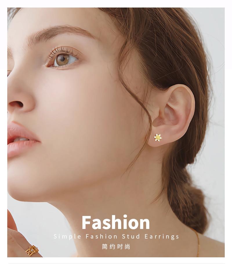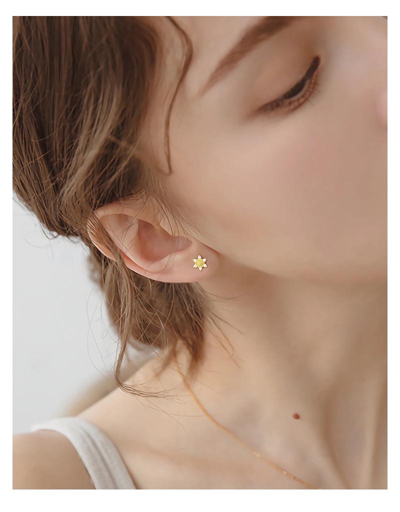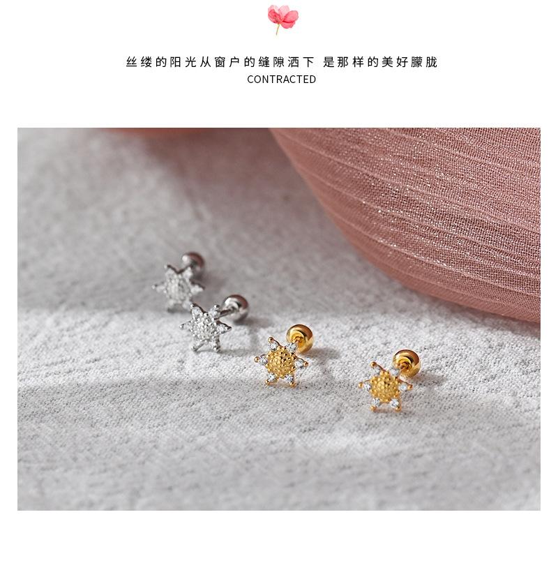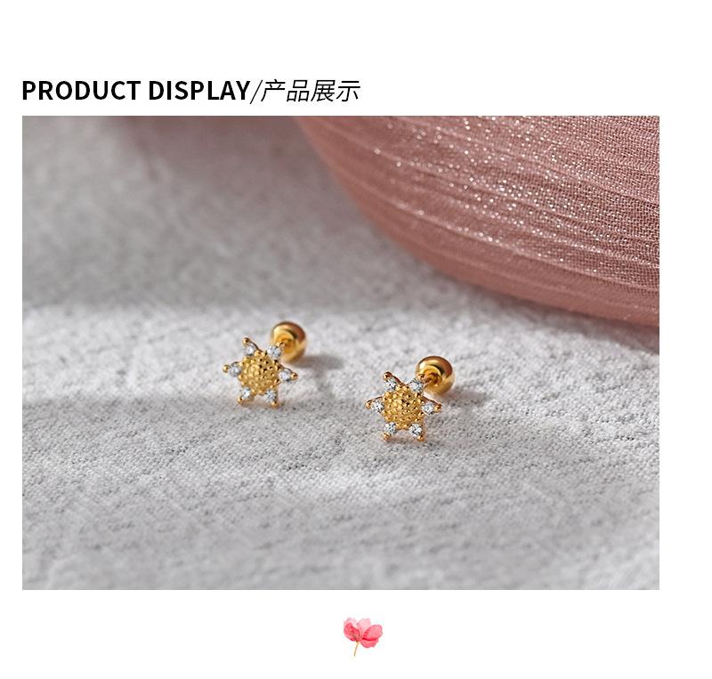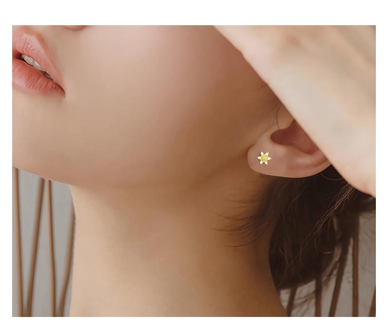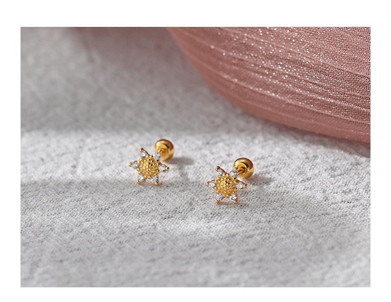 Clavo de oreja de plata S925 para mujer, diseño de girasol, diamante, sencillo, a la moda, combina con todo, con orificio para la oreja, tornillo E02650