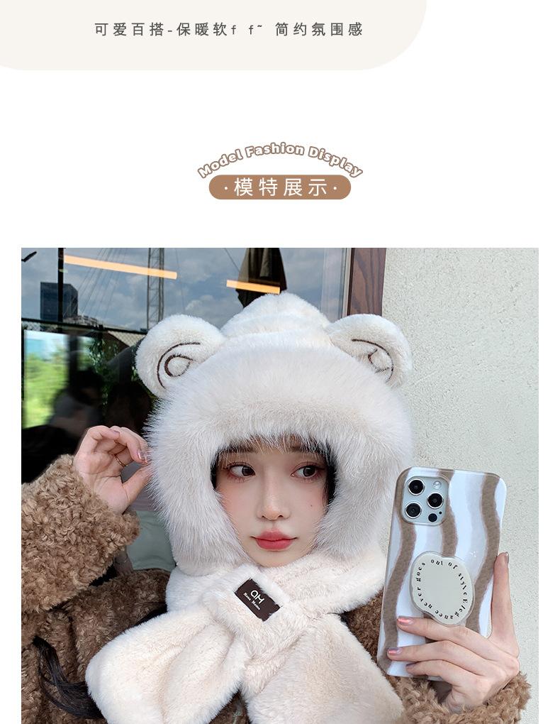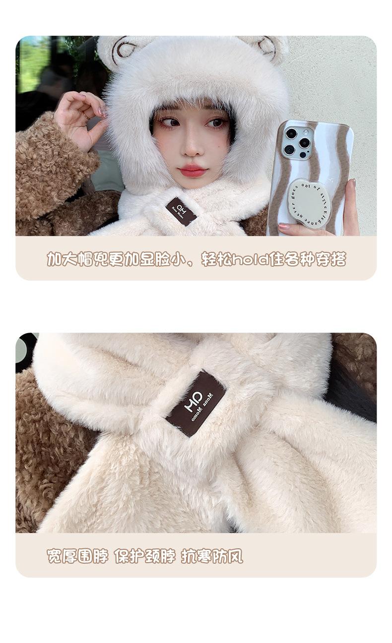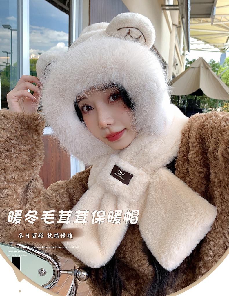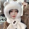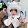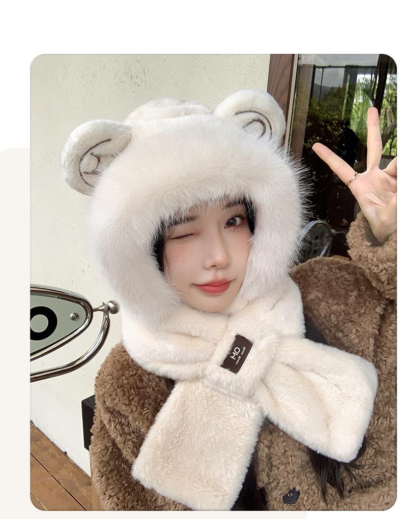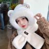Oso Blanco Conjunto de Tres Piezas Sombrero Bufanda Bufanda de Una Pieza Cálido a Prueba de Frío para Mujer Invierno Engrosado Sombrero Esponjoso