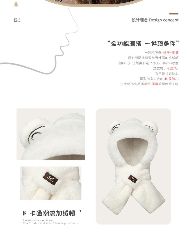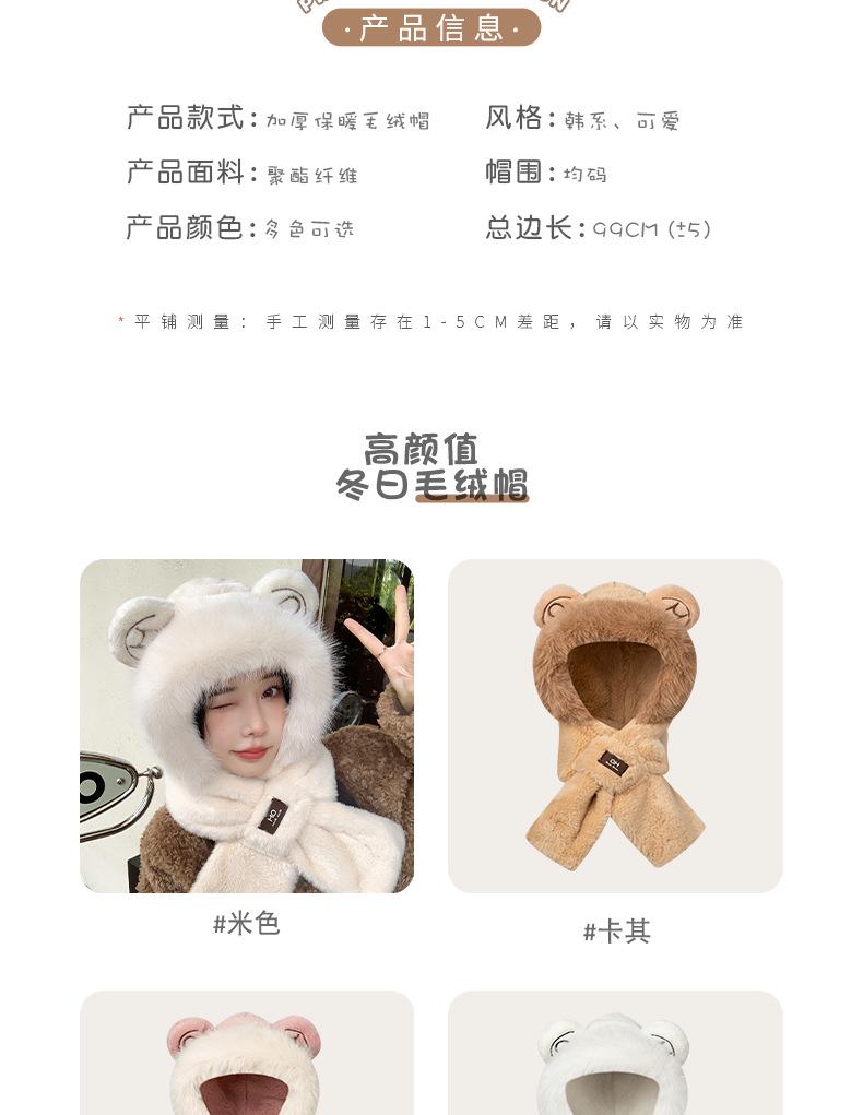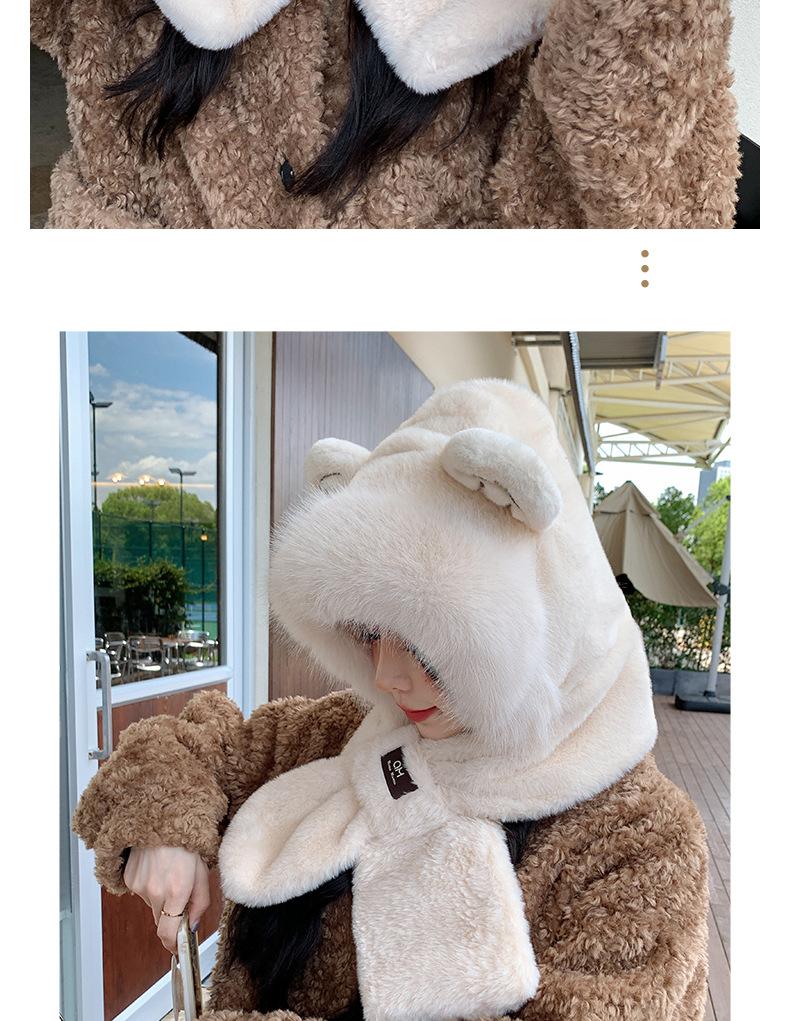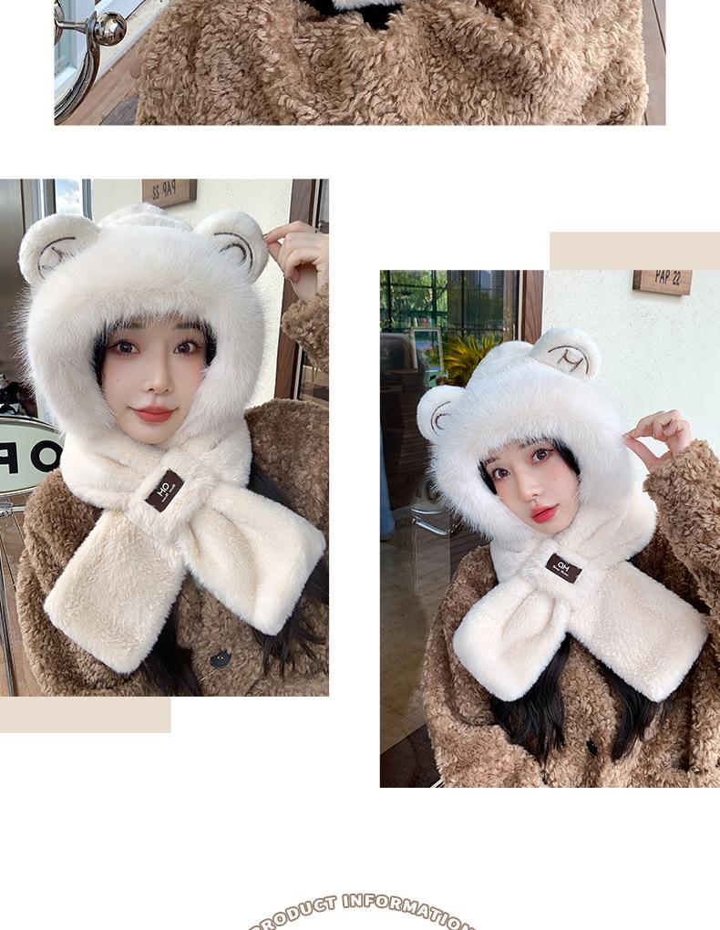 Oso Blanco Conjunto de Tres Piezas Sombrero Bufanda Bufanda de Una Pieza Cálido a Prueba de Frío para Mujer Invierno Engrosado Sombrero Esponjoso