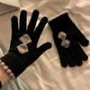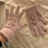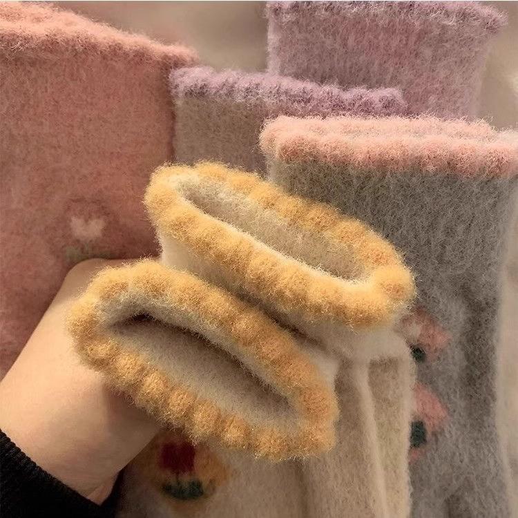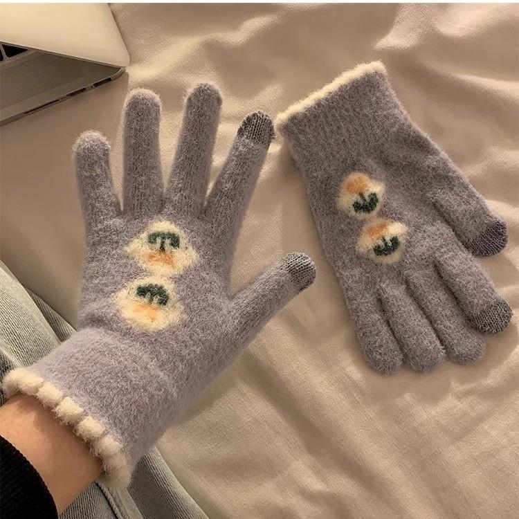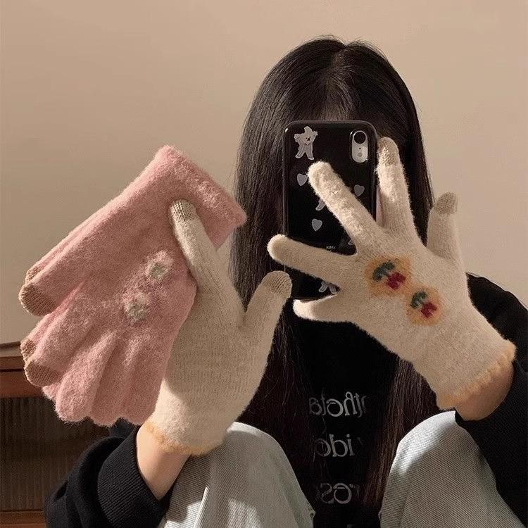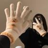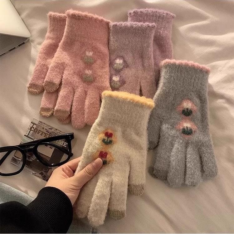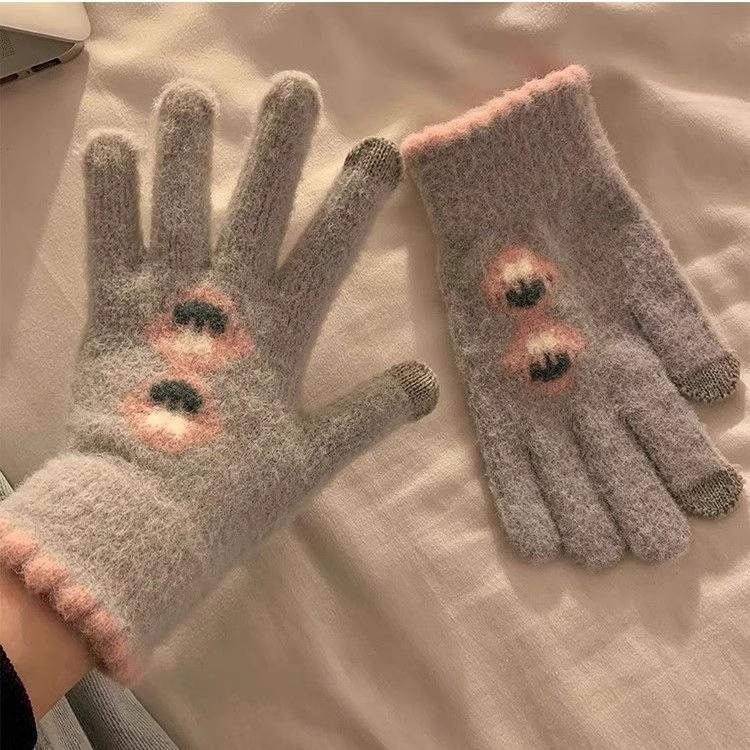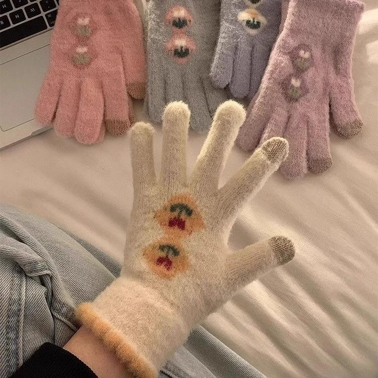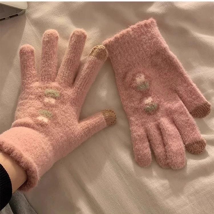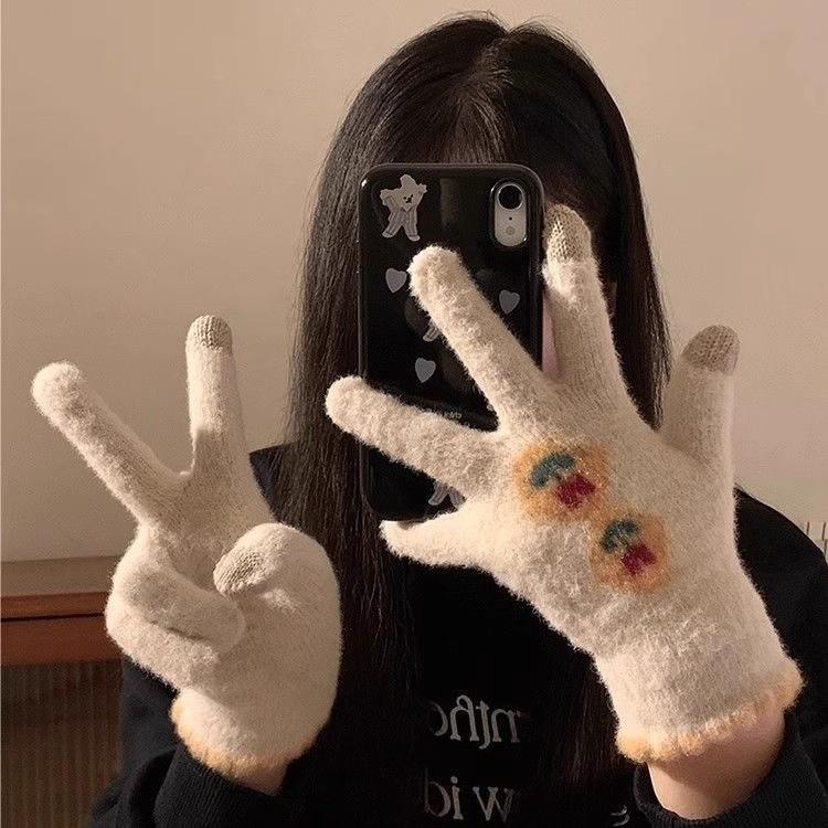 Guantes de punto de felpa con cinco dedos para mujer, bonitos y cálidos, con forro polar, para invierno, para estudiantes, ciclismo y a prueba de frío.