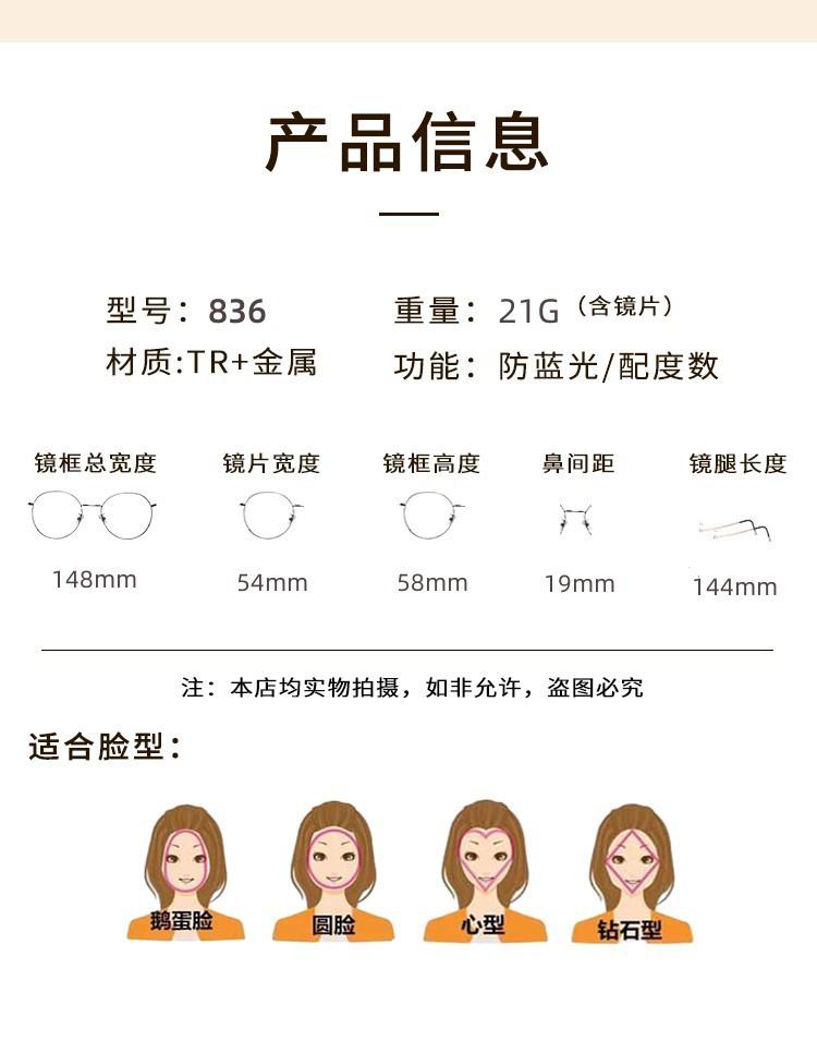 Gafas de miopía en línea para mujeres con montura cuadrada, ligera y de cara lisa, para ojos pequeños, cara lisa y delgada.