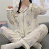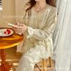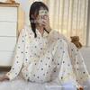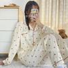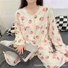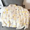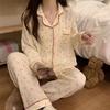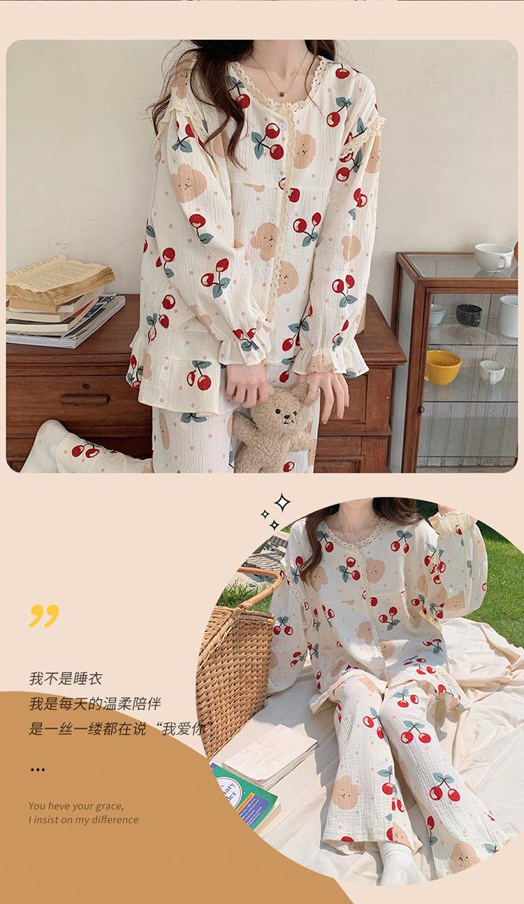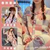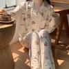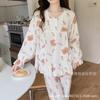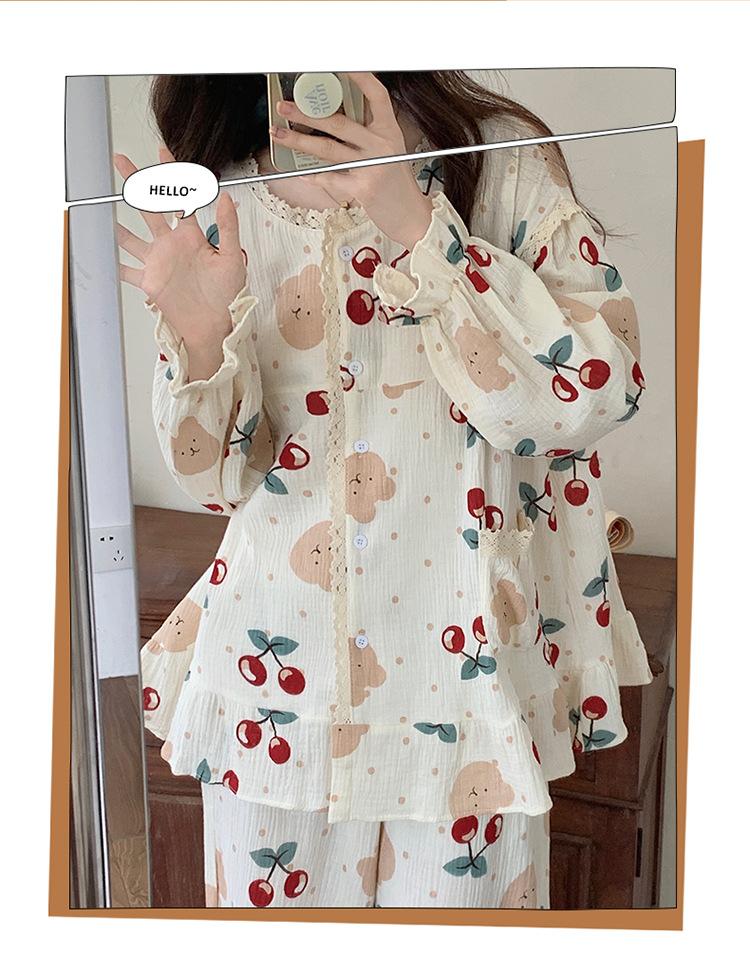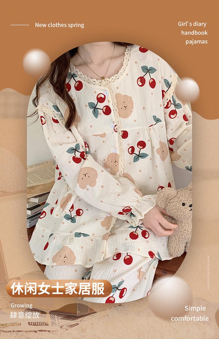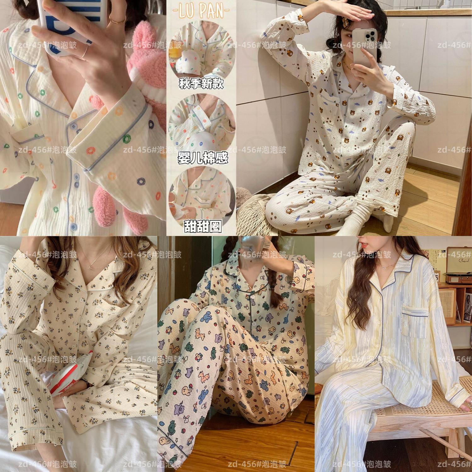 Pijama de tela arrugada con burbujas tejidas para mujer, otoño, manga larga, estilo princesa de dibujos animados, ropa exterior para el hogar, traje interior, ropa exterior