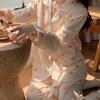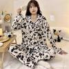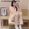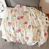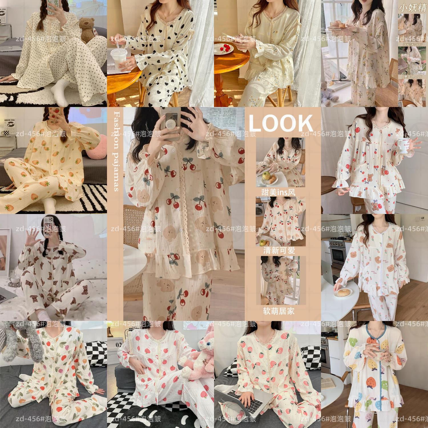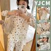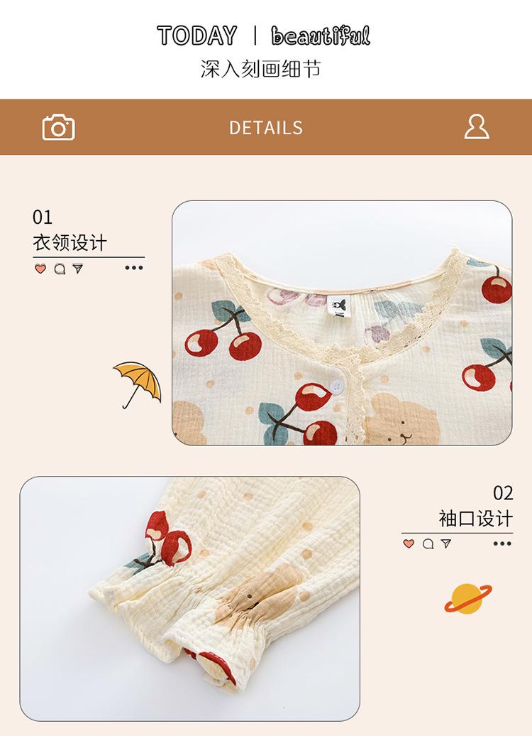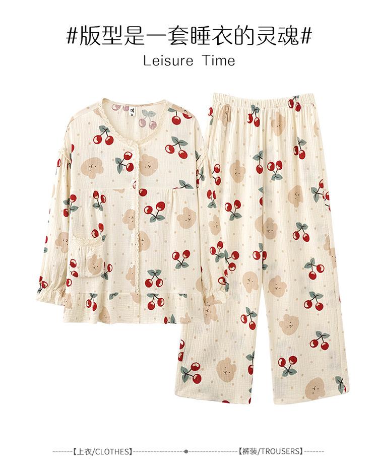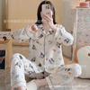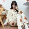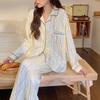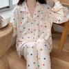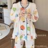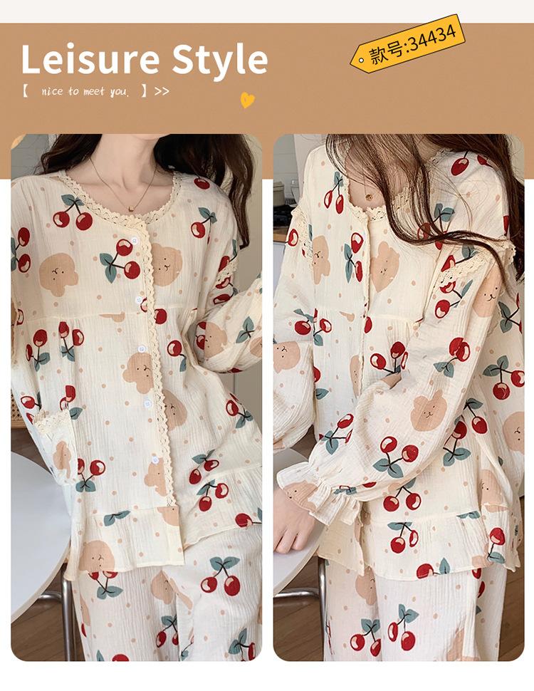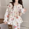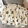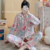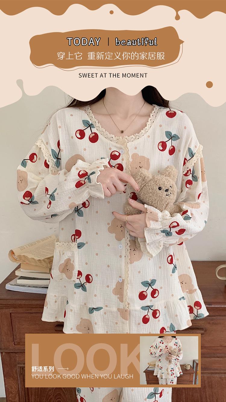 Pijama de tela arrugada con burbujas tejidas para mujer, otoño, manga larga, estilo princesa de dibujos animados, ropa exterior para el hogar, traje interior, ropa exterior
