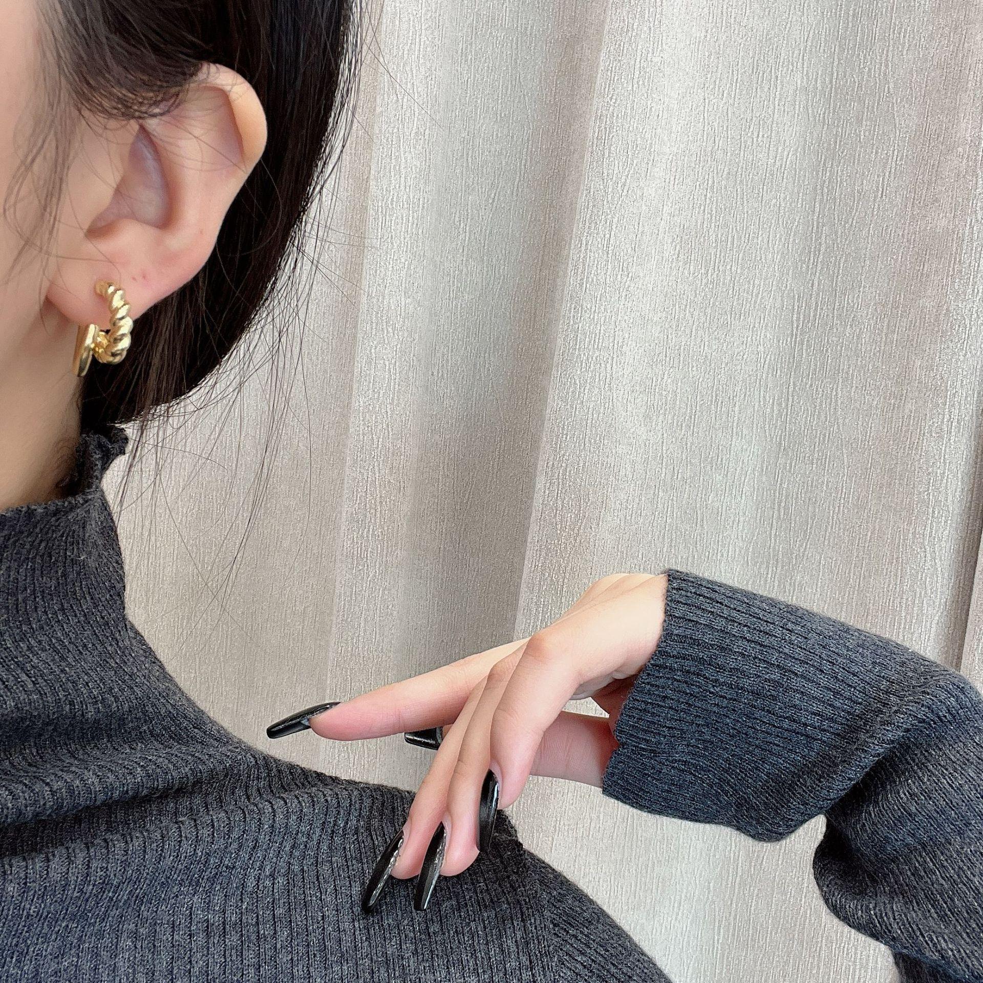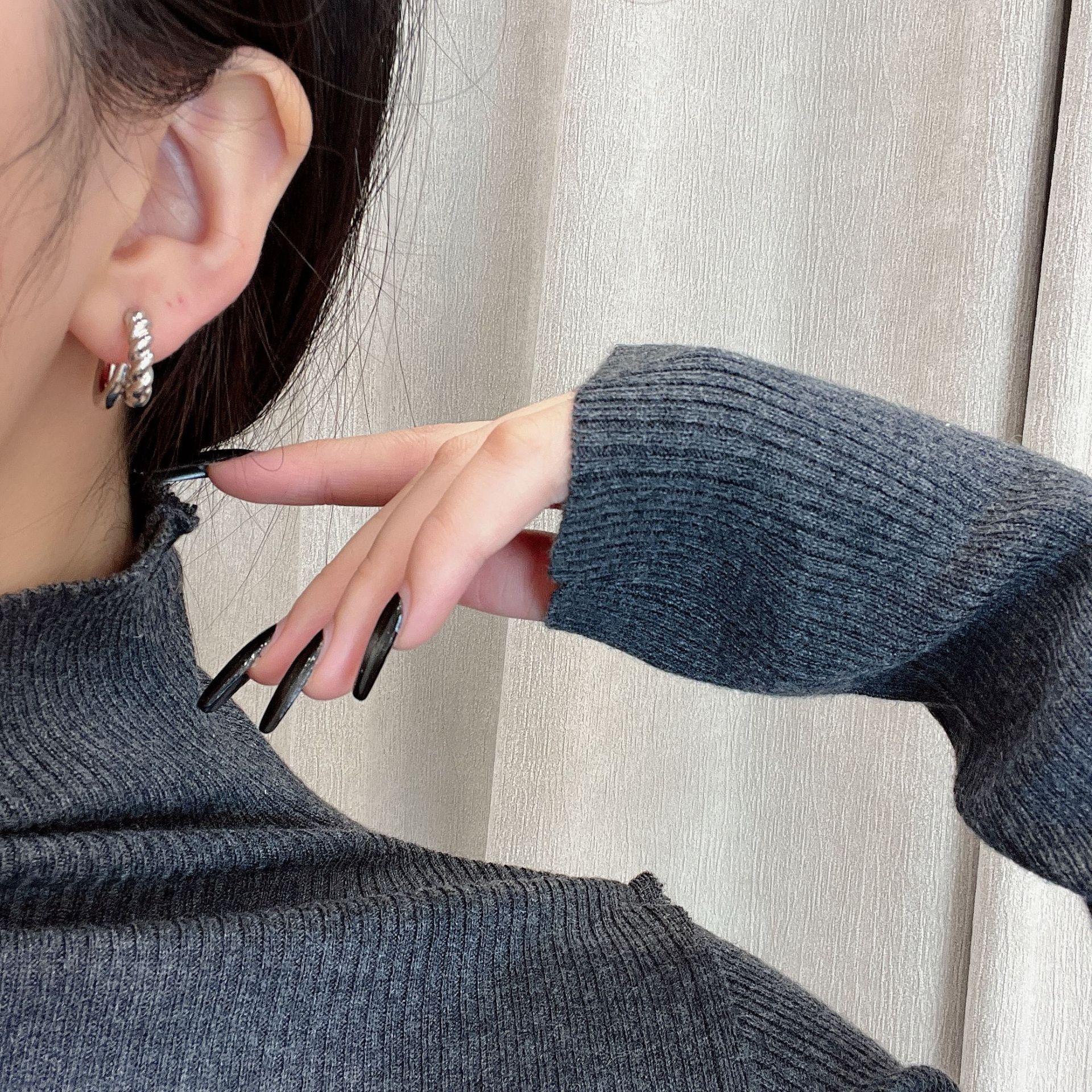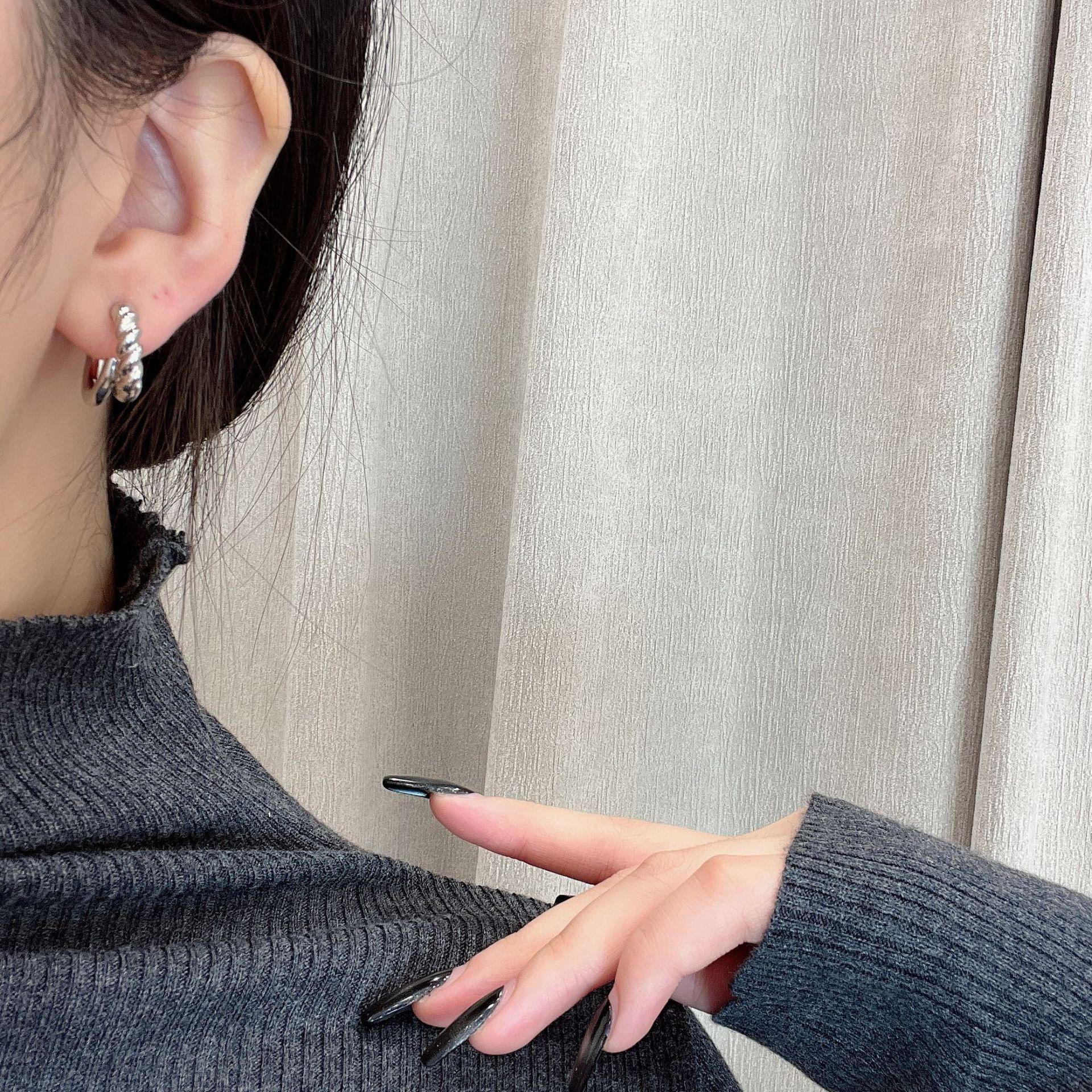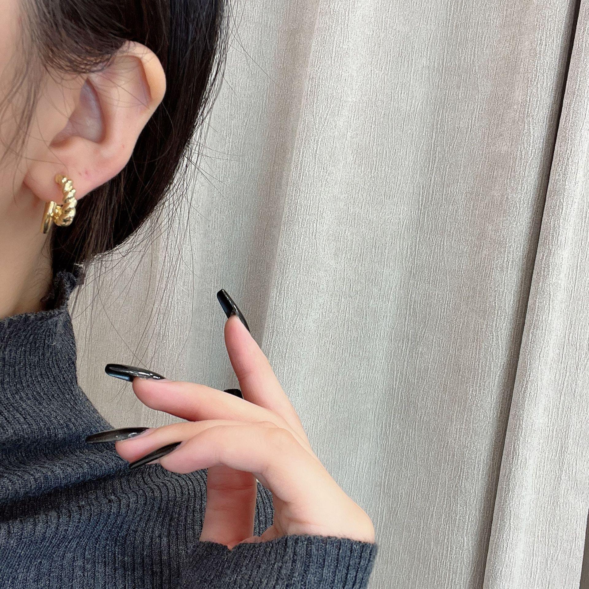 Pendientes de nicho de metal con giro distintivo de Dongdaemun de Corea del Sur, elegantes y modernos para mujer.