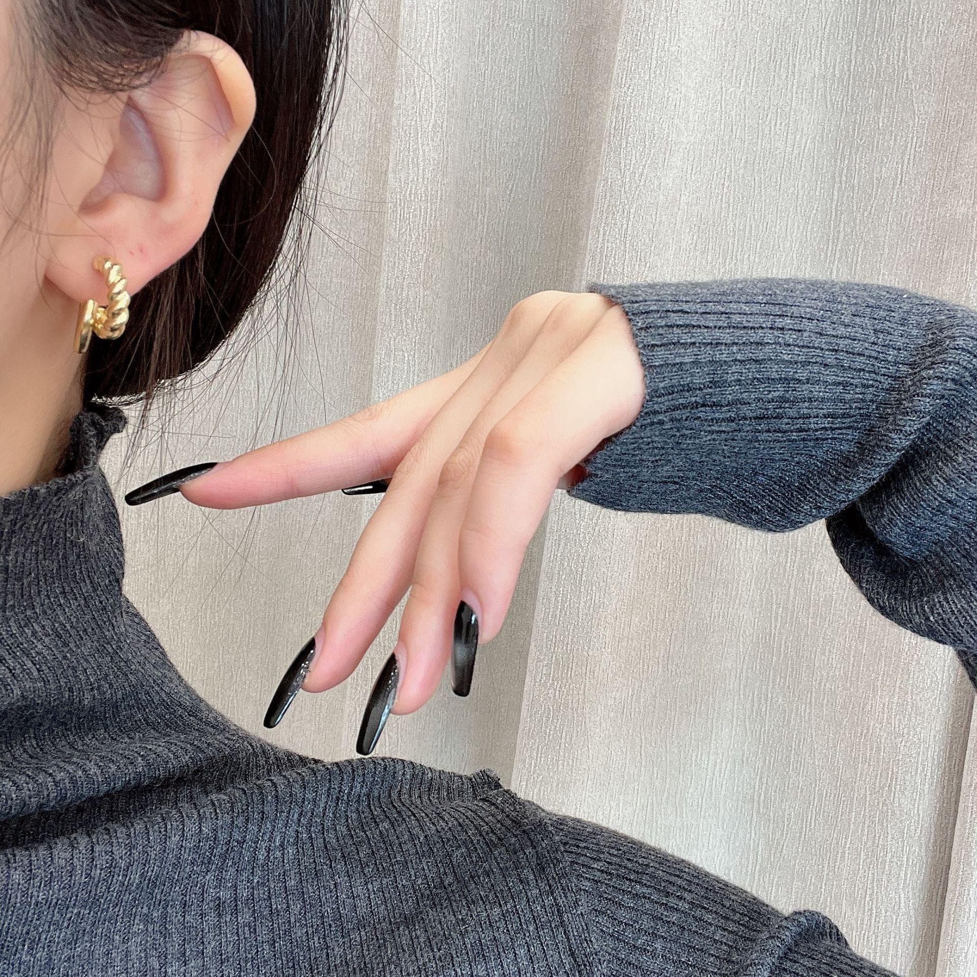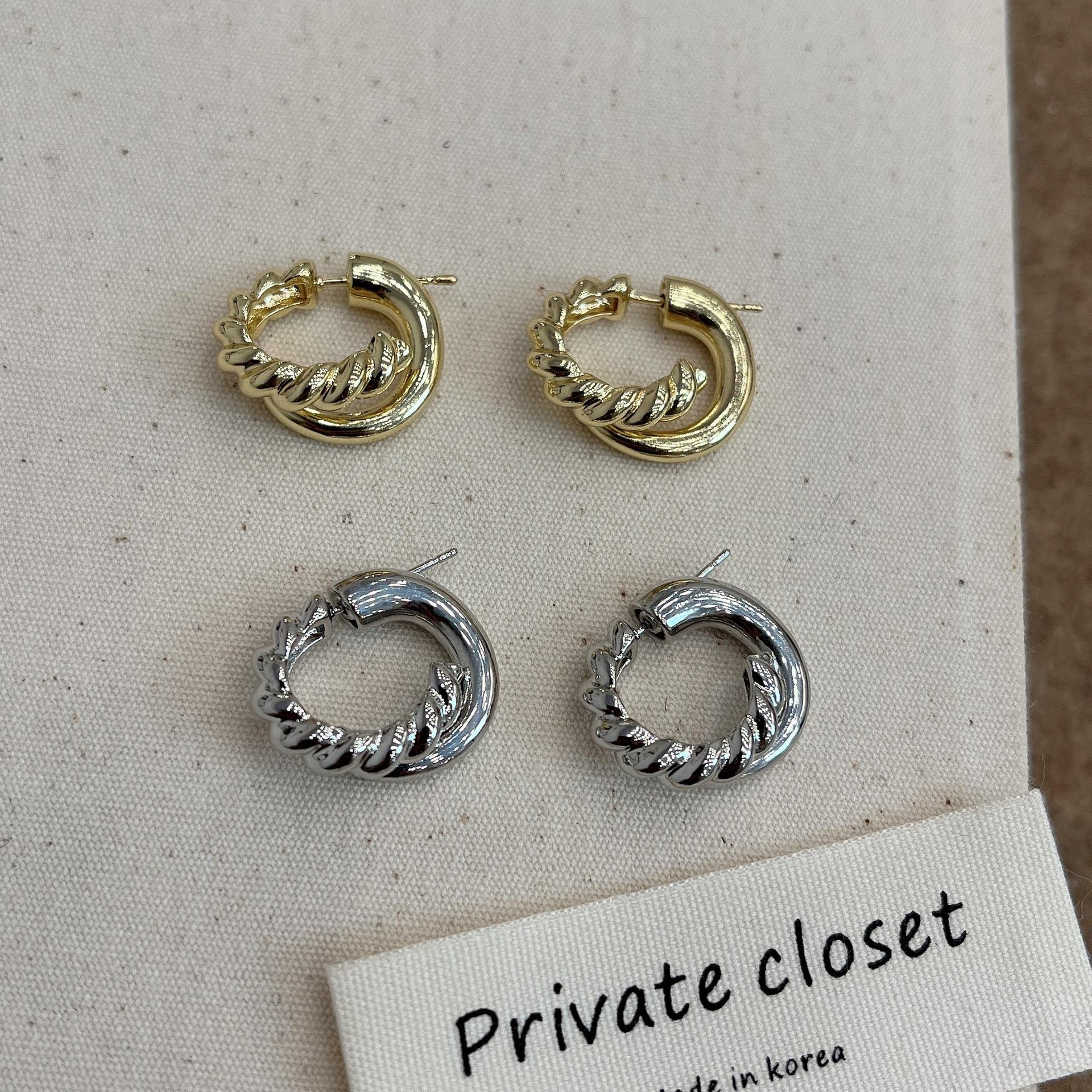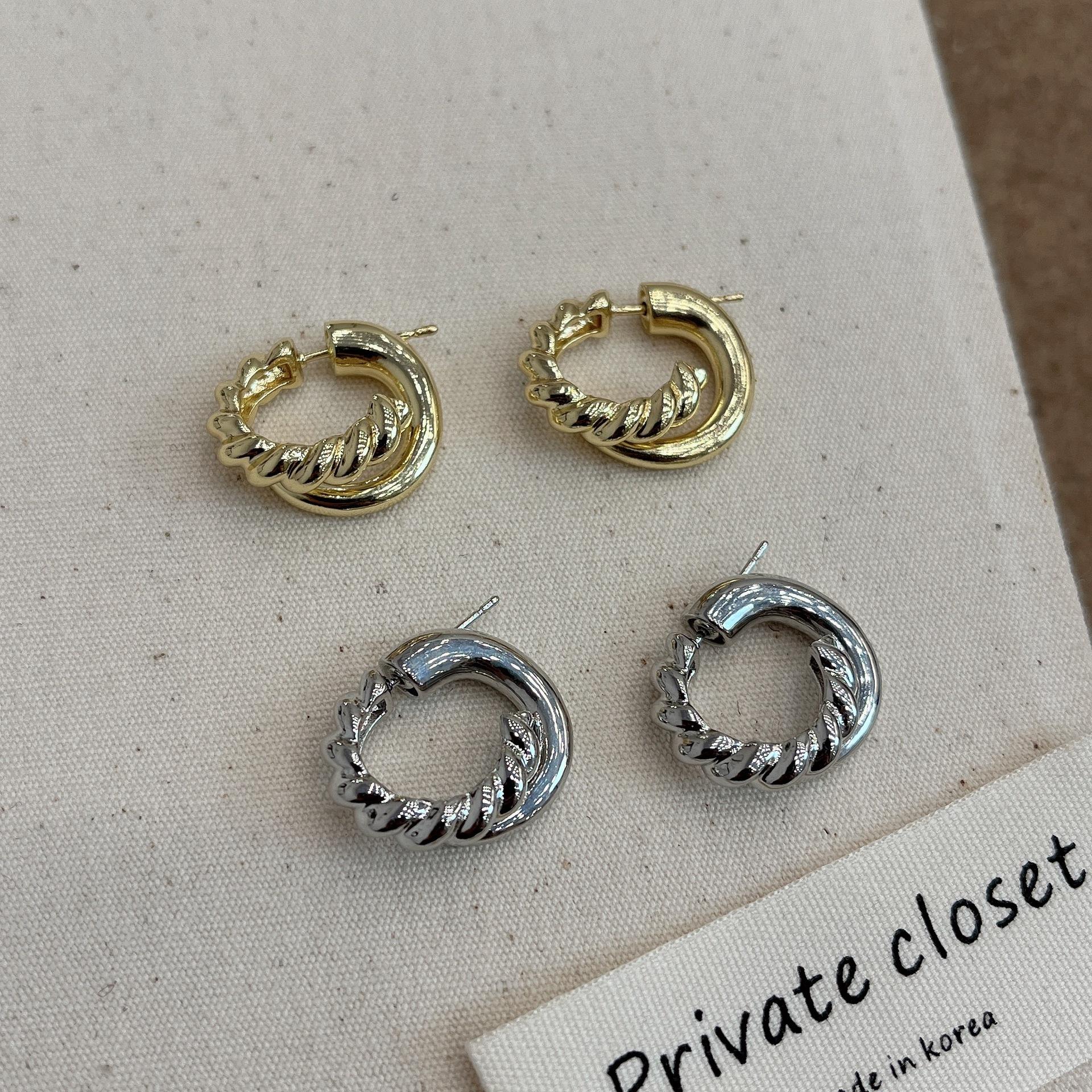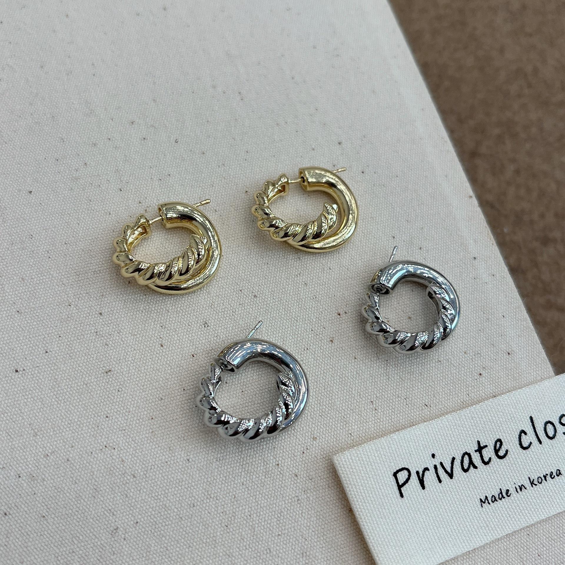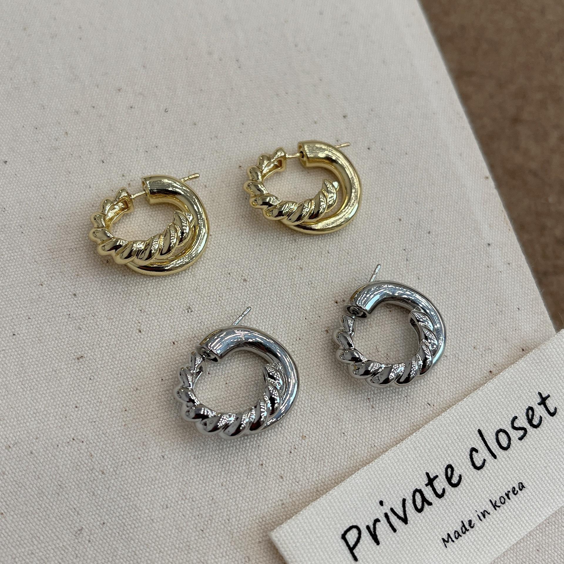 Pendientes de nicho de metal con giro distintivo de Dongdaemun de Corea del Sur, elegantes y modernos para mujer.