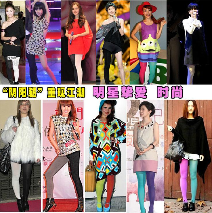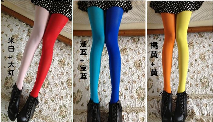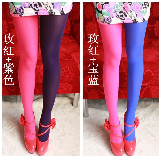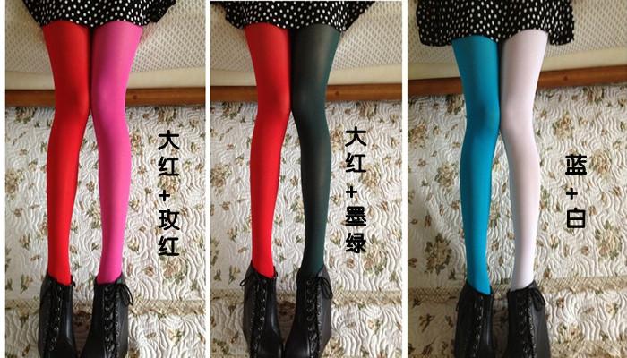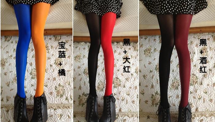 Calcetines populares de terciopelo retro en contraste de color AB pato mandarín izquierdo y derecho asimétricos de dos colores con costuras pantimedias medias
