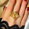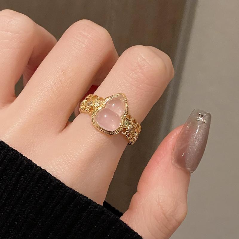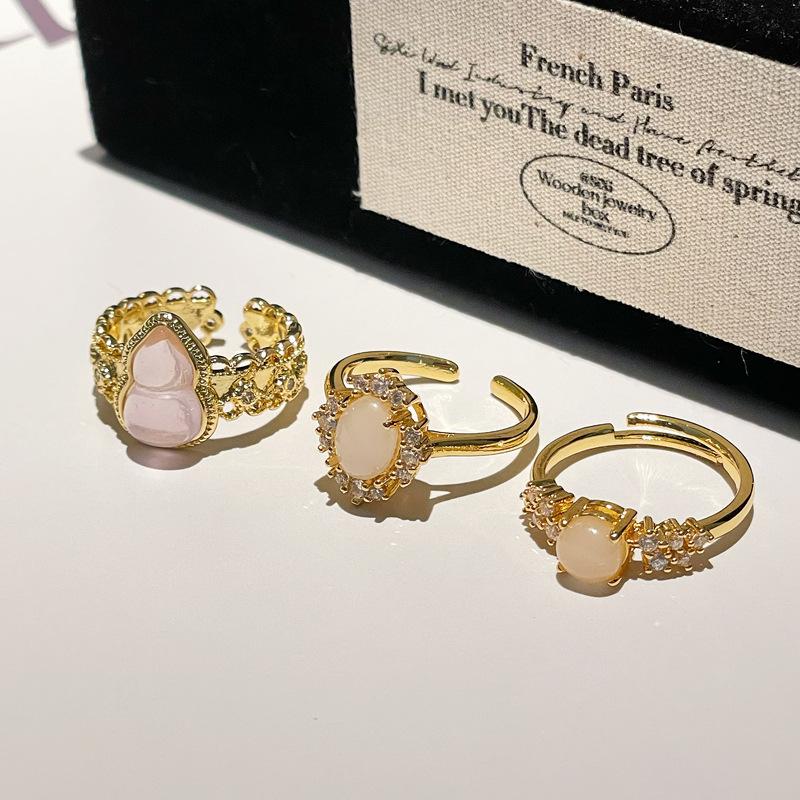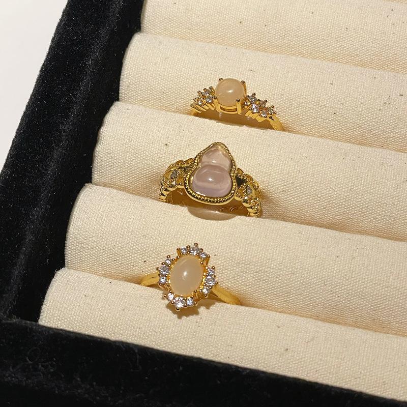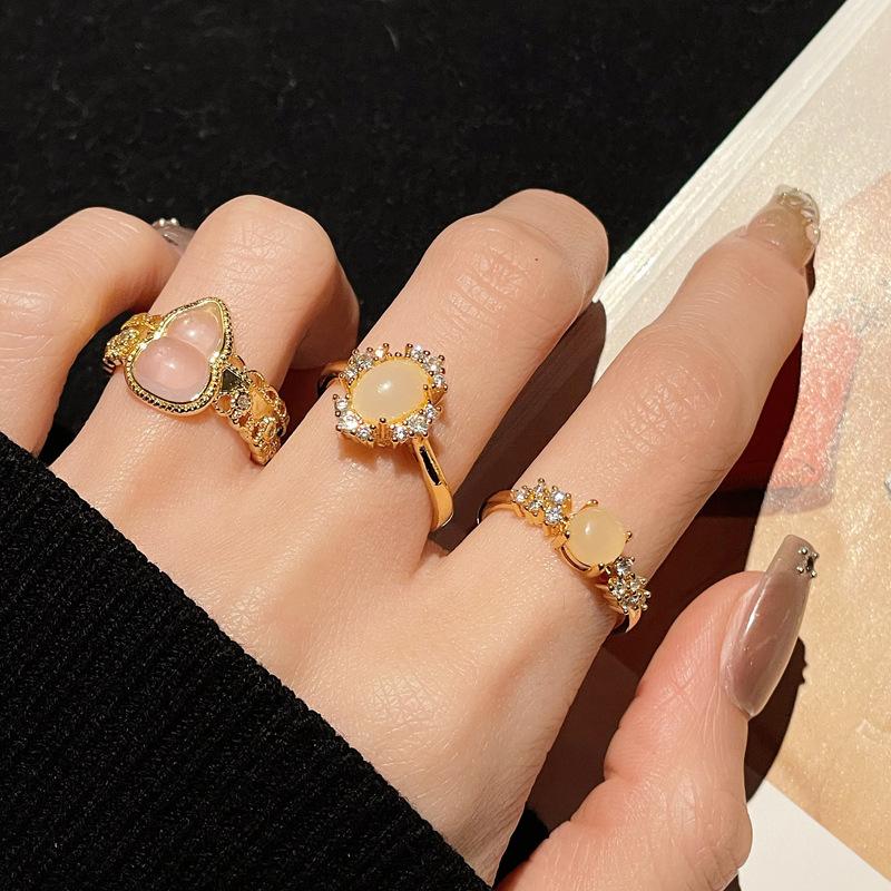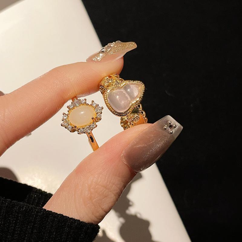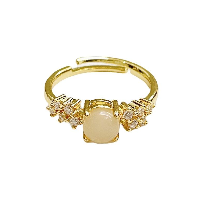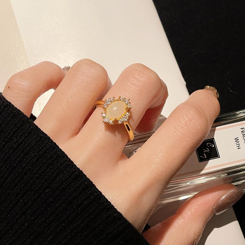 Nuevo anillo ajustable de apertura de ópalo de imitación de estilo antiguo con diamantes, joyería de lujo retro ligera de ojo de gato de alta gama.