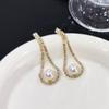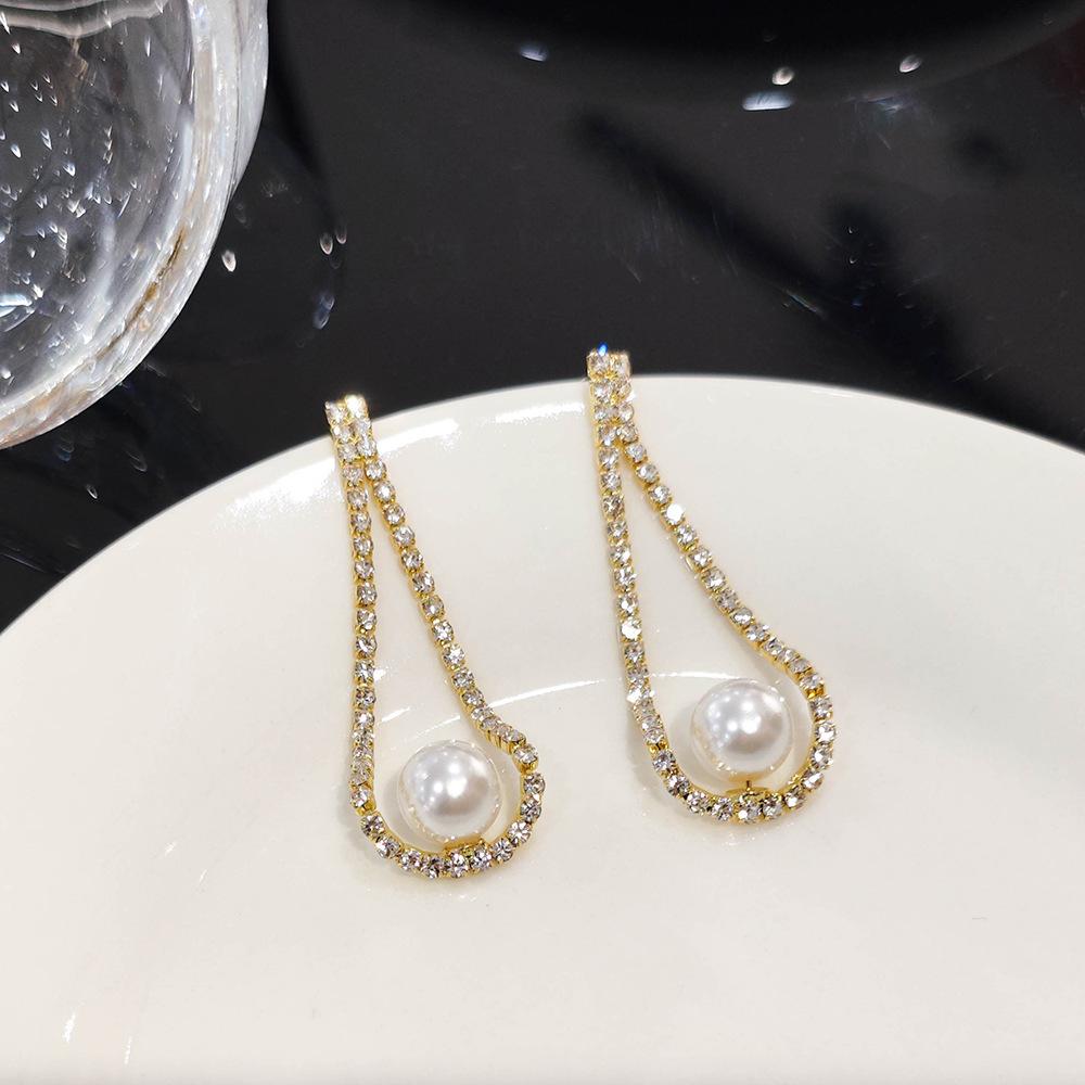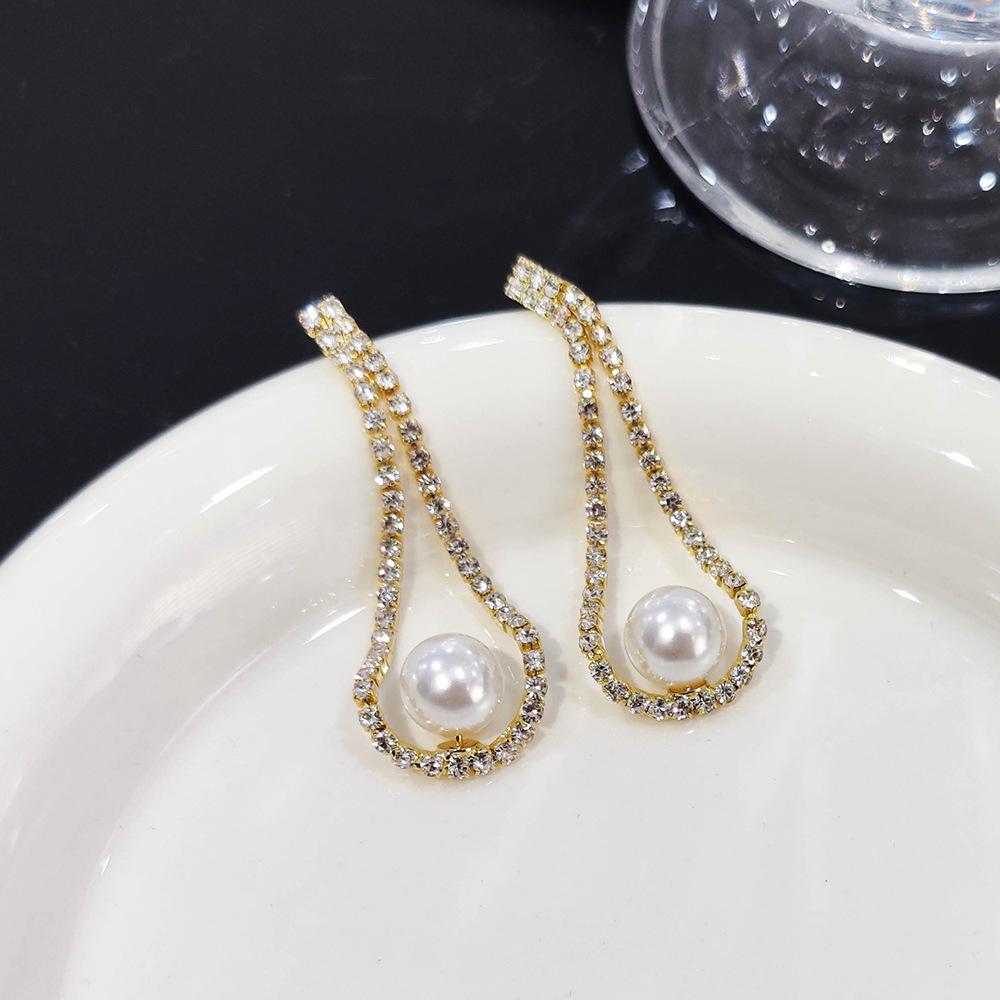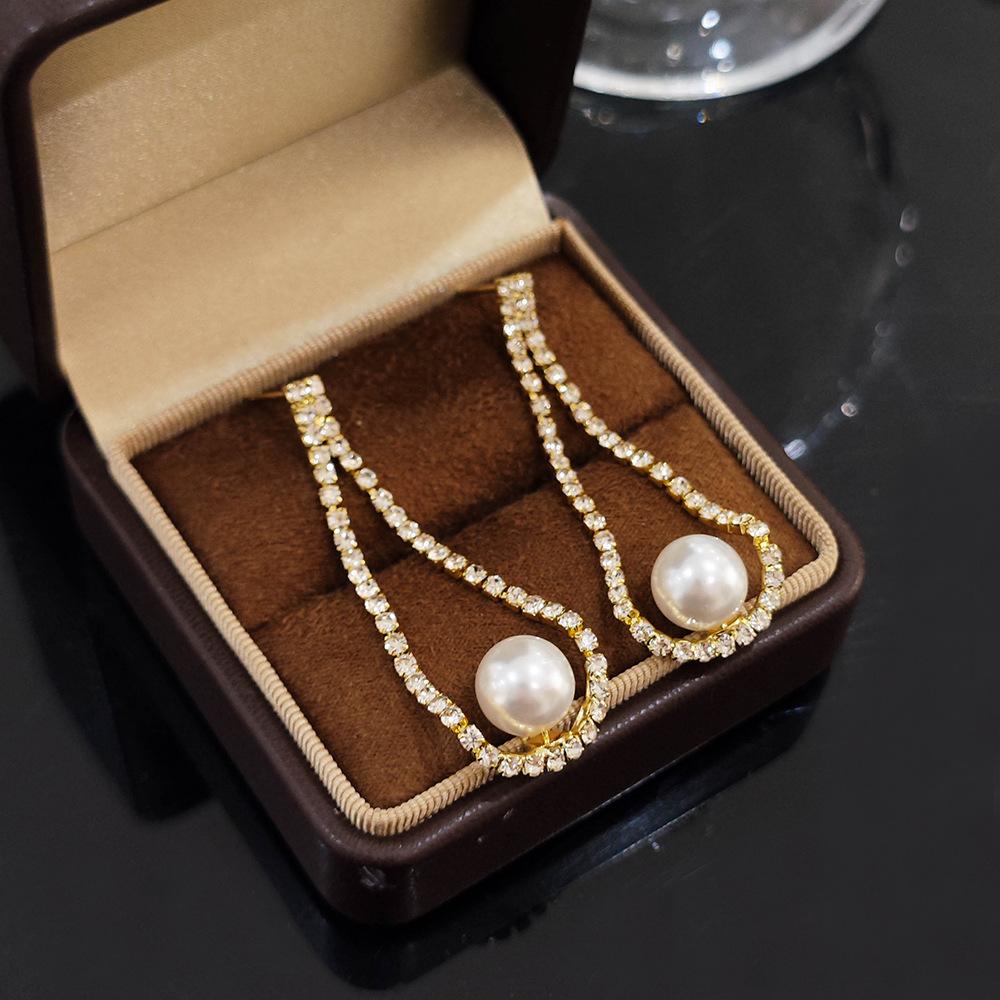 Pendientes colgantes de perlas de circón con un conjunto completo de Super Flash de alta calidad, elegantes y modernos, ligeros y lujosos, largos.