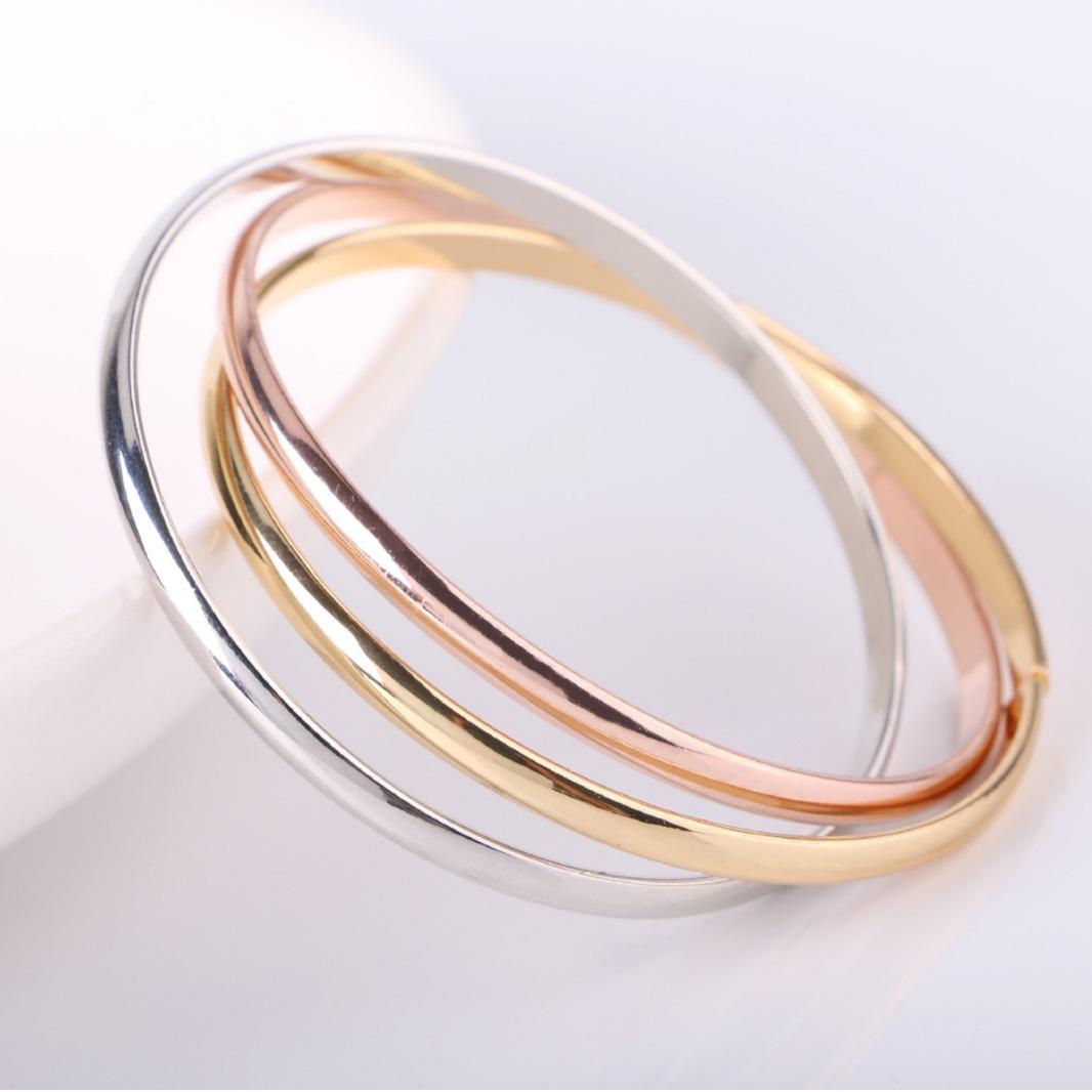 Pulsera de cuerda de oro de tres colores, suministro de comercio electrónico transfronterizo, 3 piezas/juego de joyería para damas, pulsera de moda popular europea y americana