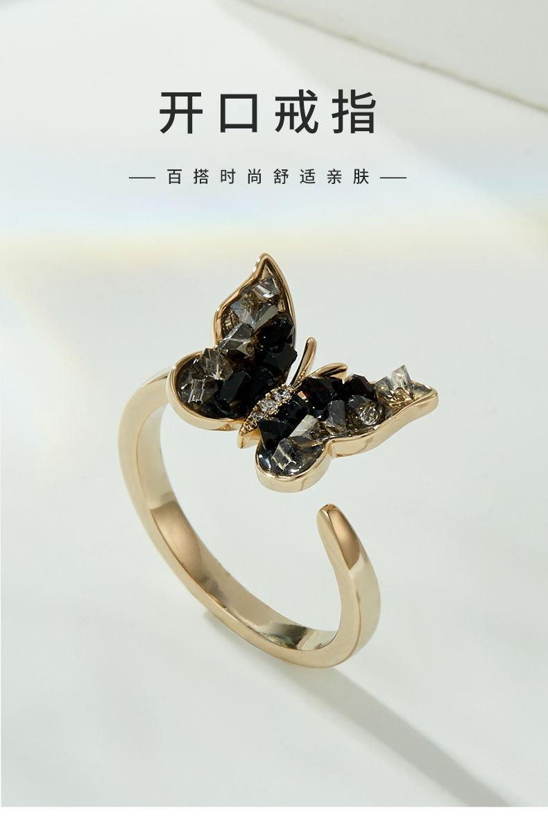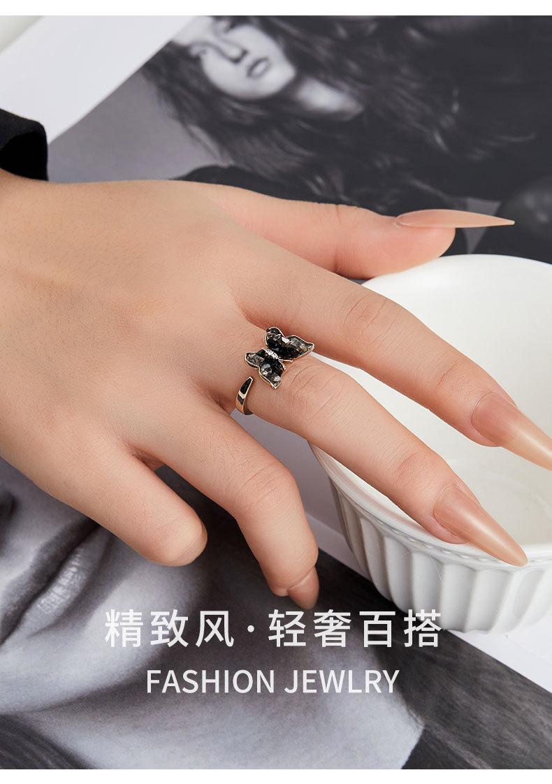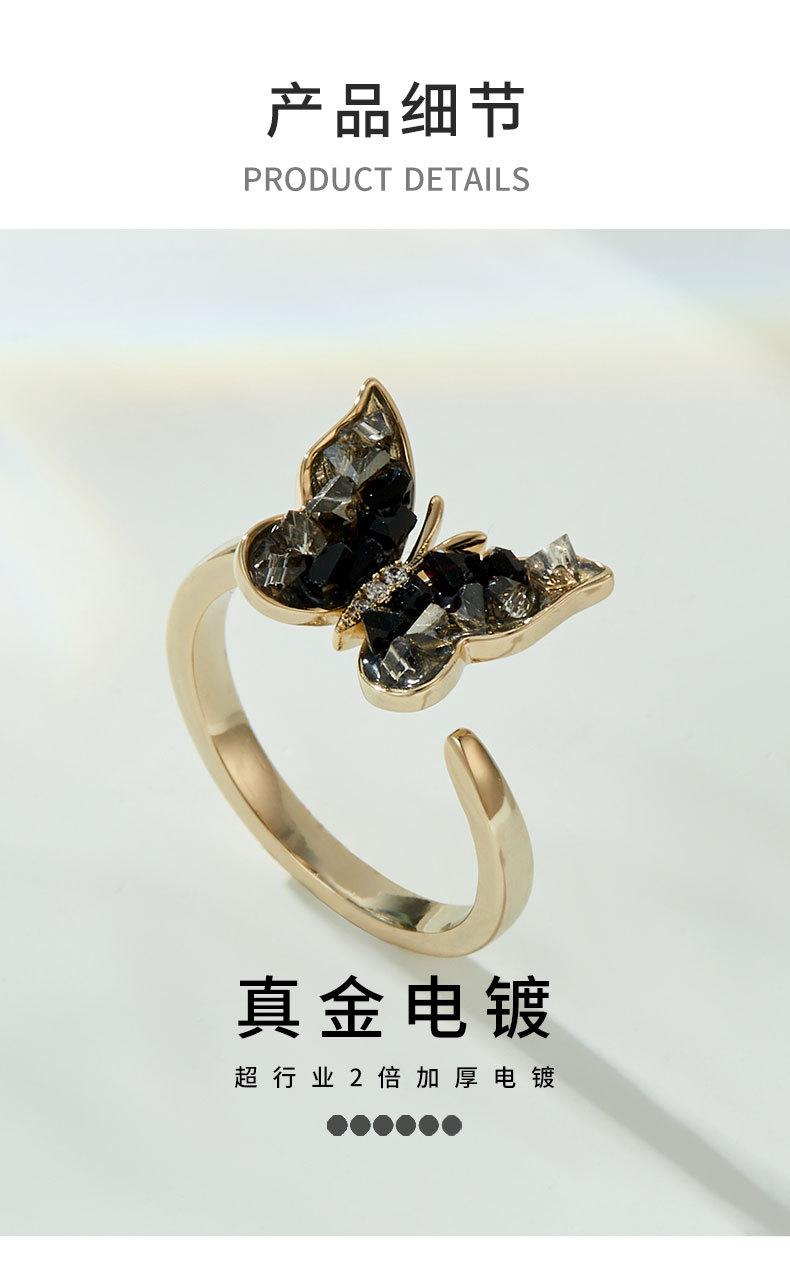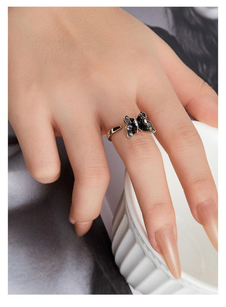 My mu yu new arrival black gradient crystal butterfly open ring, Women's adjustable ring